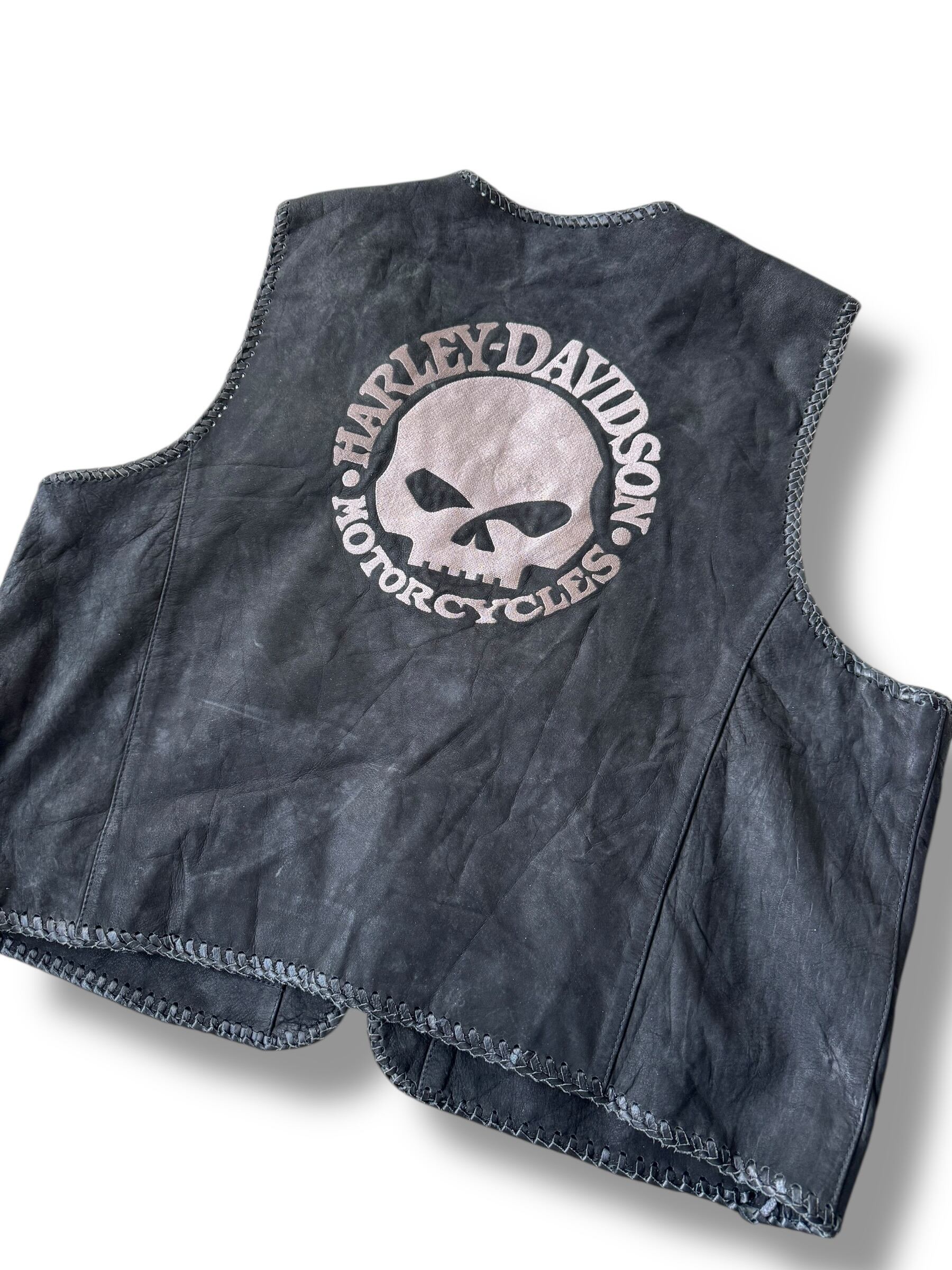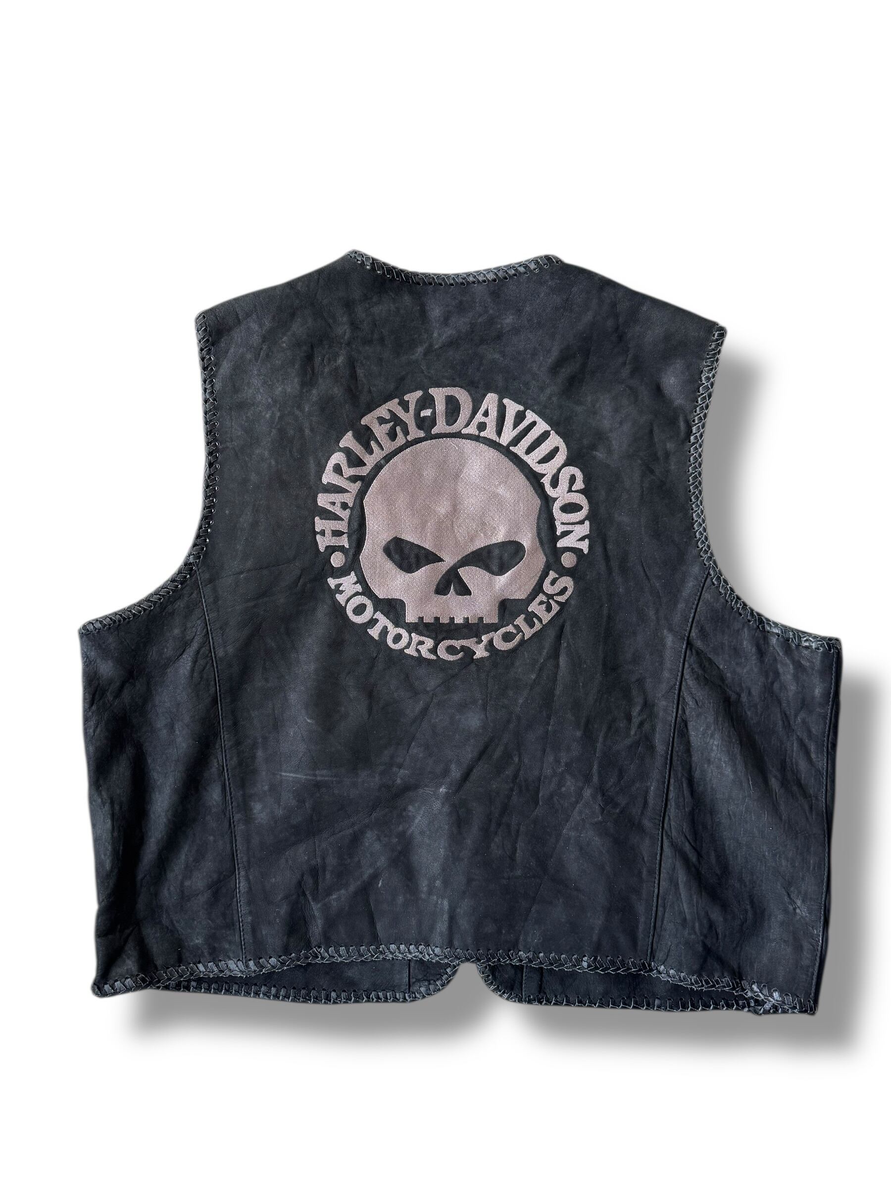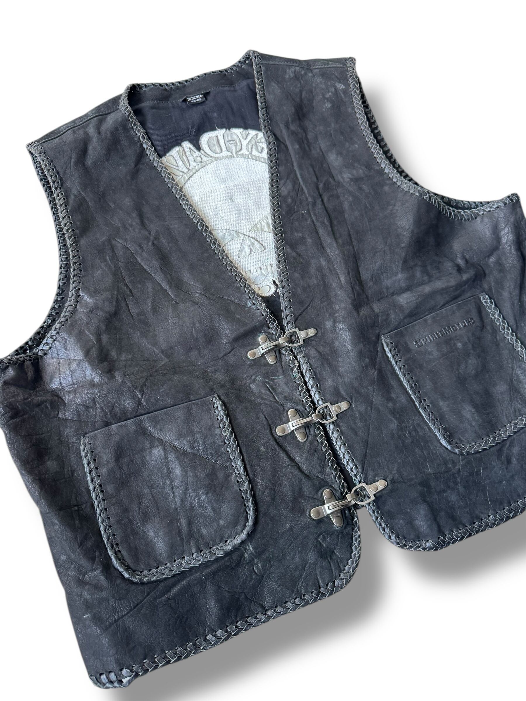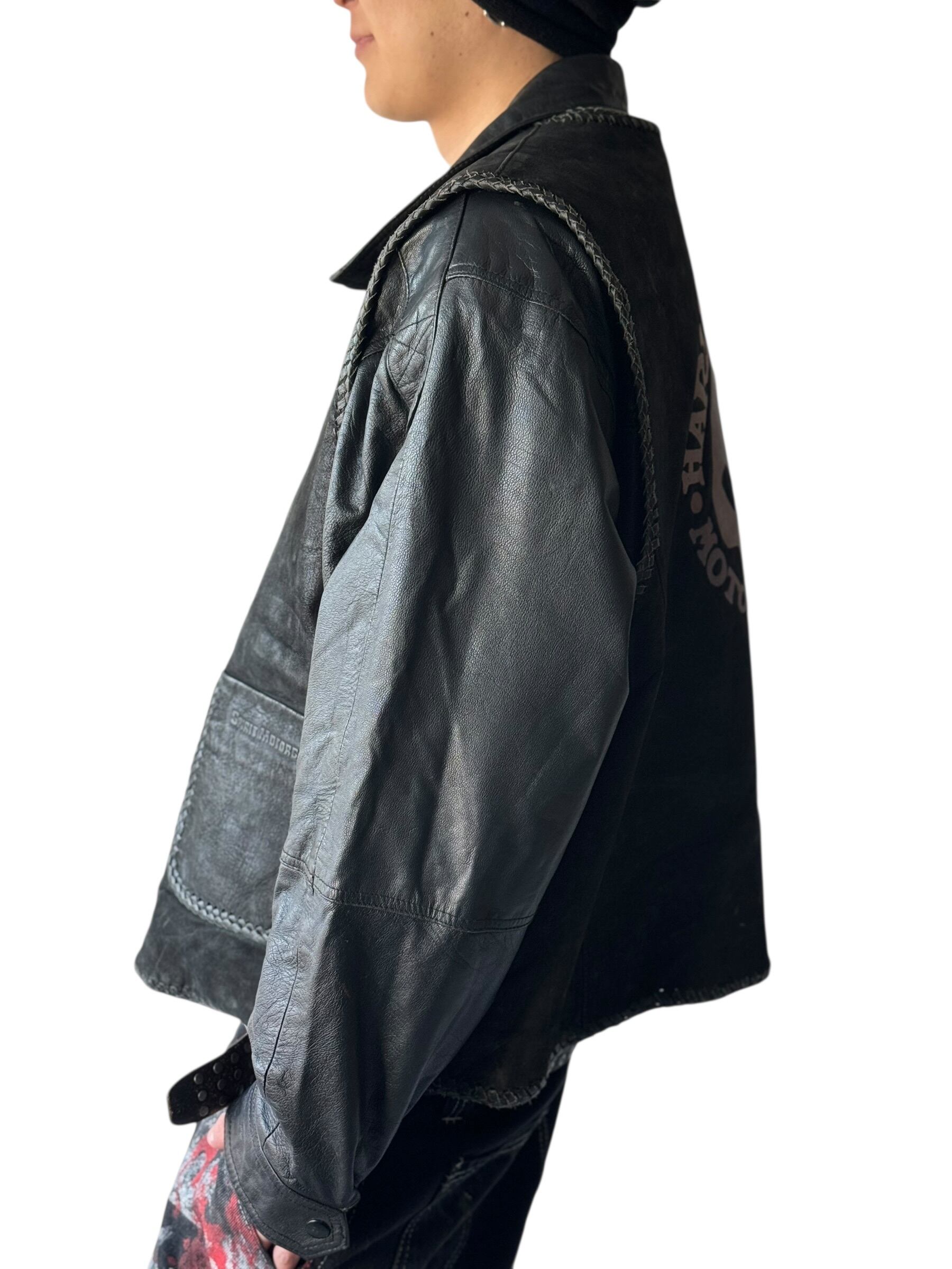 ♾vtg bootleg♾ "HARLEY-DAVIDSON" fireman toggle design over sized leather vest sizeXXXL