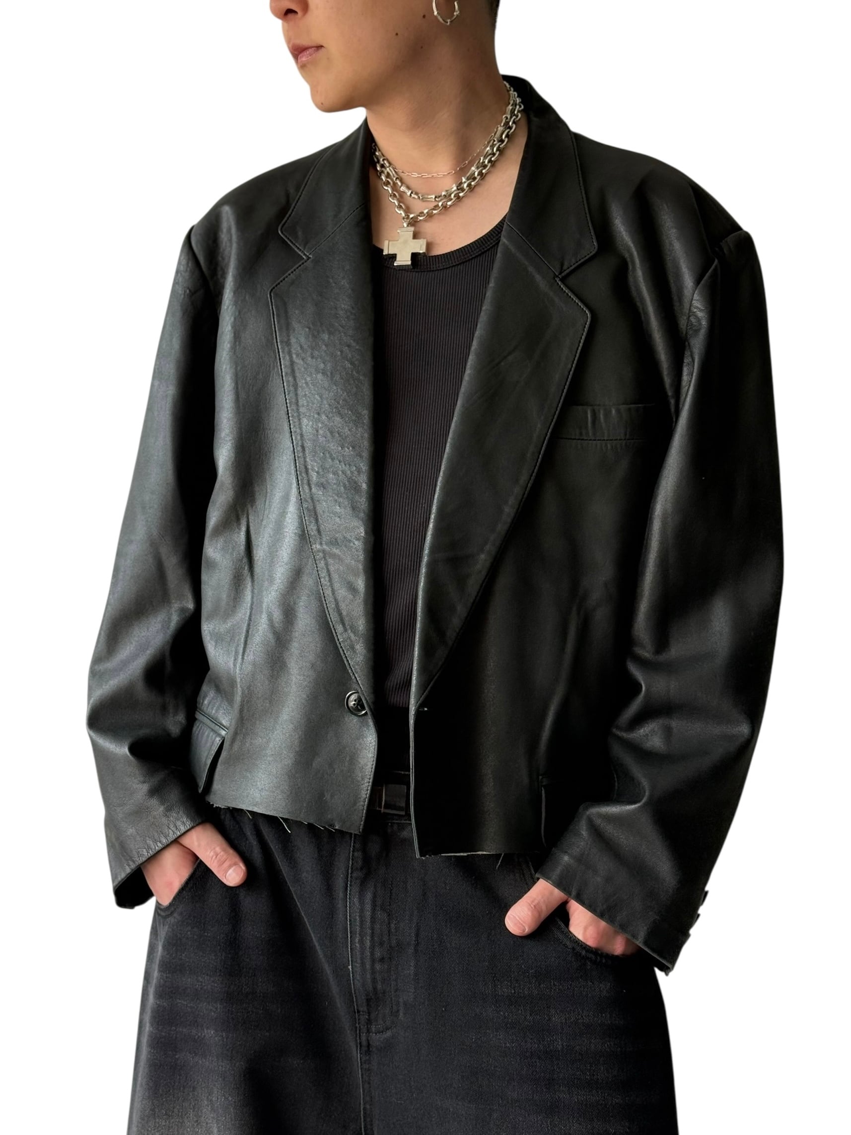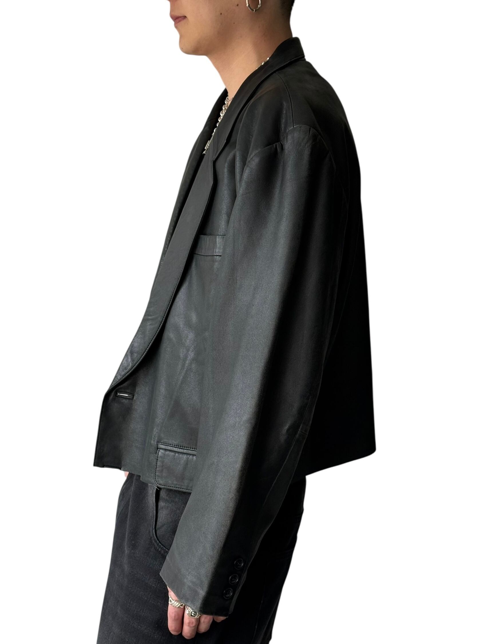 【Remade vintage clothing】Short cut-off Leather tailored jacket