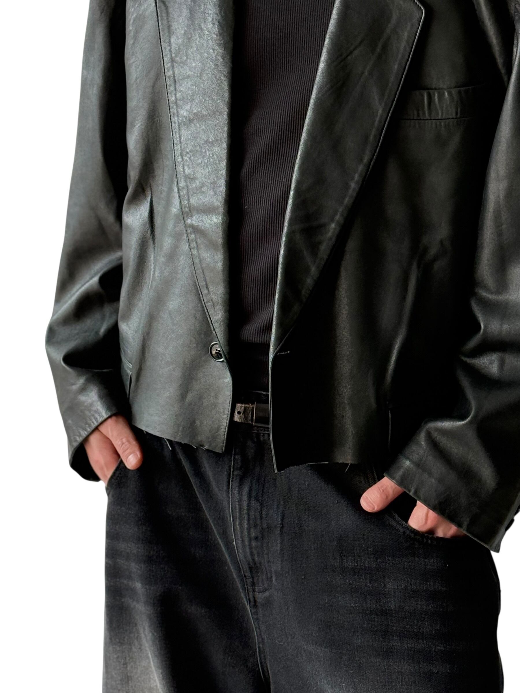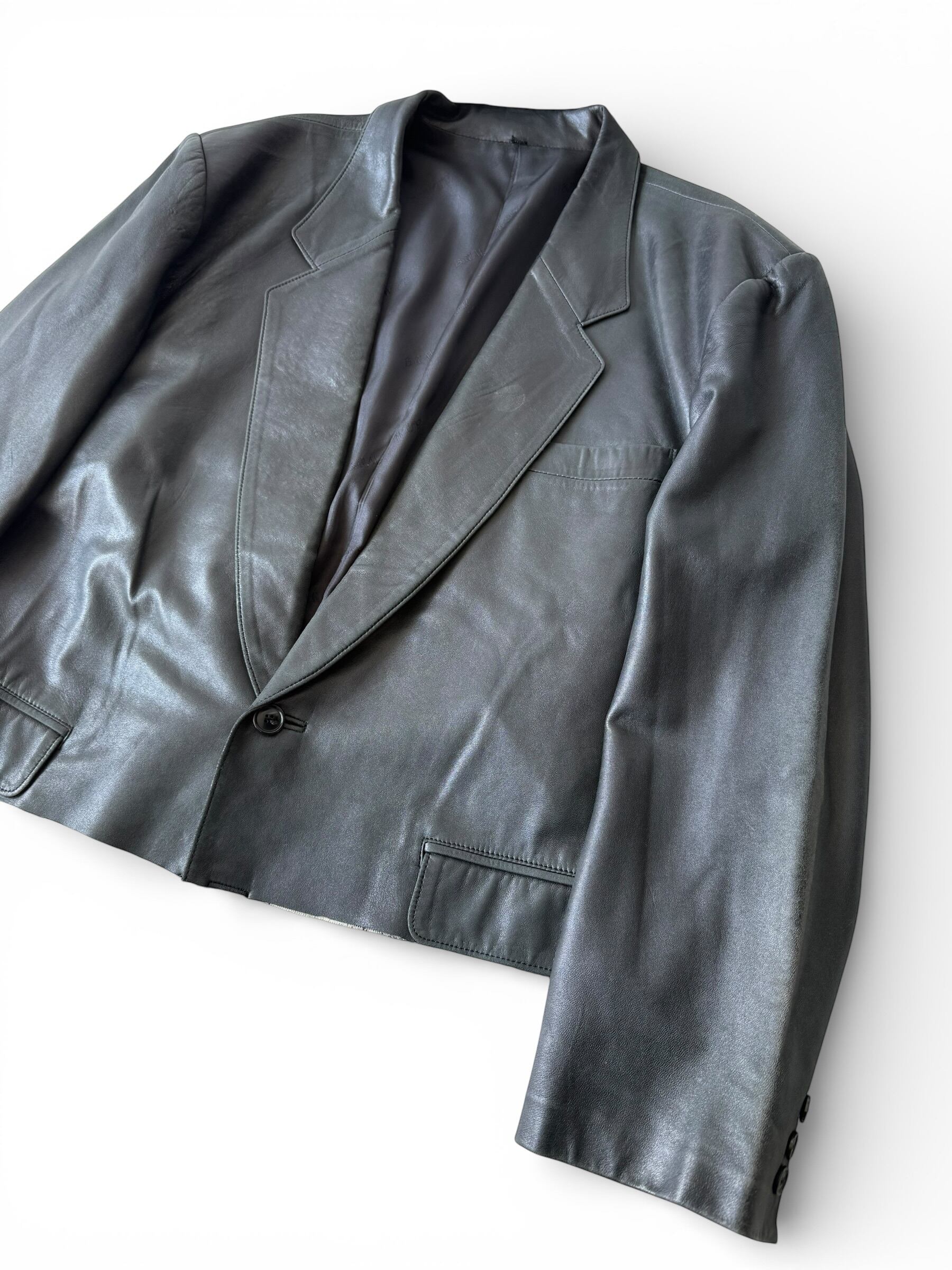 Short cut-off Leather tailored jacket