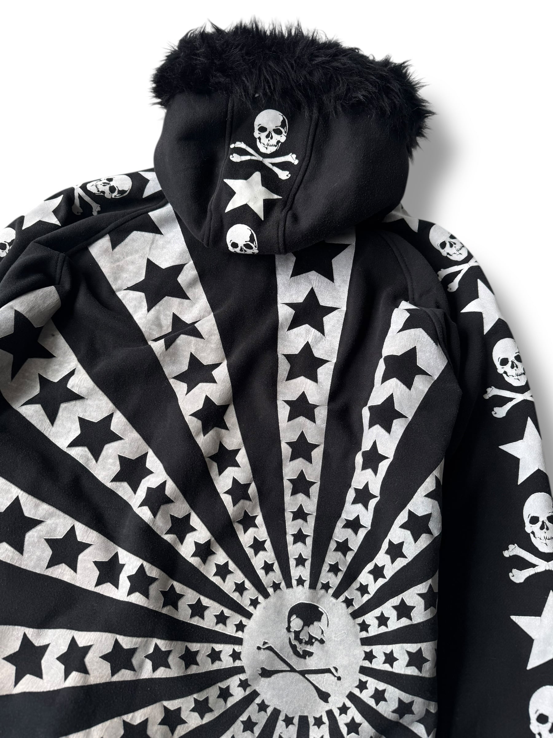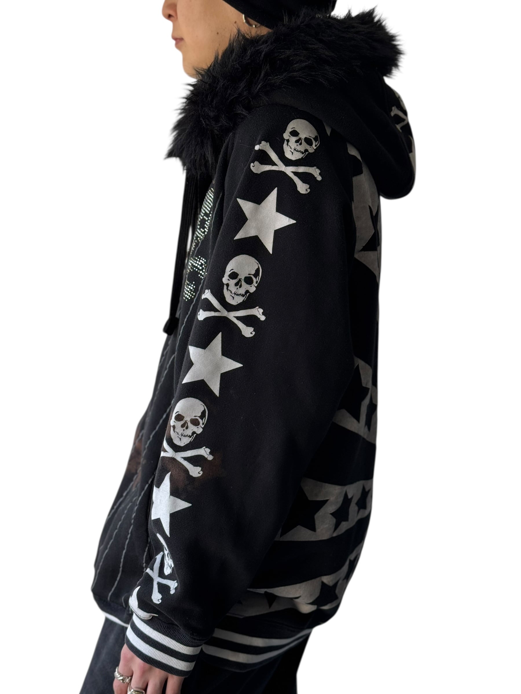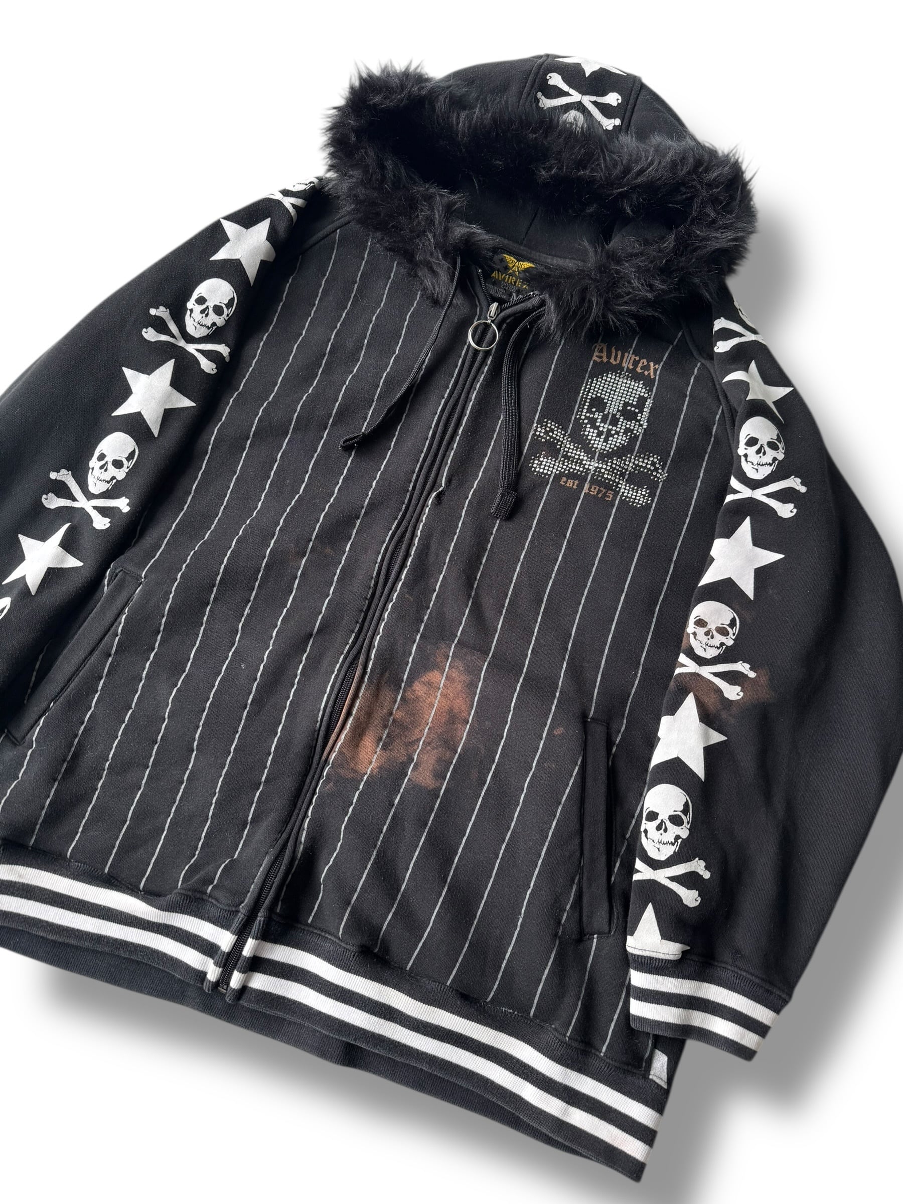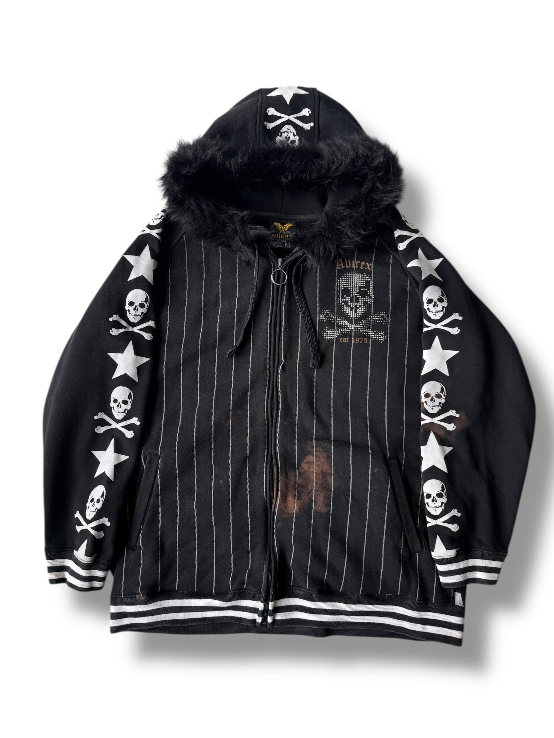 ♾AVIREX♾ Skull design stripe fur hoodie size M