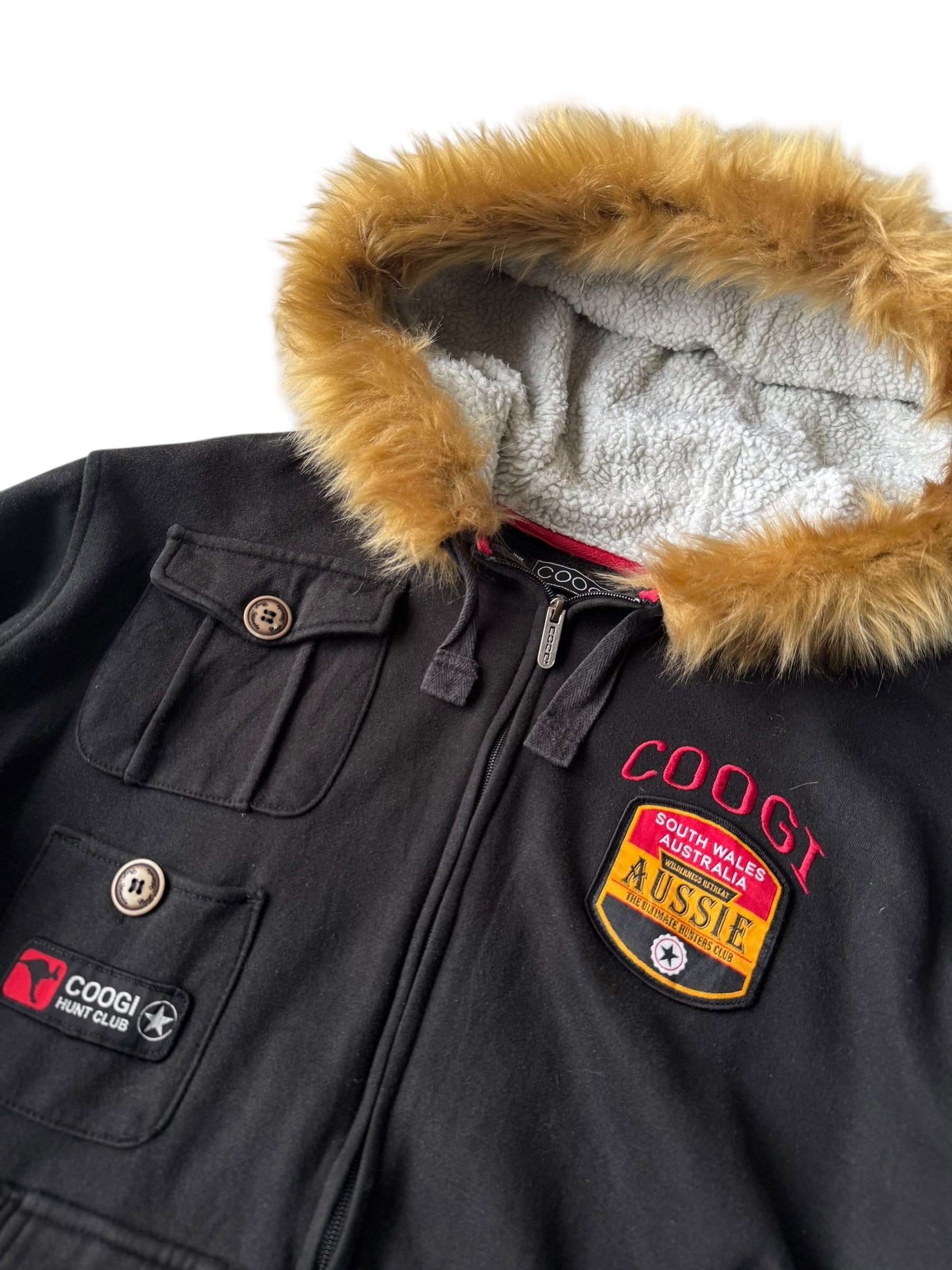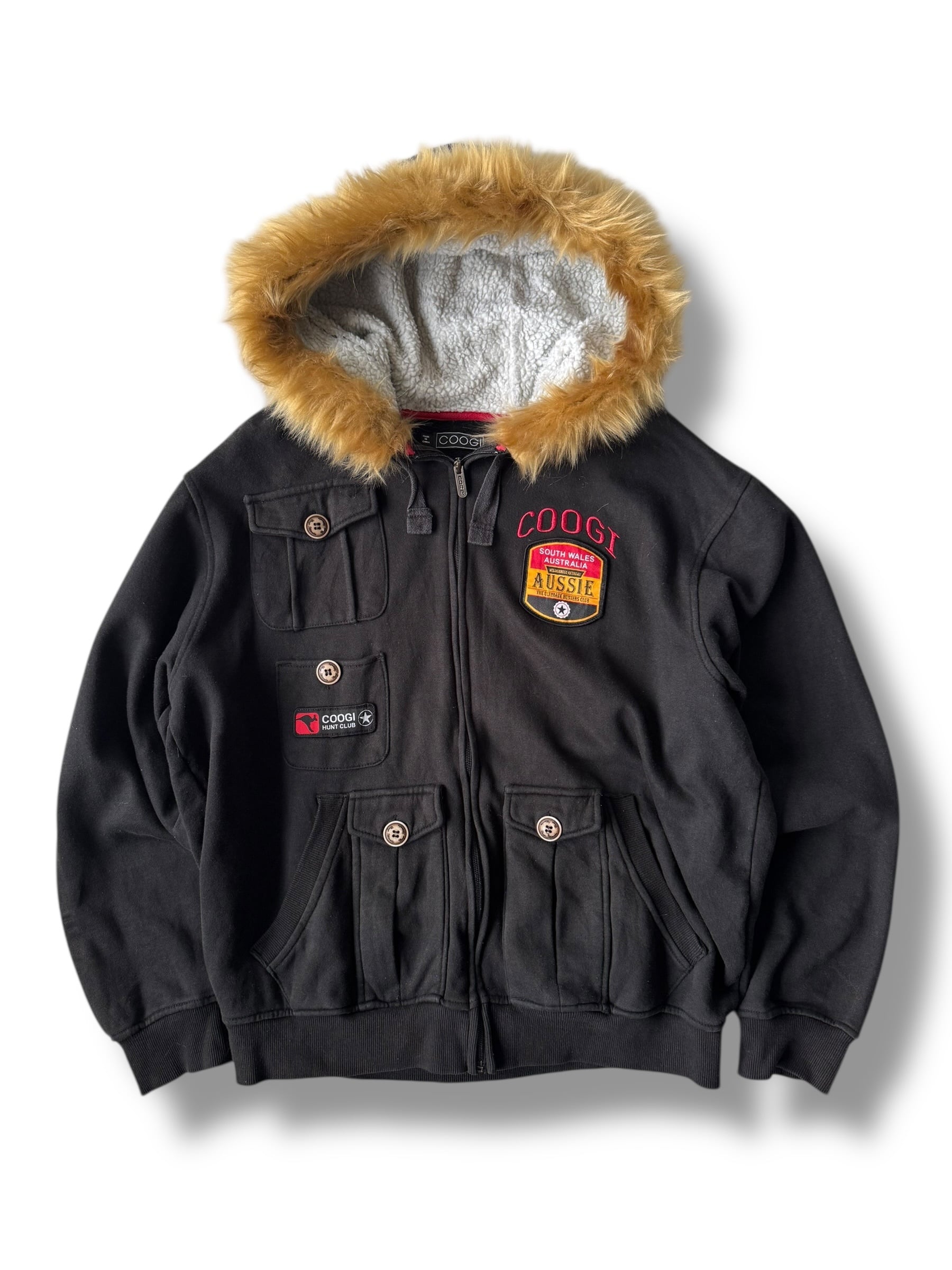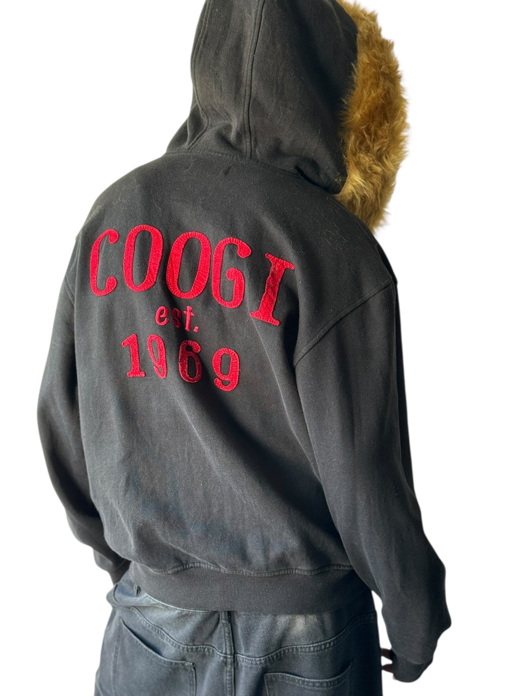 ♾COOGI♾ Fur Hood Zip-Up Patch Hoodie