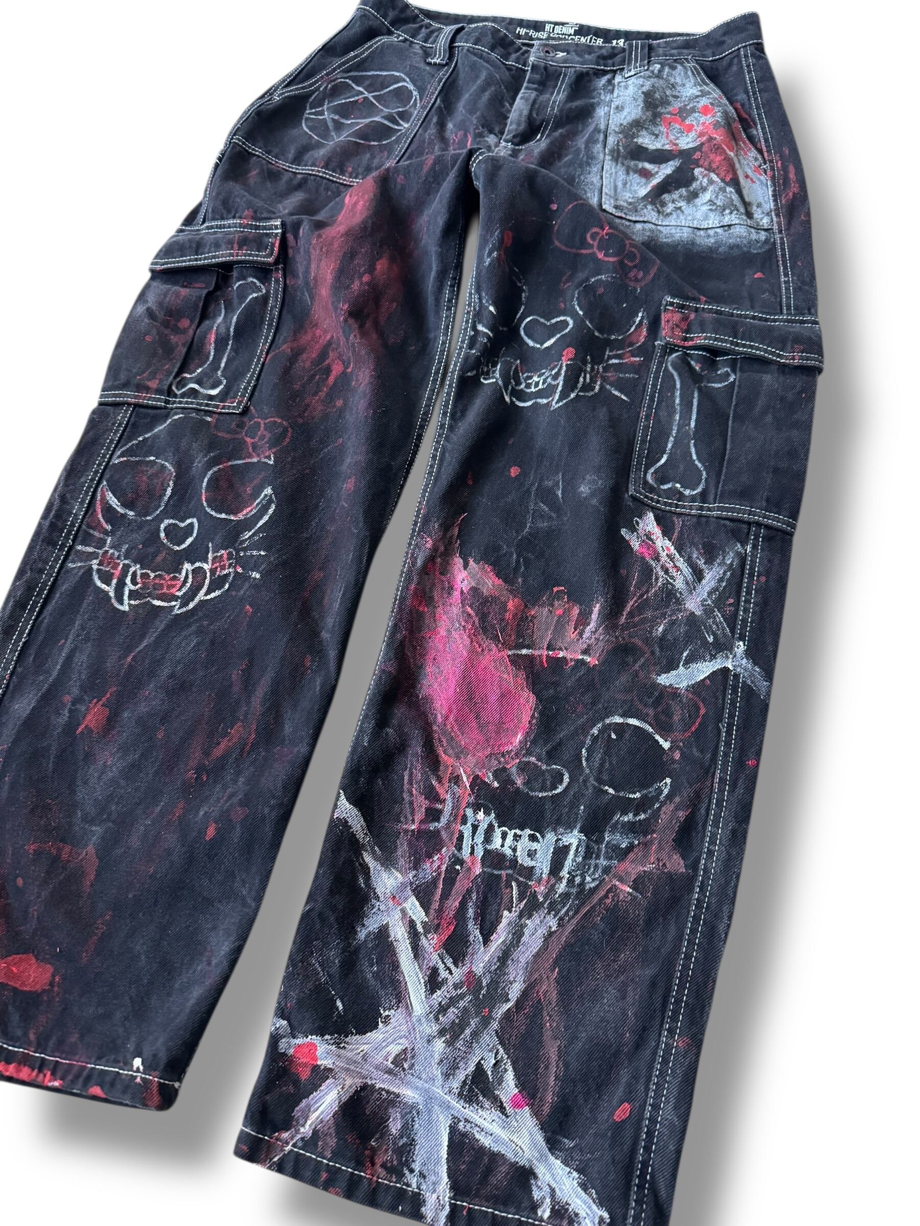 ♾️ HT Denim™ ♾️ design painter black cargo pants size 13