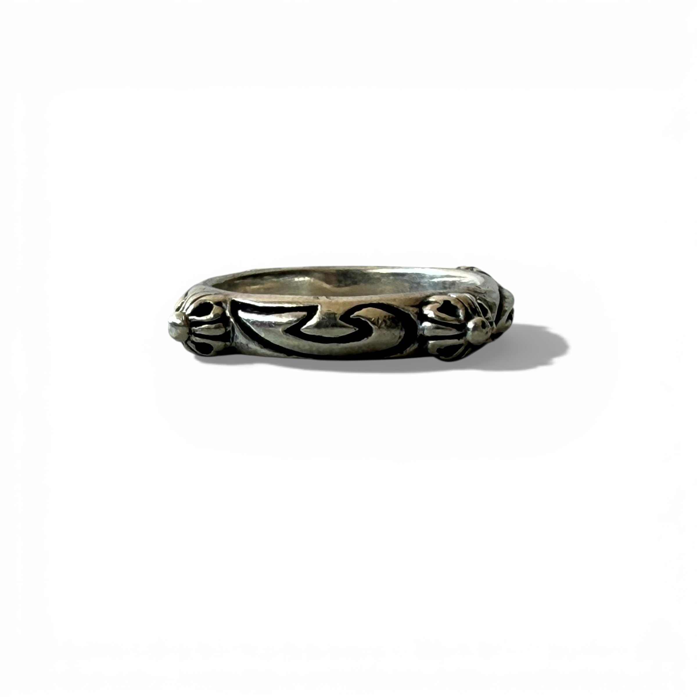 【Sterling Silver】 sv925 Floral Cross Scroll band ring / size 17号