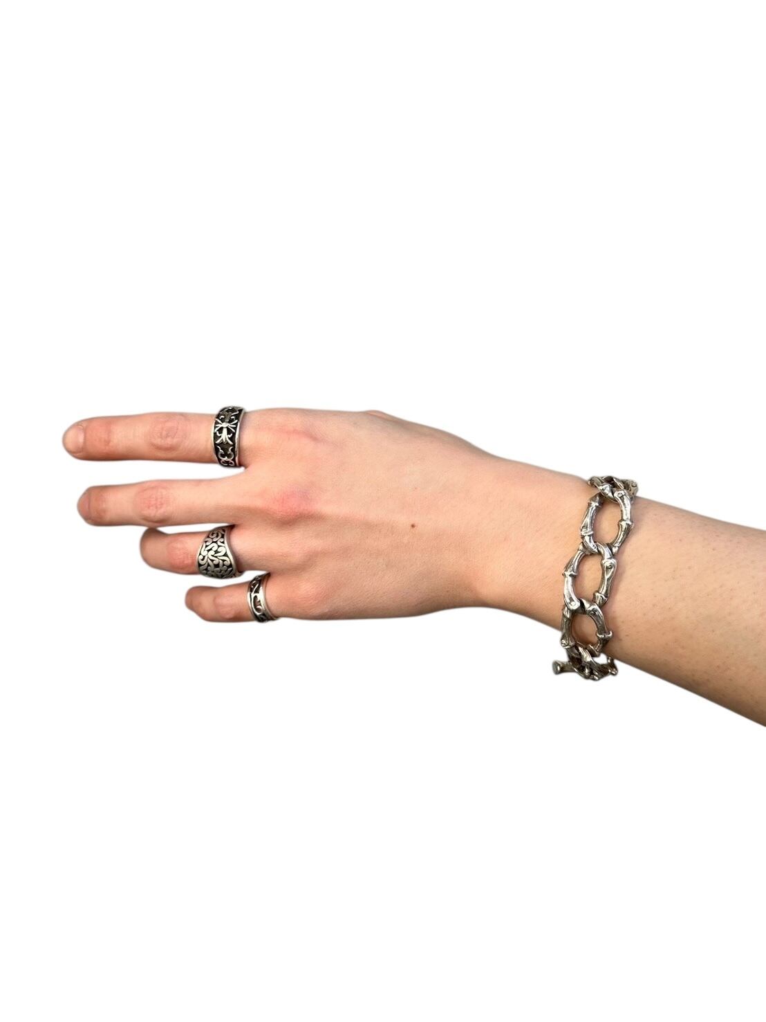 バンド1周にリーフモチーフがデザインされており、程よくいぶし加工もされていて男らしいデザイン✨️