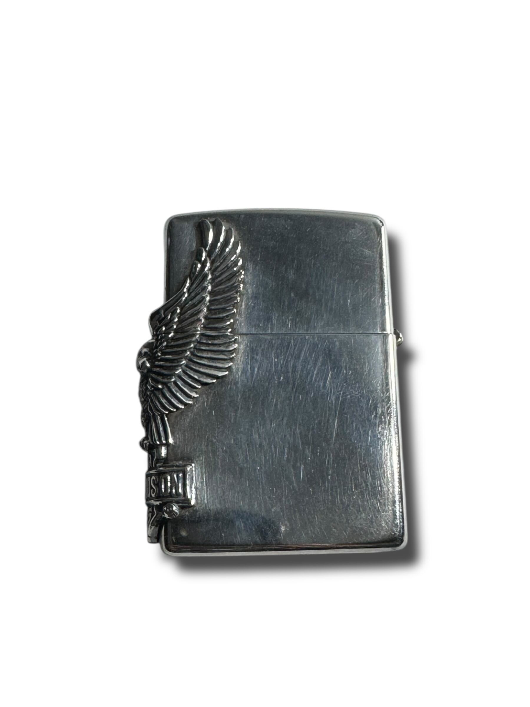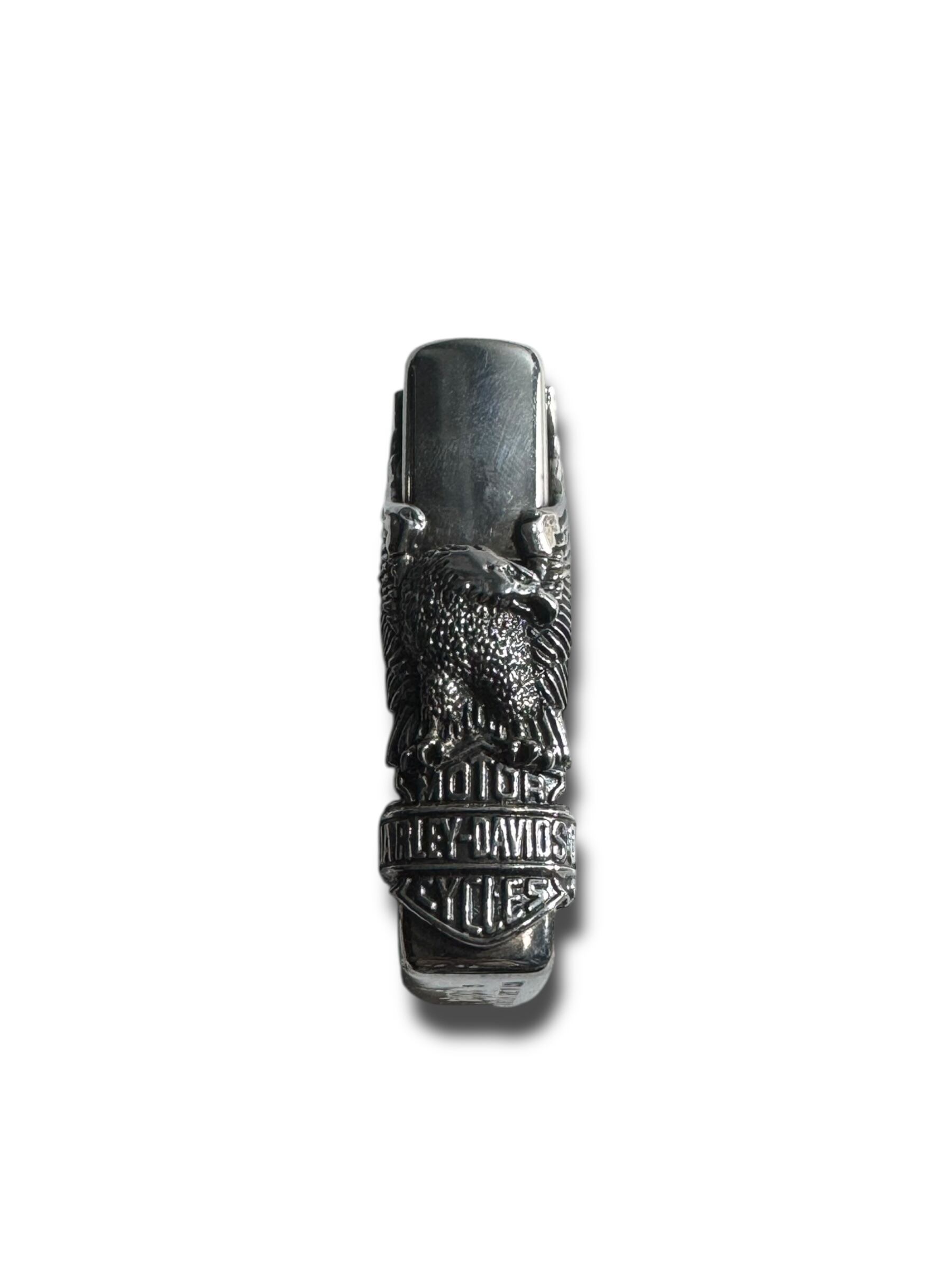 ハーレーダビッドソンのモーターヘッドエンブレムに加え、細かく繊細に描かれた鷹のデザインが魅力を増すオイルジッポライター‼️