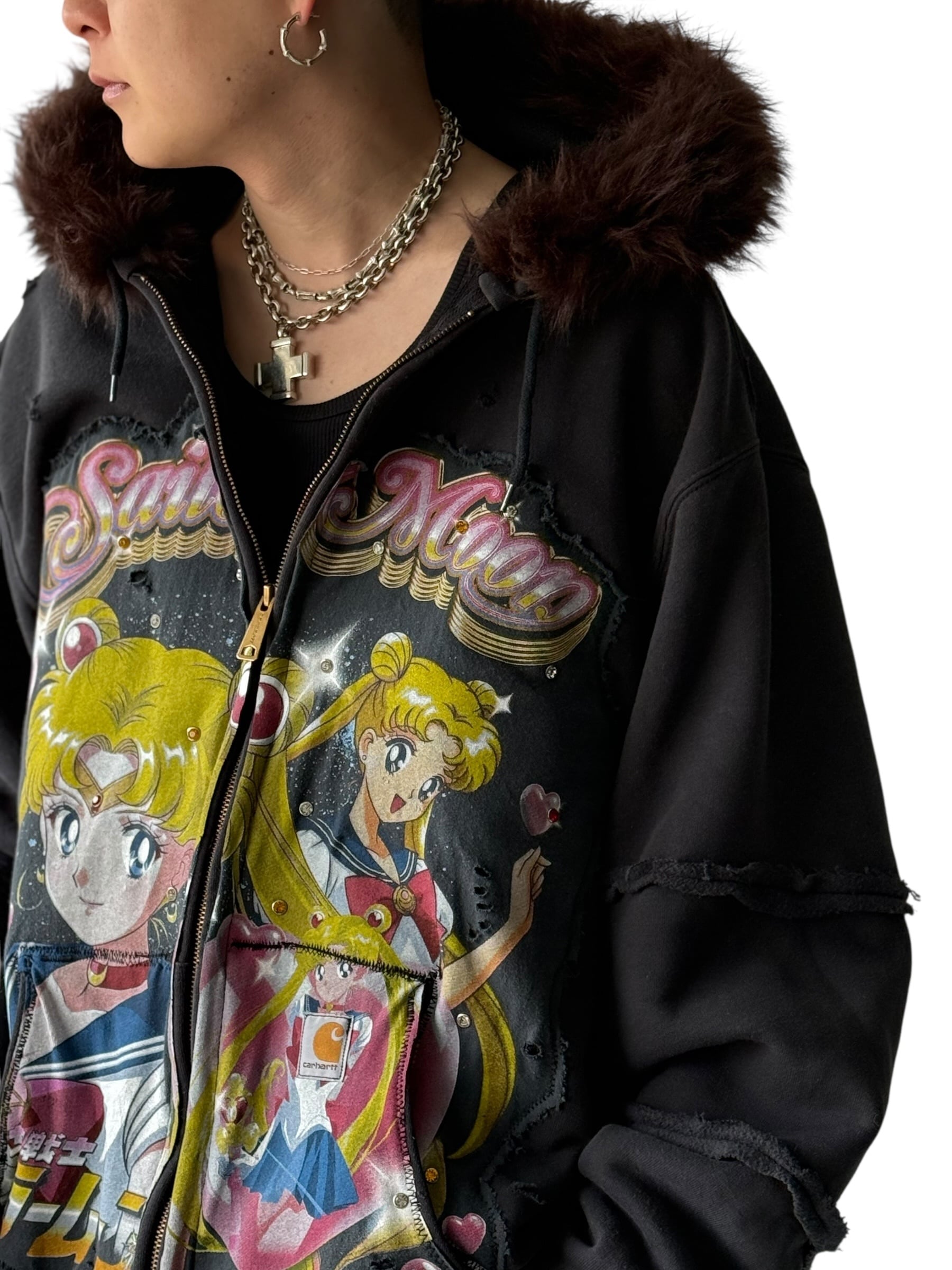 【REMADE COLLECTION】 "SAILOR MOON" carhartt remake custom zip up hoodie