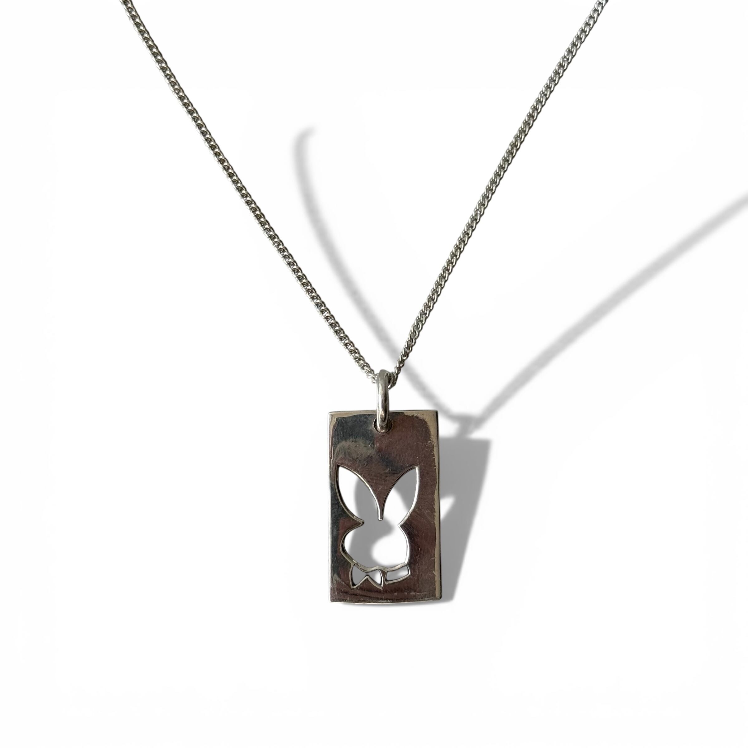 プレイボーイモチーフ型に切り抜かれたプレートが超クールなペンダントトップネックレス!!!
