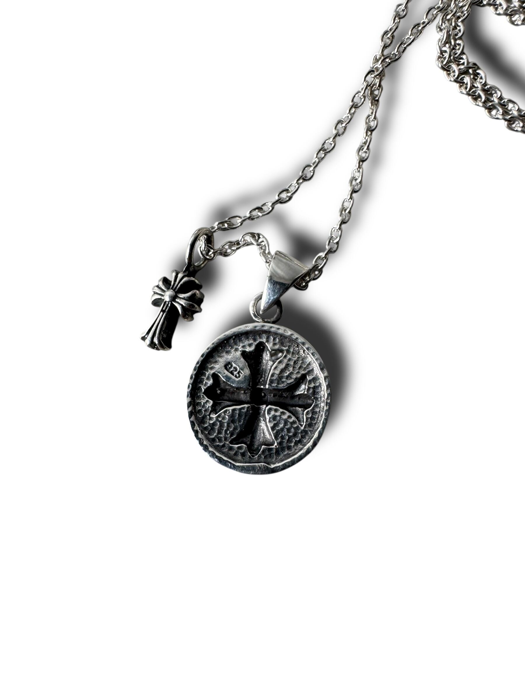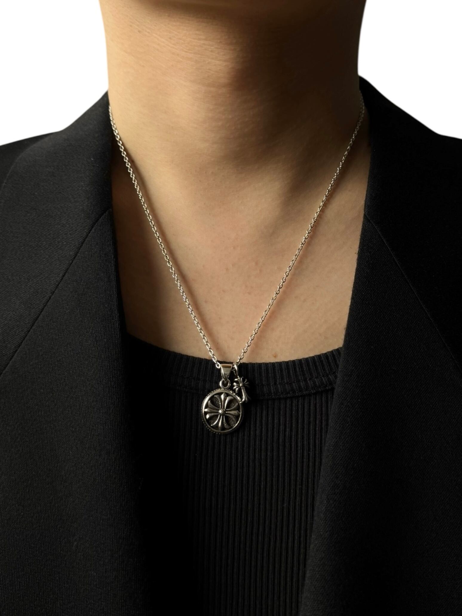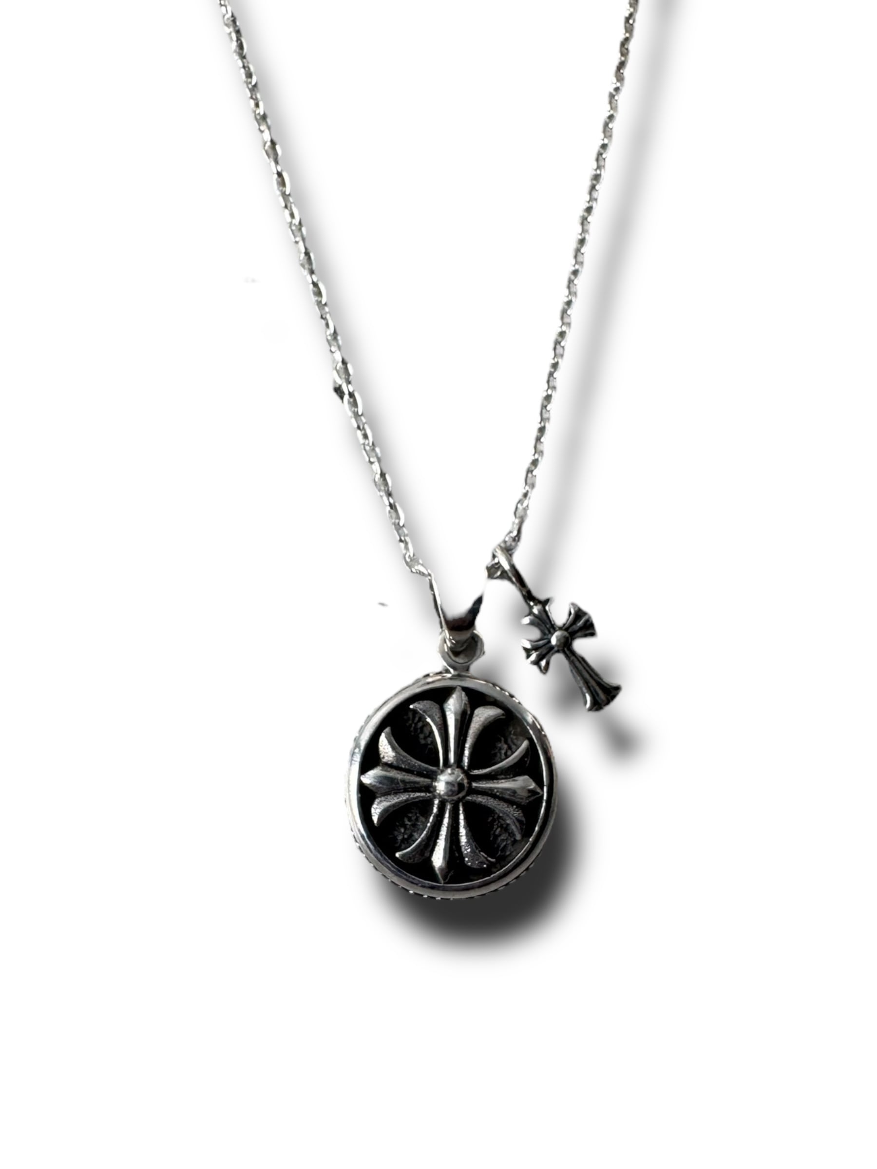 クロスペンダントトップとミニクロスのダブルモチーフが存在感抜群なデザインシルバーネックレス‼️