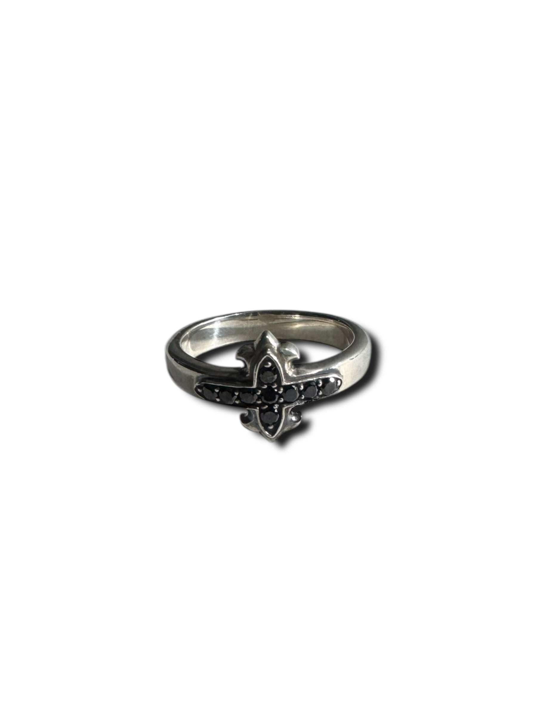 小ぶりなフローラルクロスに黒のジルコニアがセットされたかわいいリングの入荷❣️❣️
