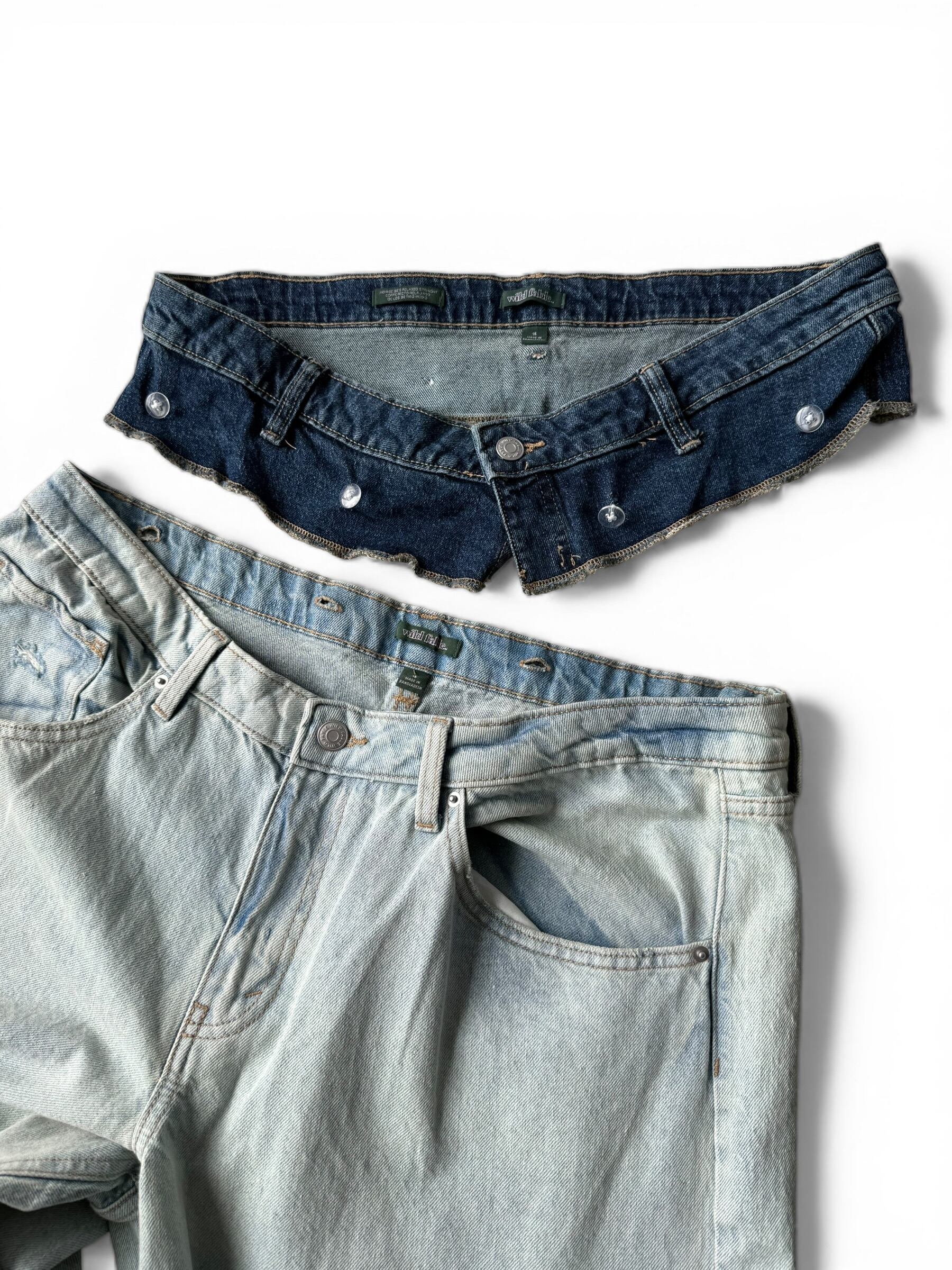 インパクト抜群なパンツが2枚重なったようにドッキングしているワイドデニム‼️