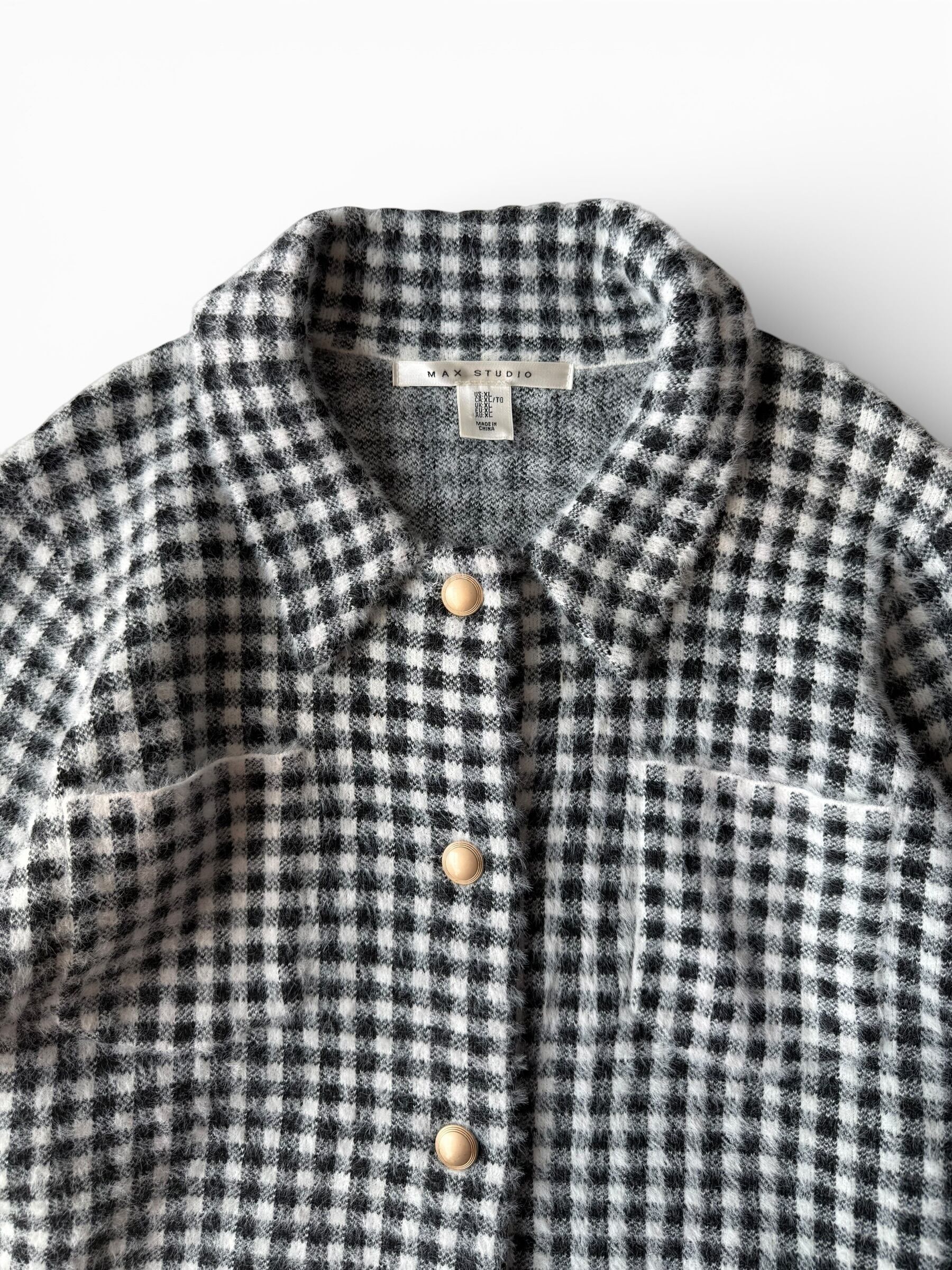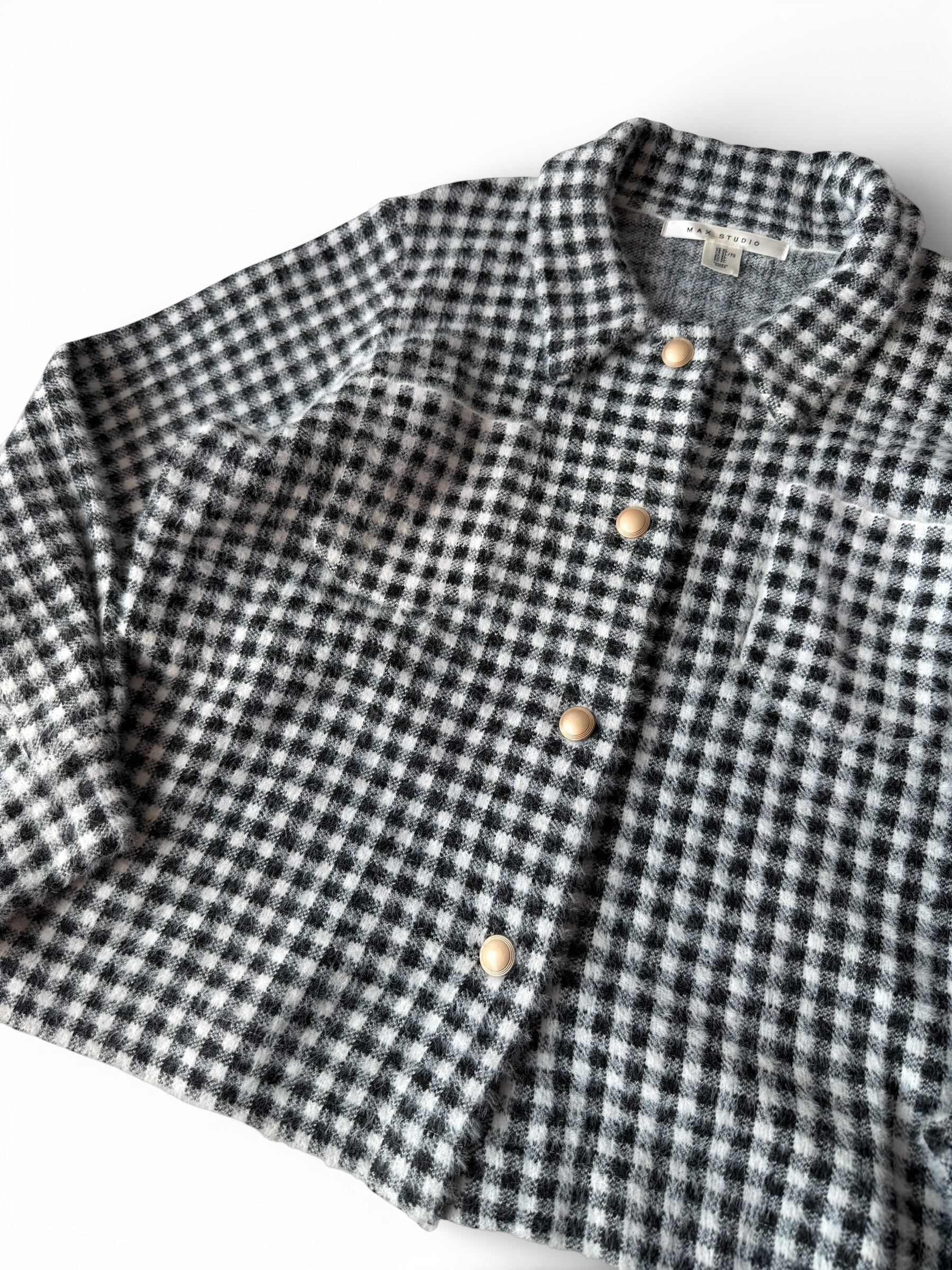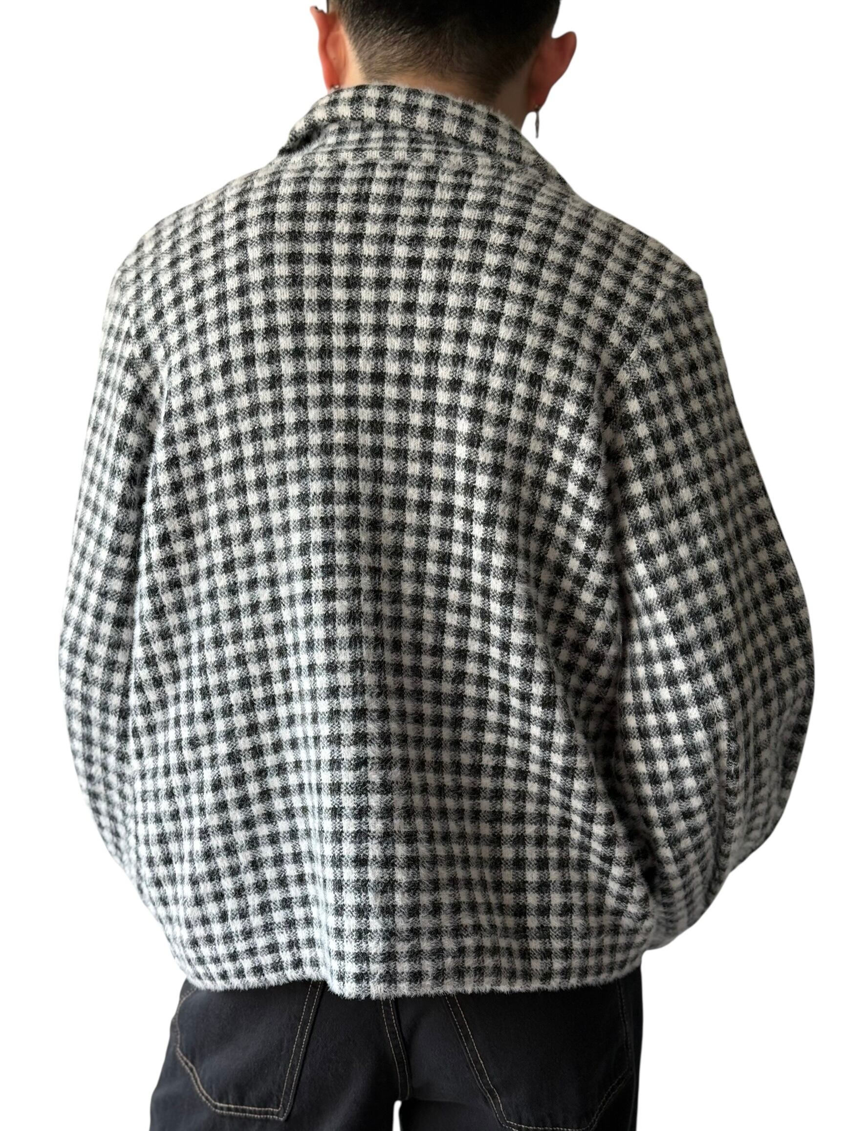 【MAX STUDIO】Birdseye pattern gingham check shaggy knit trucker jacket