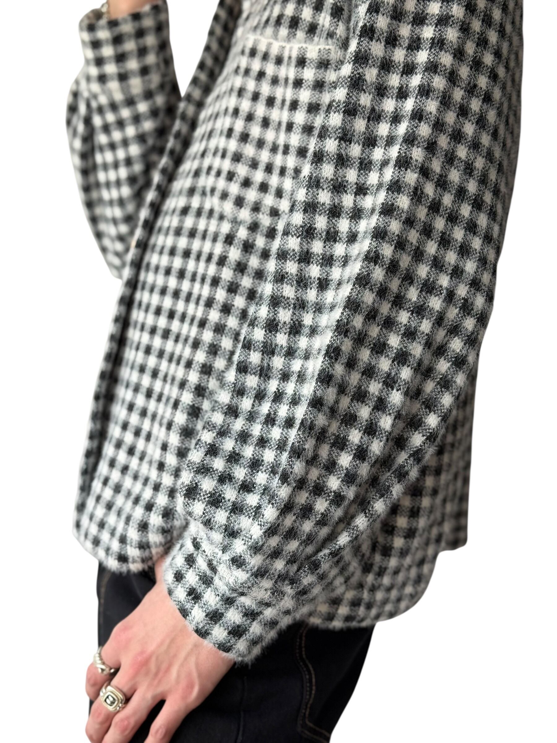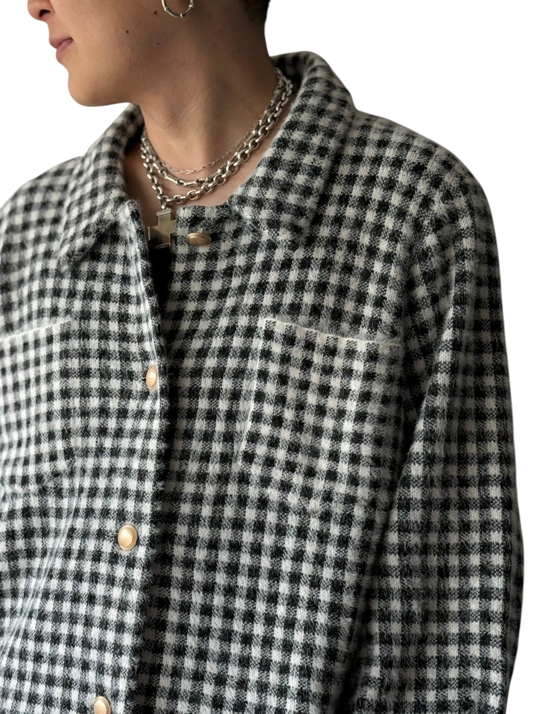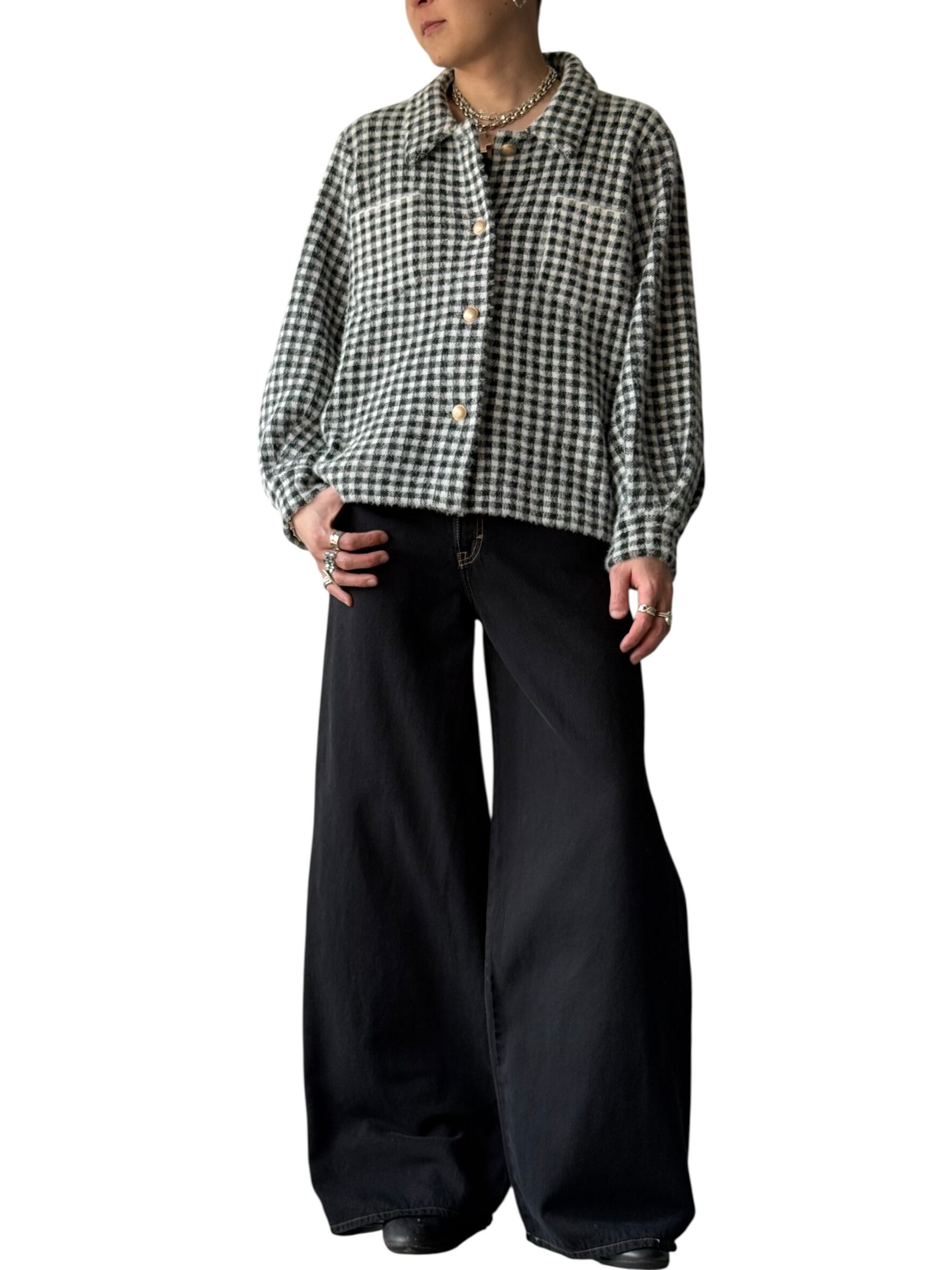 【MAX STUDIO】Birdseye pattern gingham check shaggy knit trucker jacket