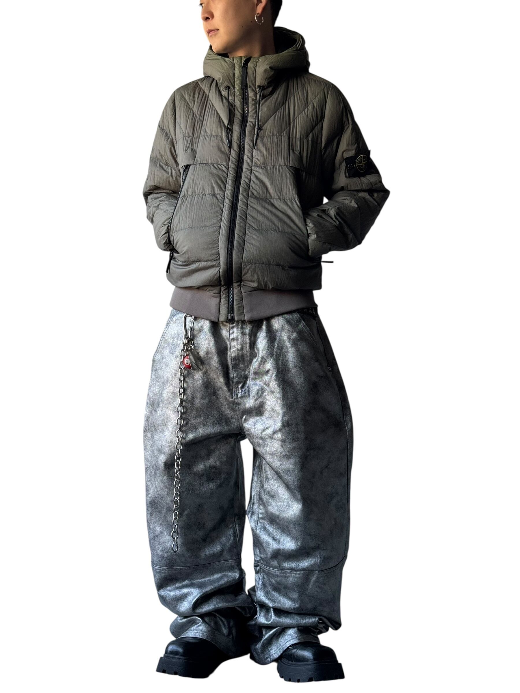 軽量なナイロンキャンバスを使用したスタンドカラーフーディーのダウンジャケット。同系色で控えめなコントラストを付けたシーム、ファスナー付きポケット、袖にはしっかりと腕章装備◎