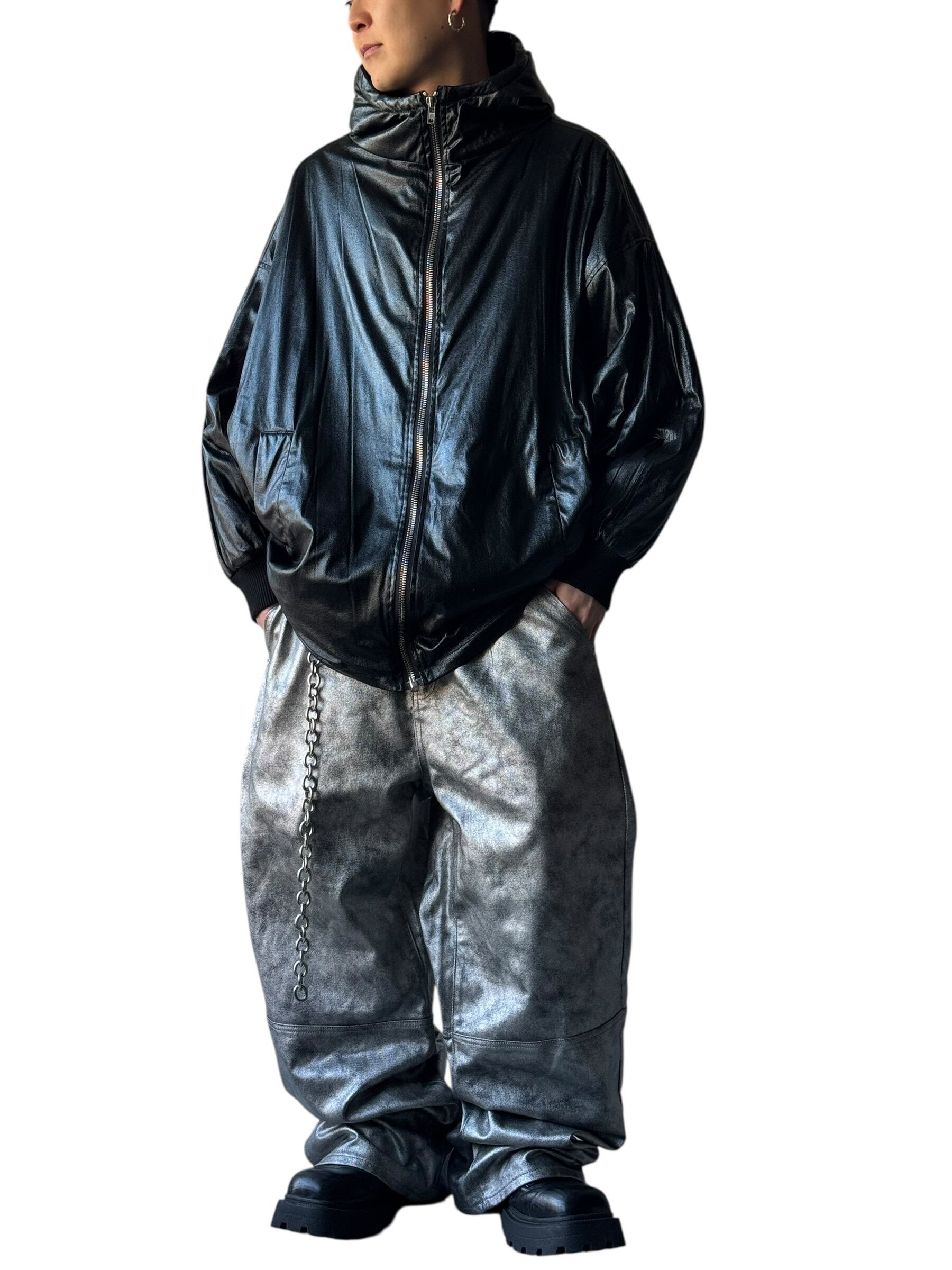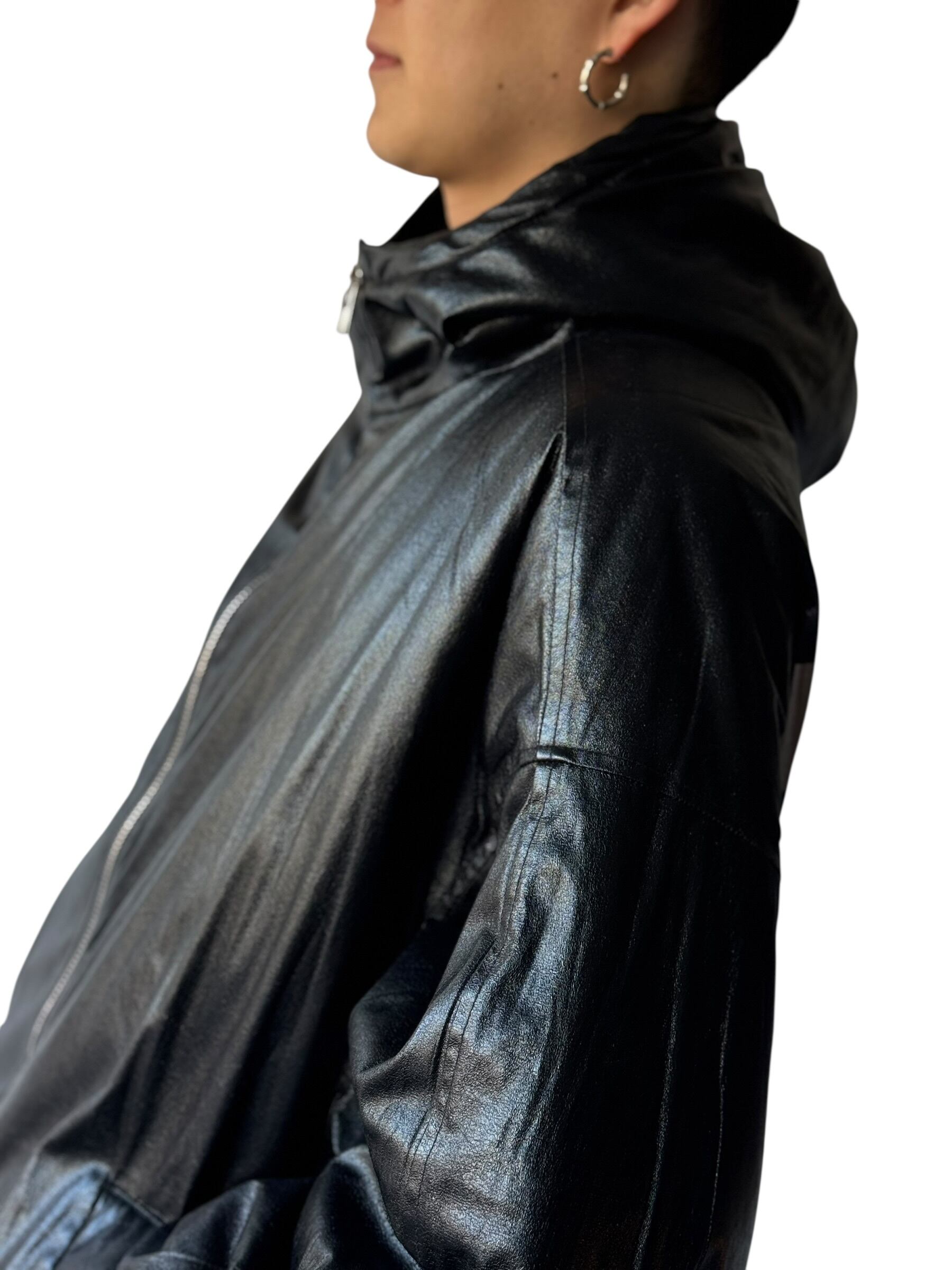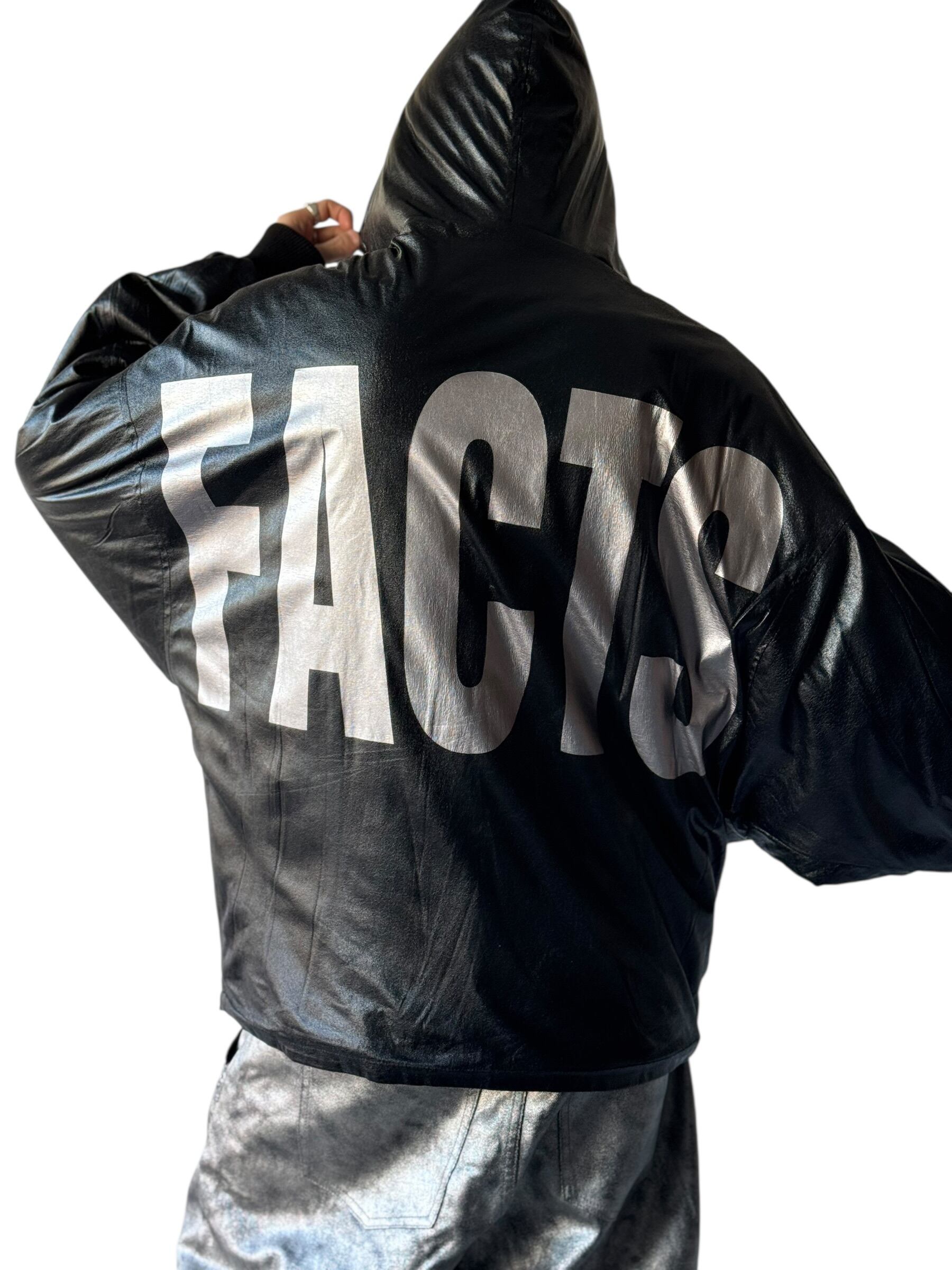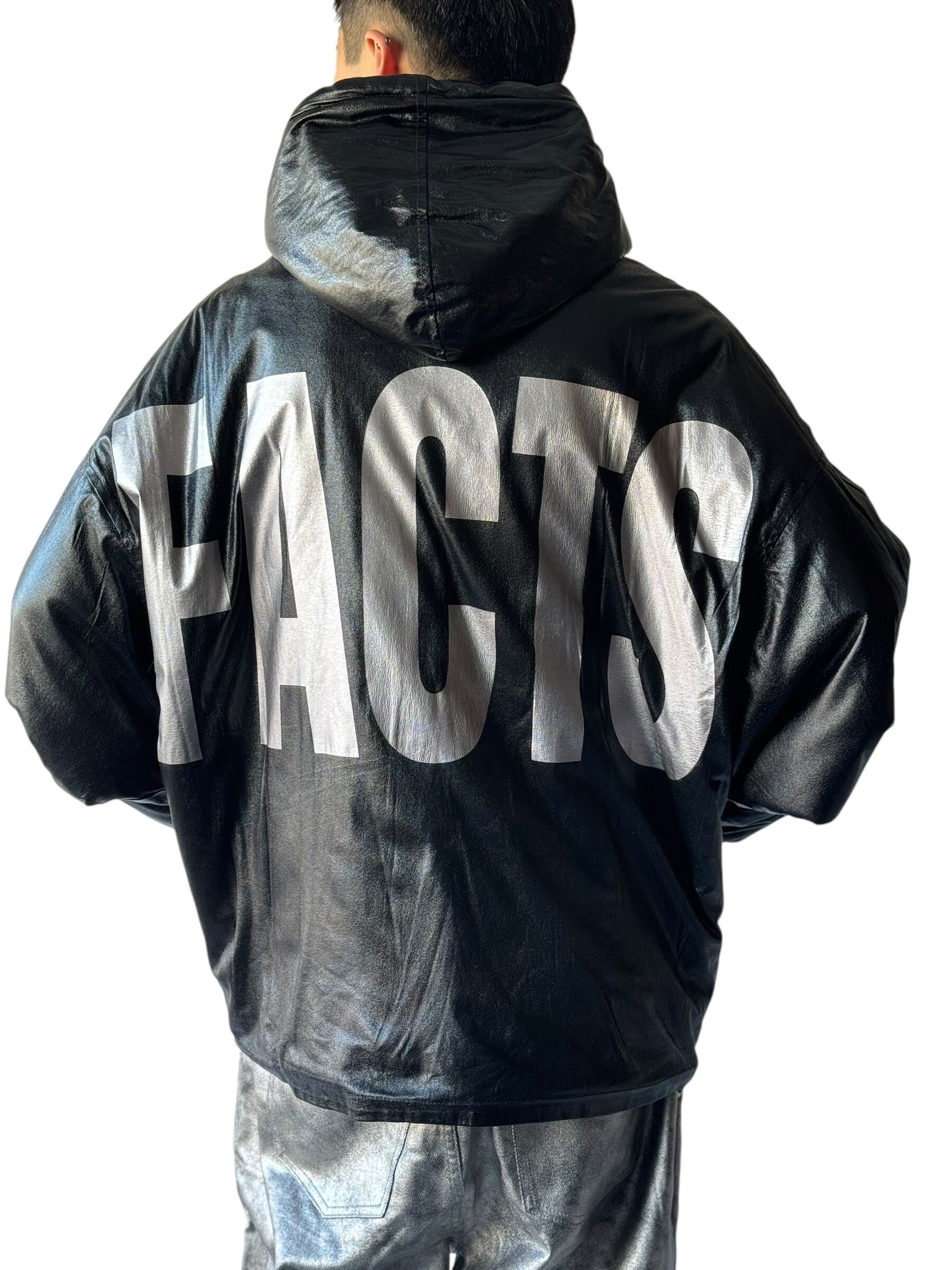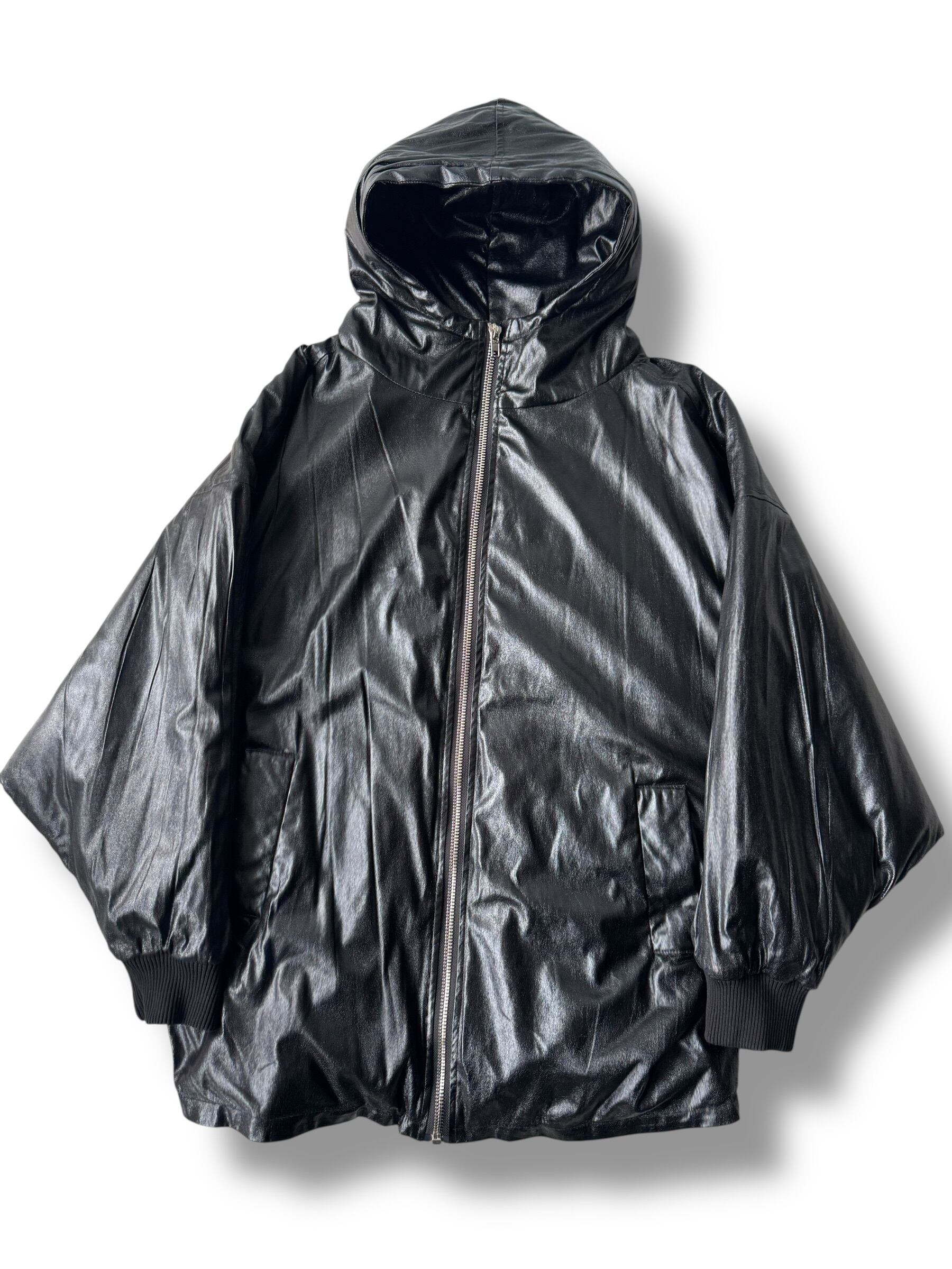 ♾design used♾ "FACTS" big logo pu coating design dolman sleeve hooded jacket