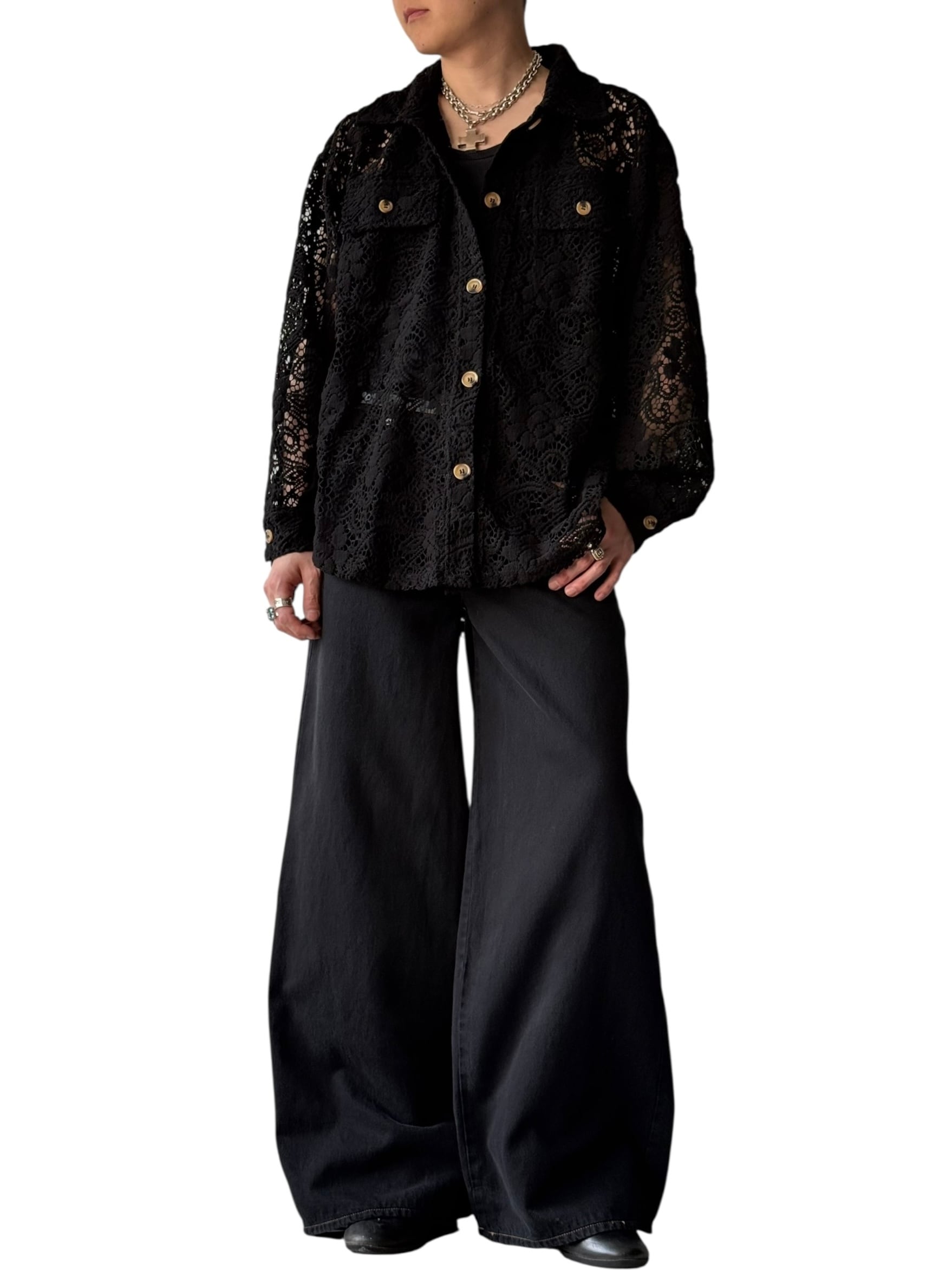希少なメンズでもゆったり着用できるサイジングのレースデザインシャツジャケット!