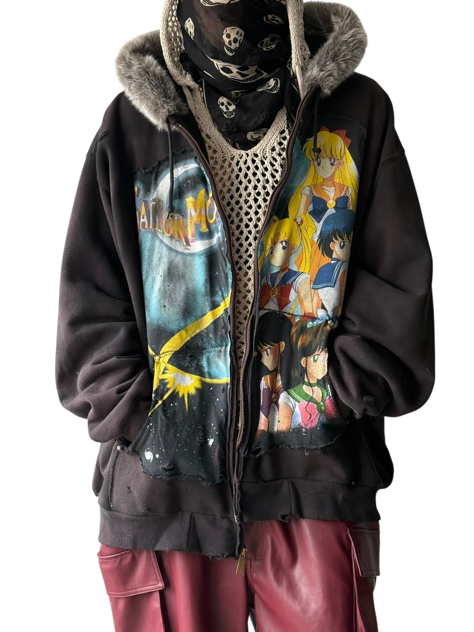 【REMADE COLLECTION】 "SAILOR MOON" carhartt remake custom zip up hoodie
