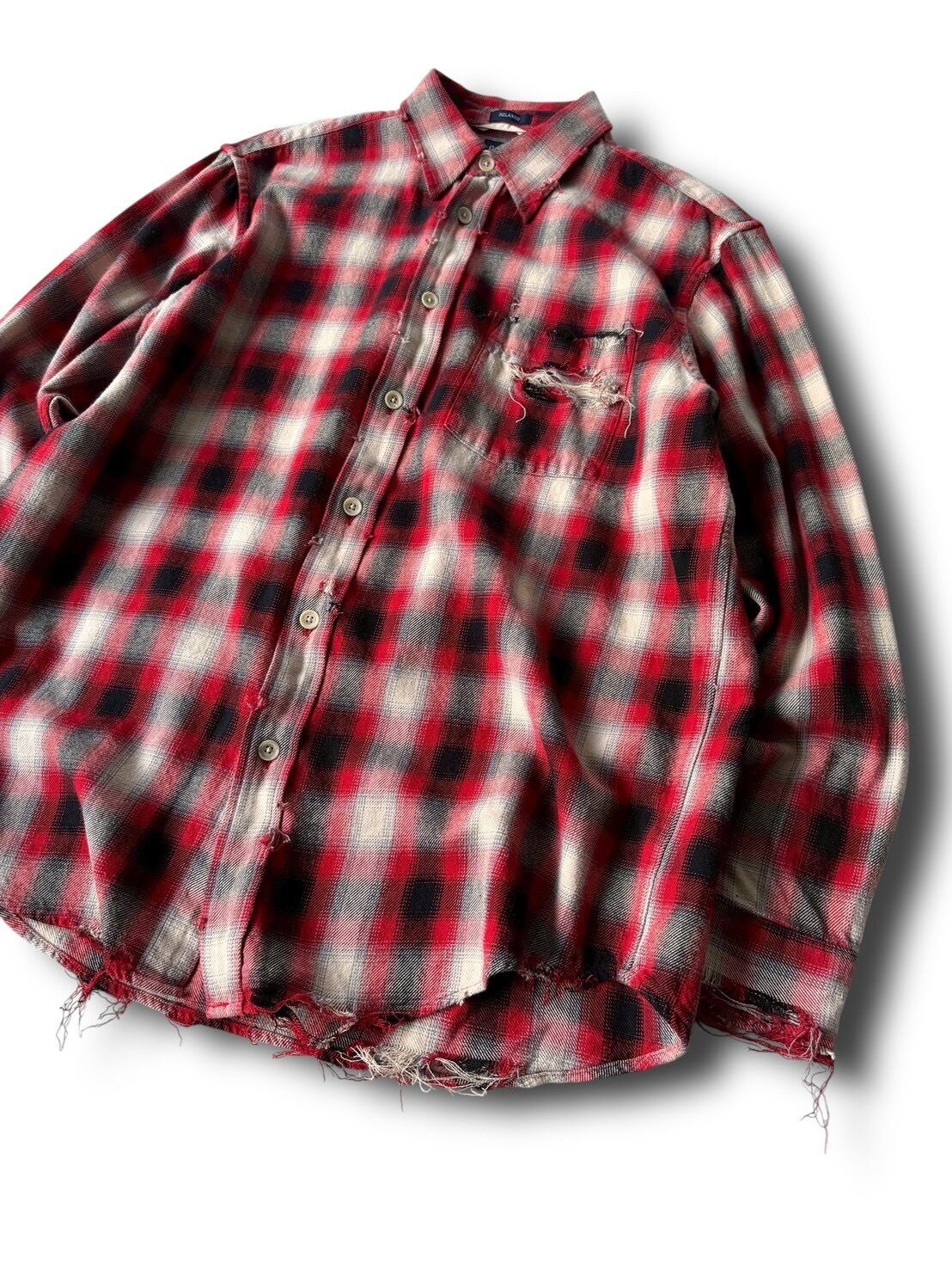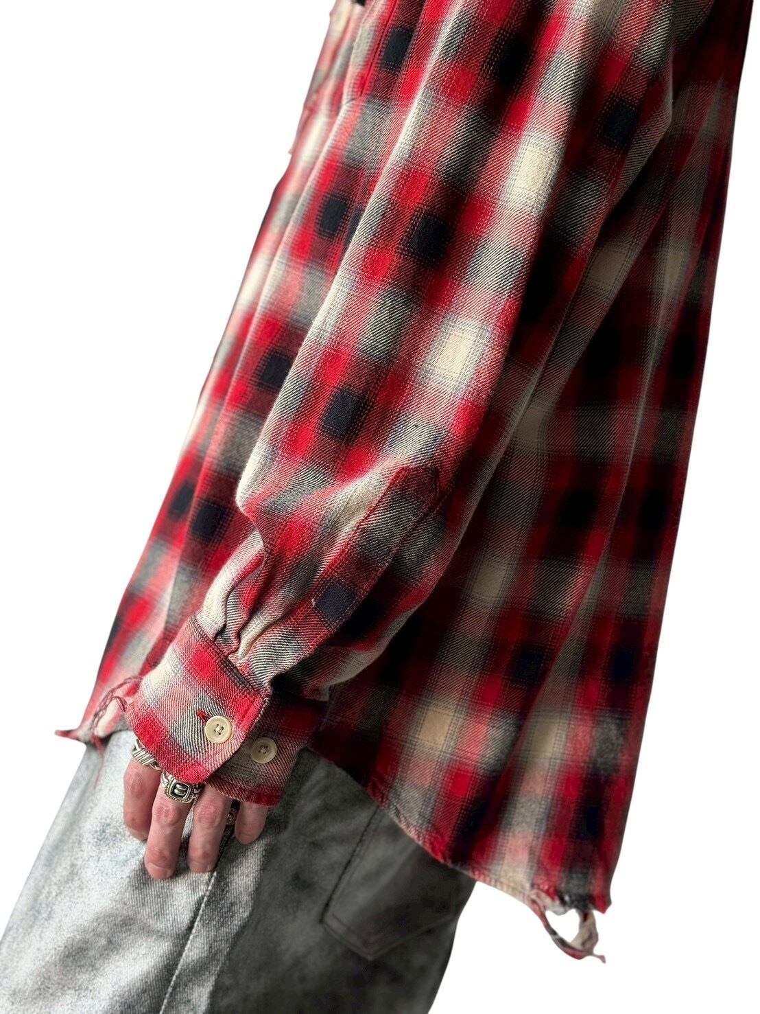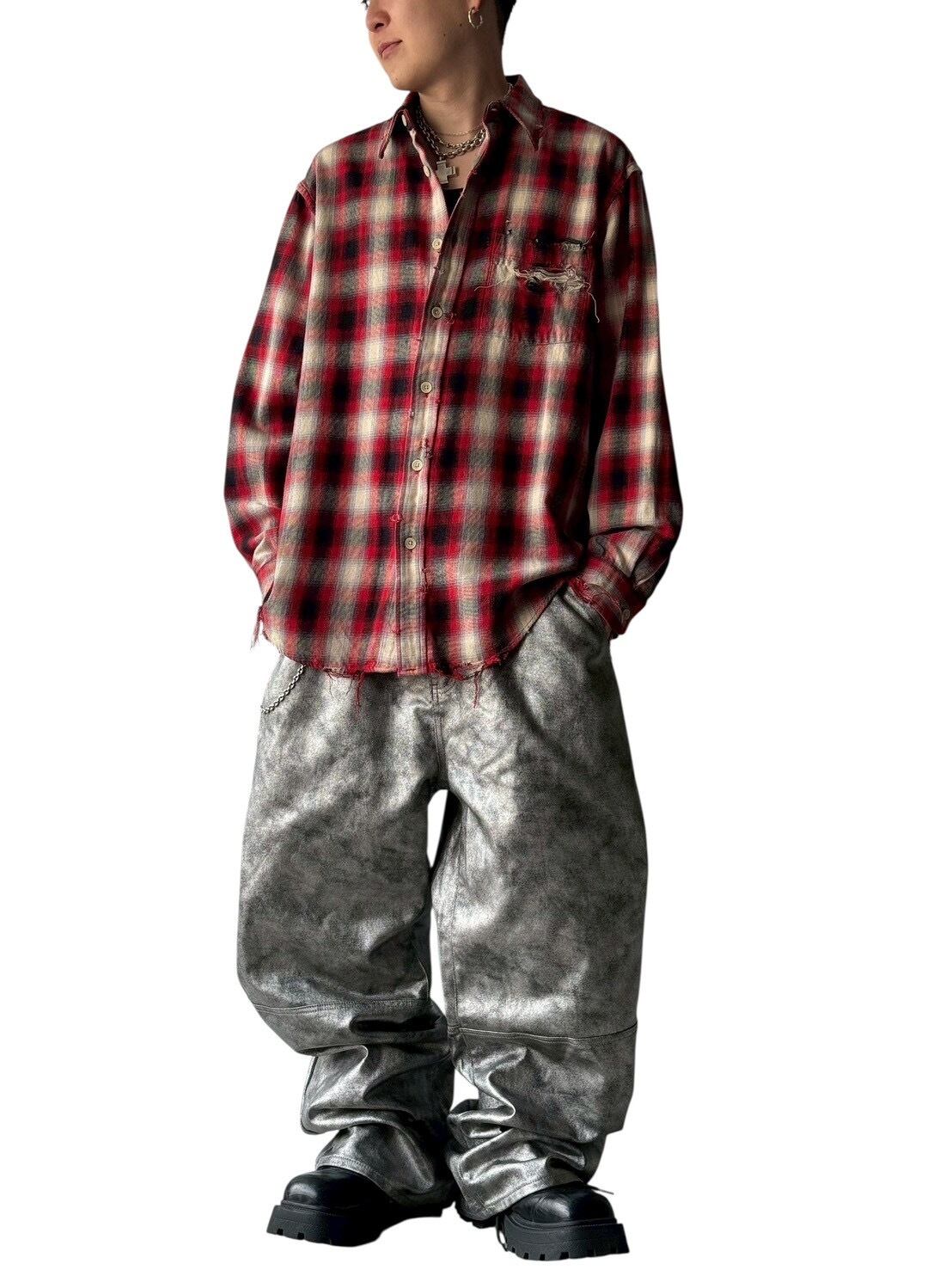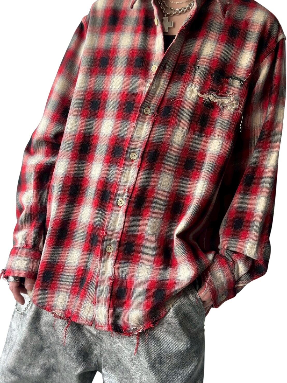 ️無敵のクラッシュデザインオンブレチェックシャツ。
