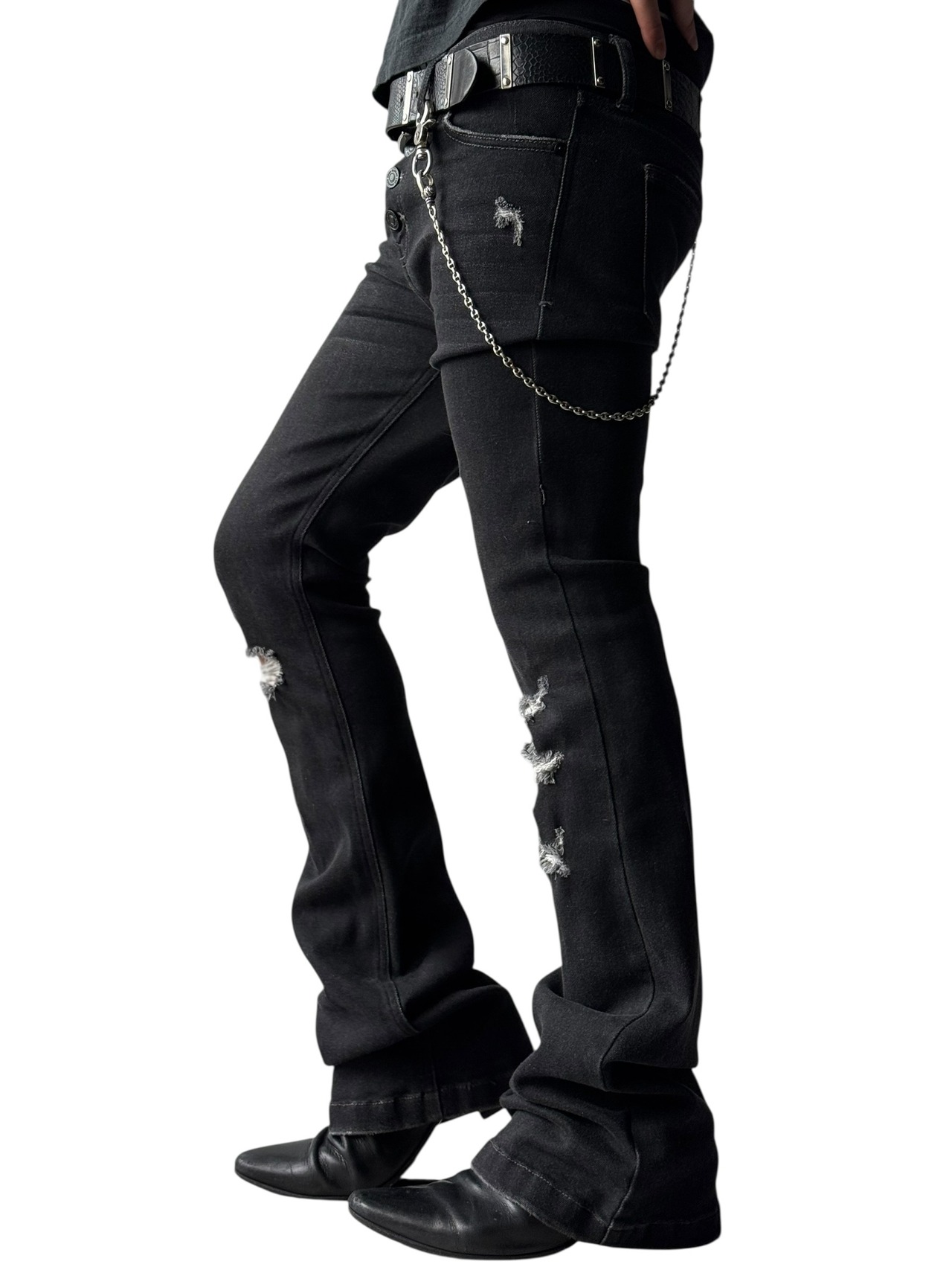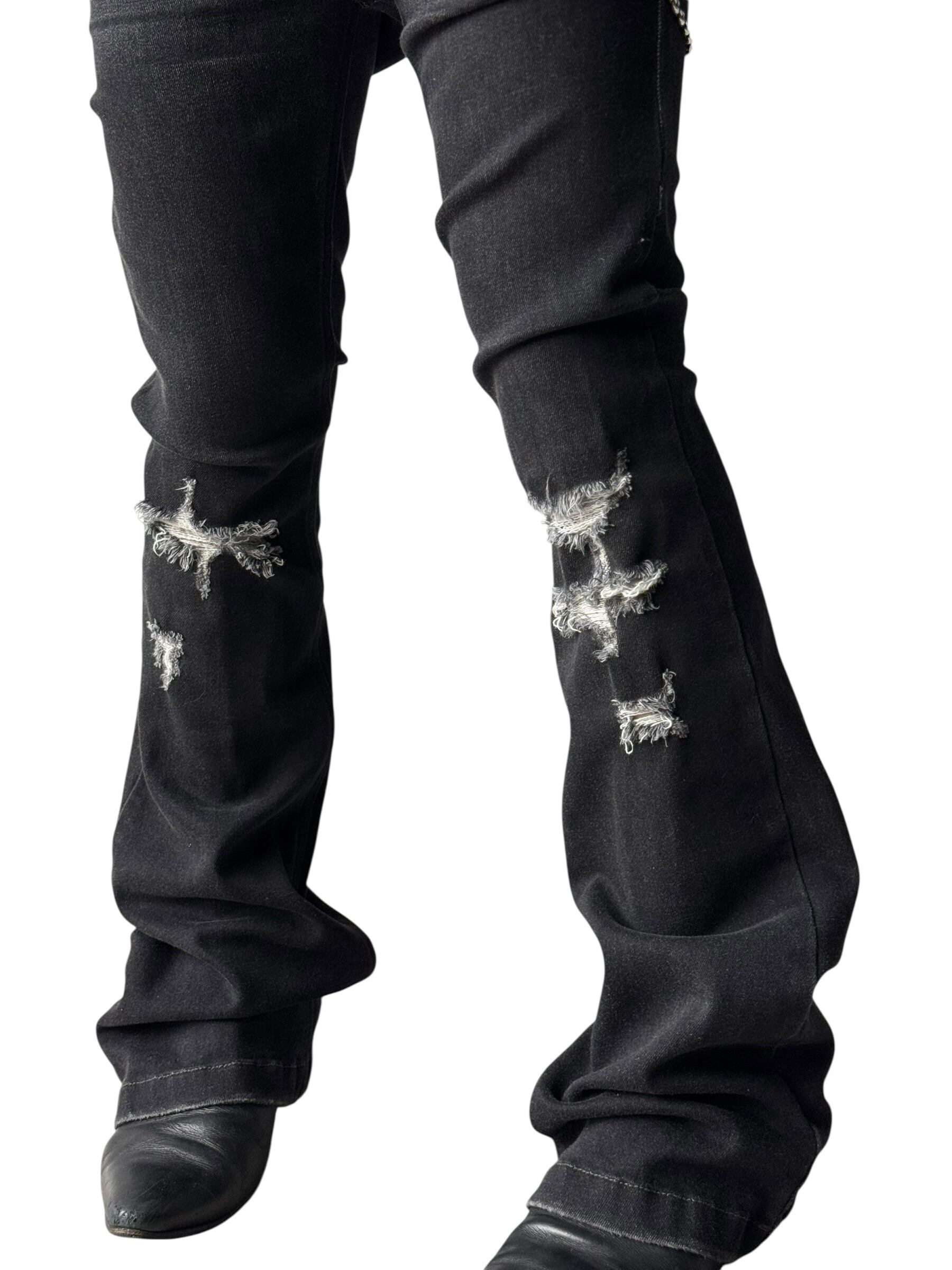 Distressed flared black denim pants