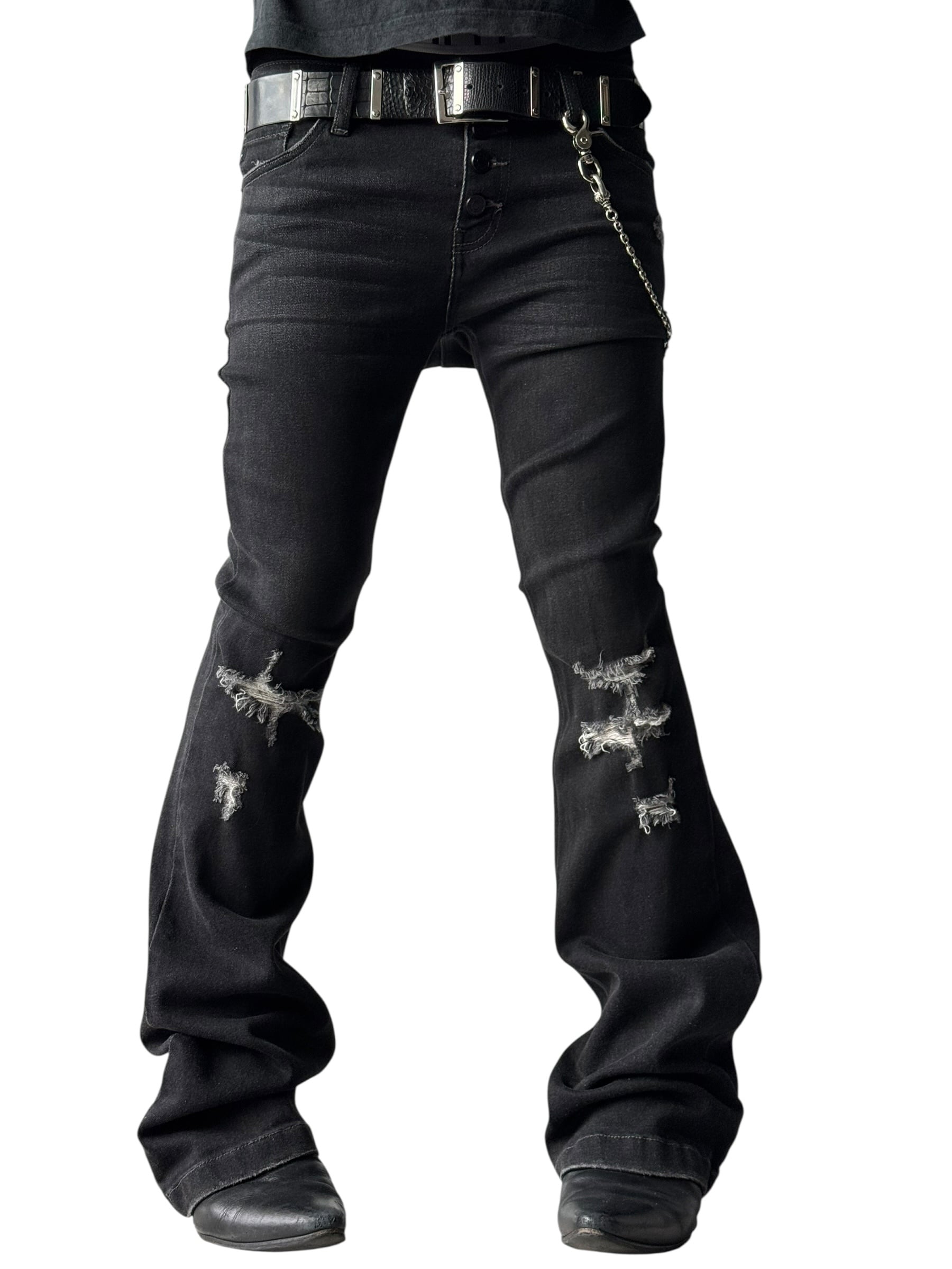 ♾KAN CAN♾️ Distressed flared black denim pants