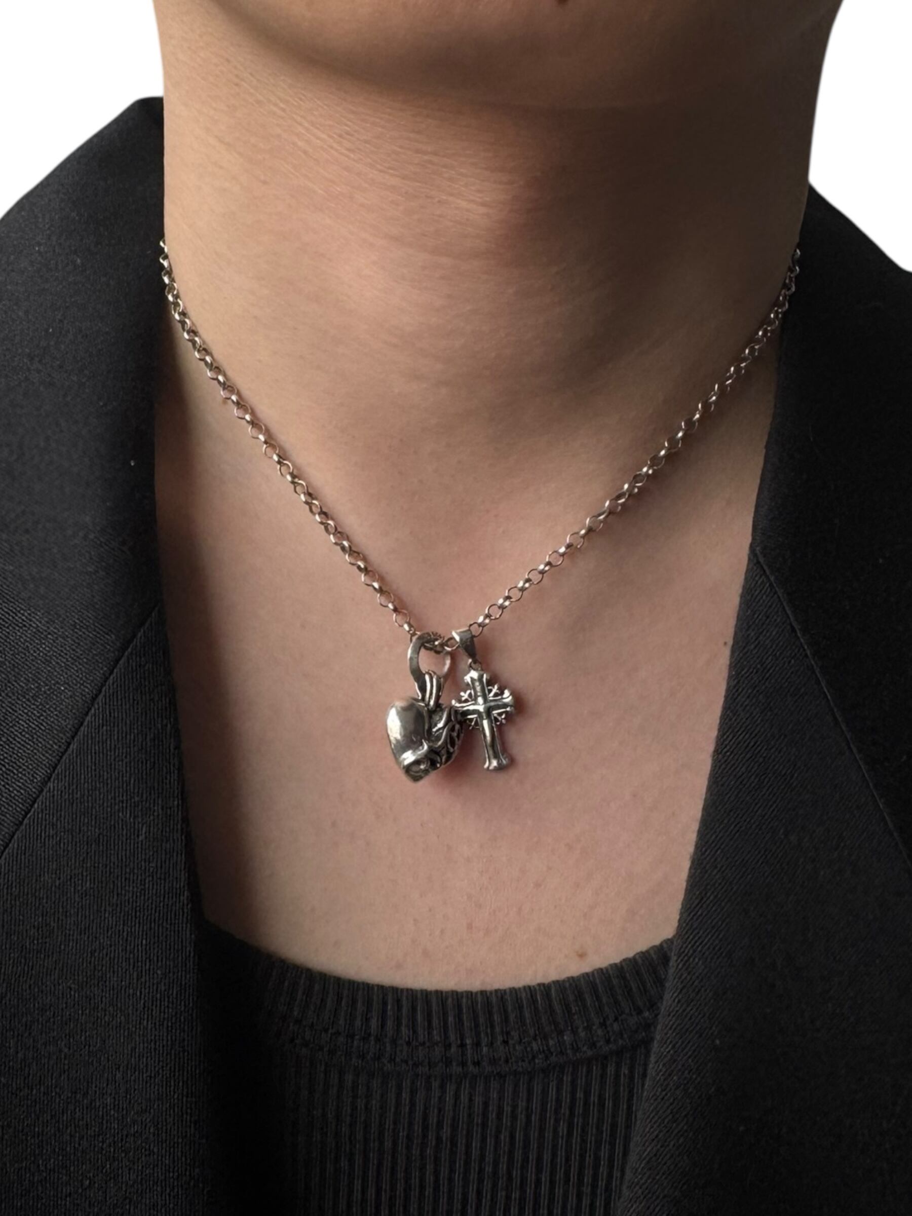 heart n' cross motif w top design necklace