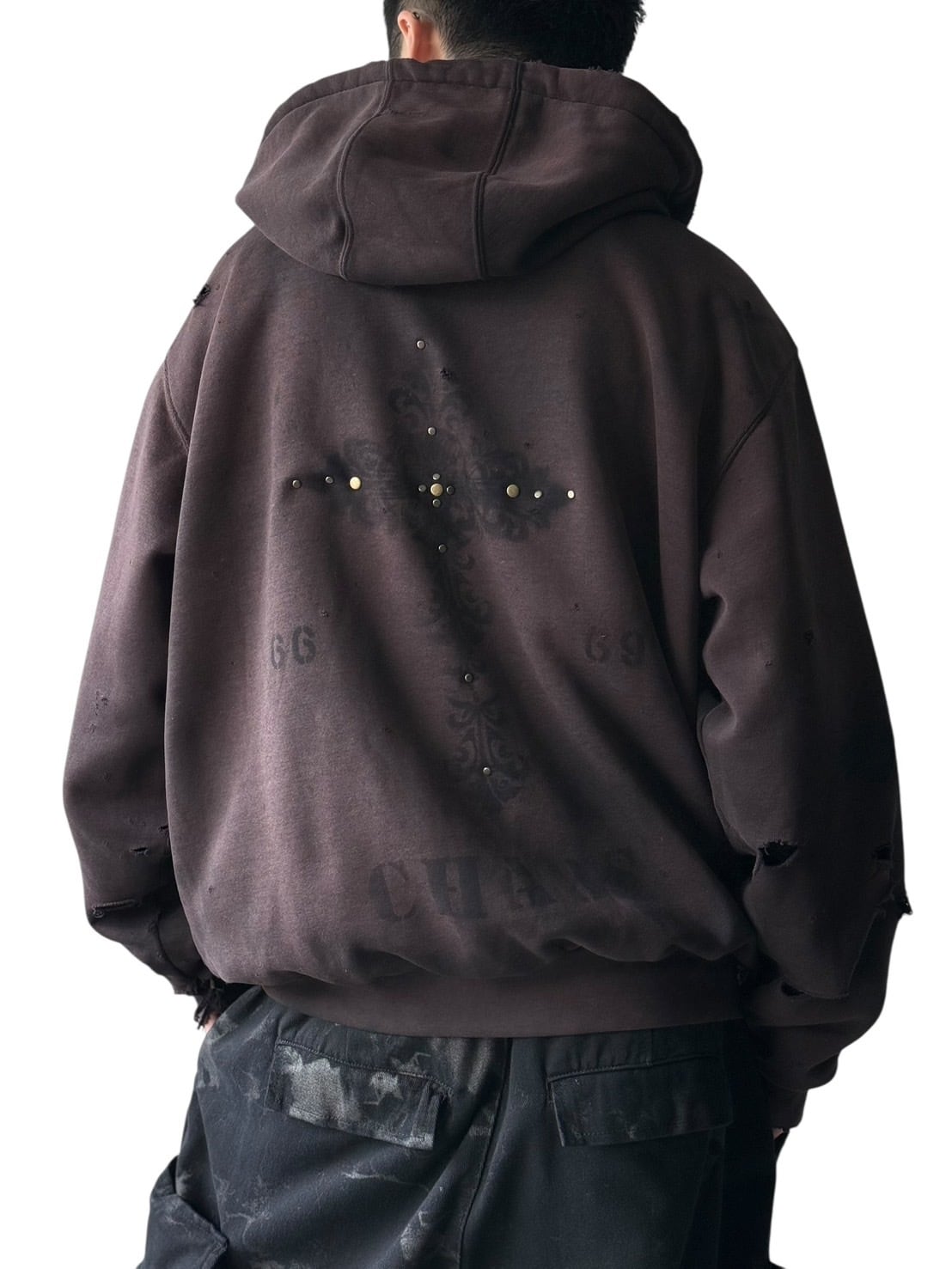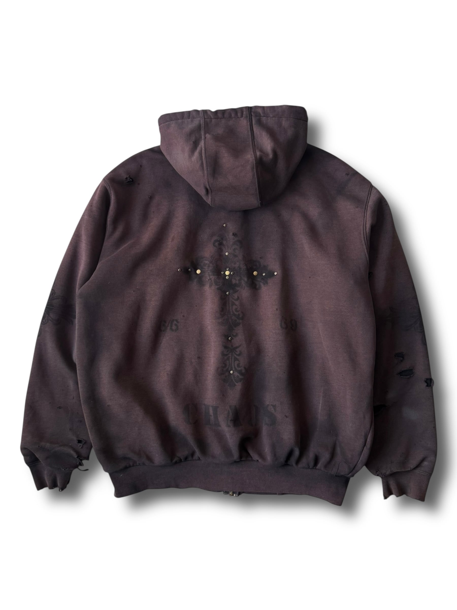 sun fade damage & hand painted custom design zip up hoodie