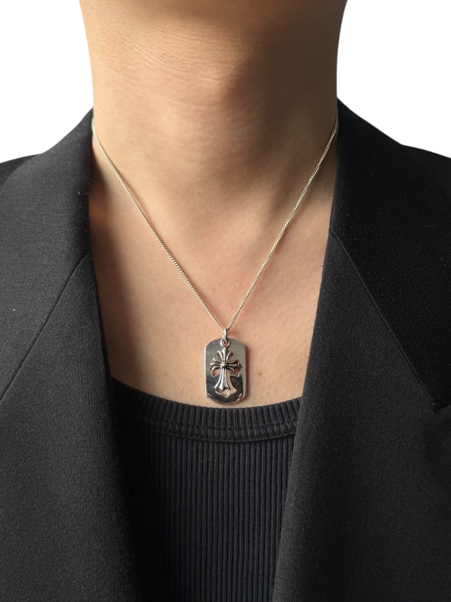 ♾vtg sterling collection♾ cross motif design dogtag necklace sv925