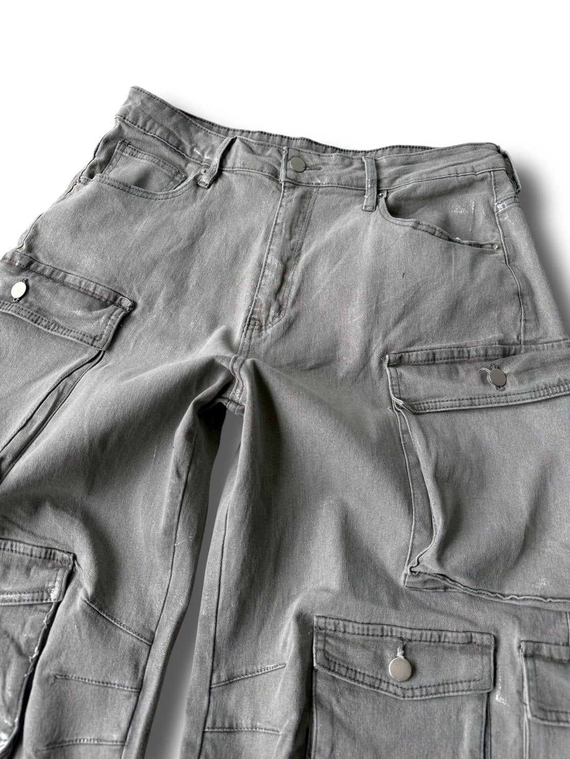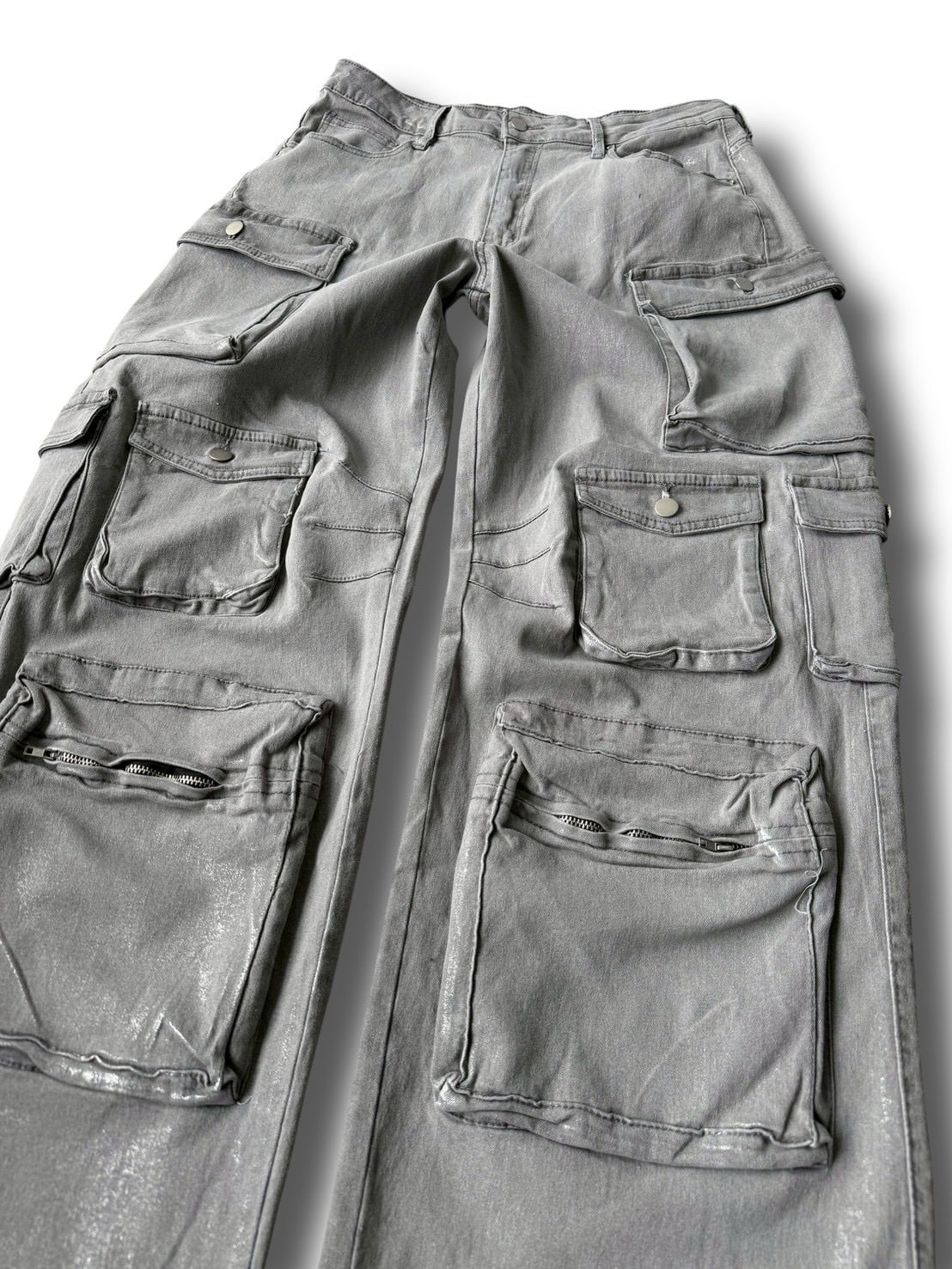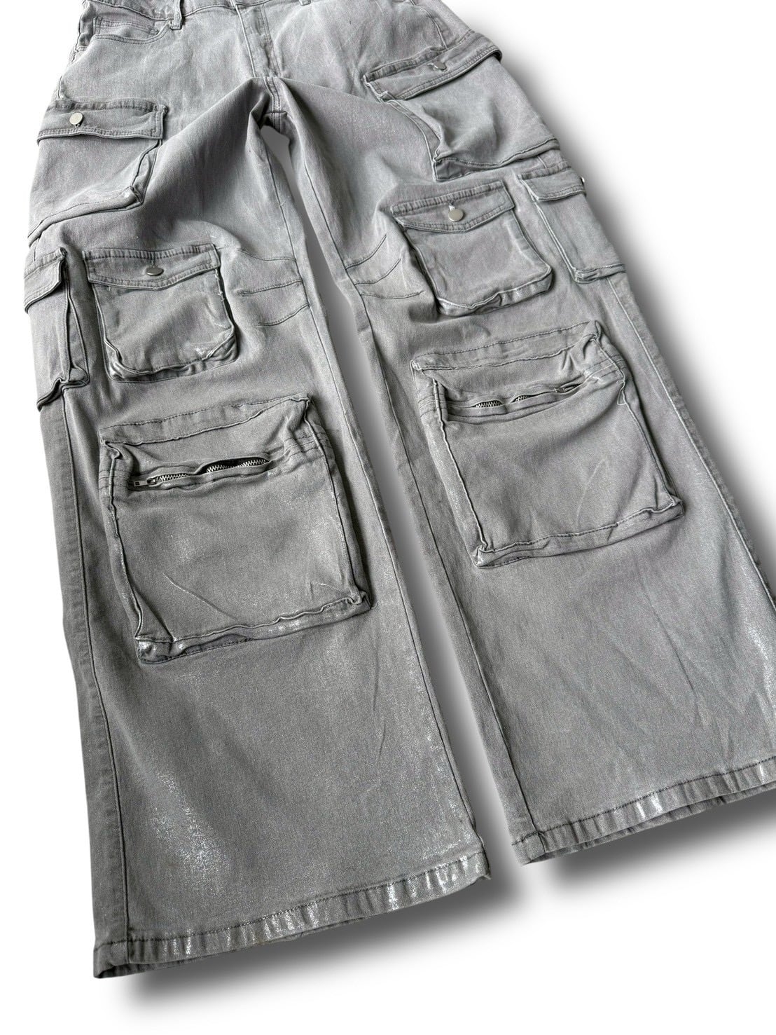 ♾design used♾ Cargo detail wide flare silhouette coating pants