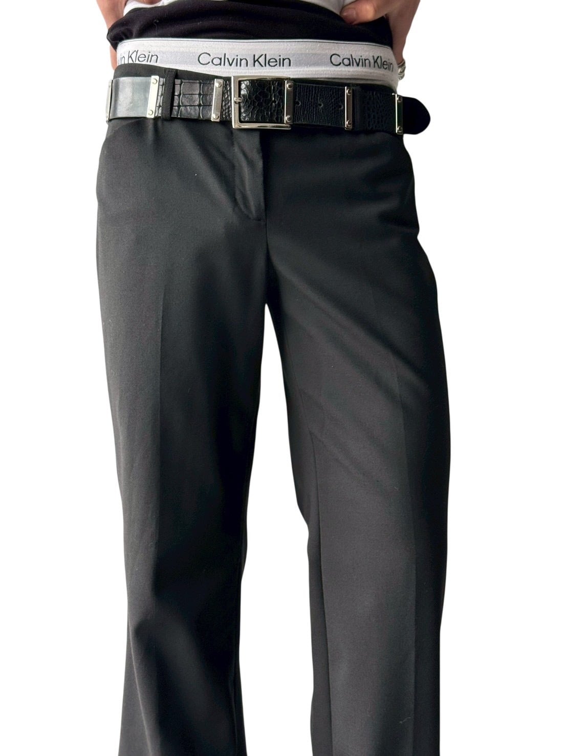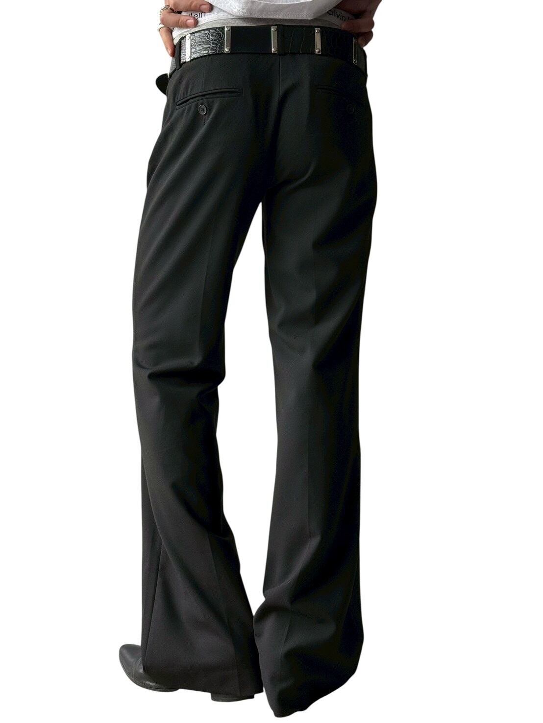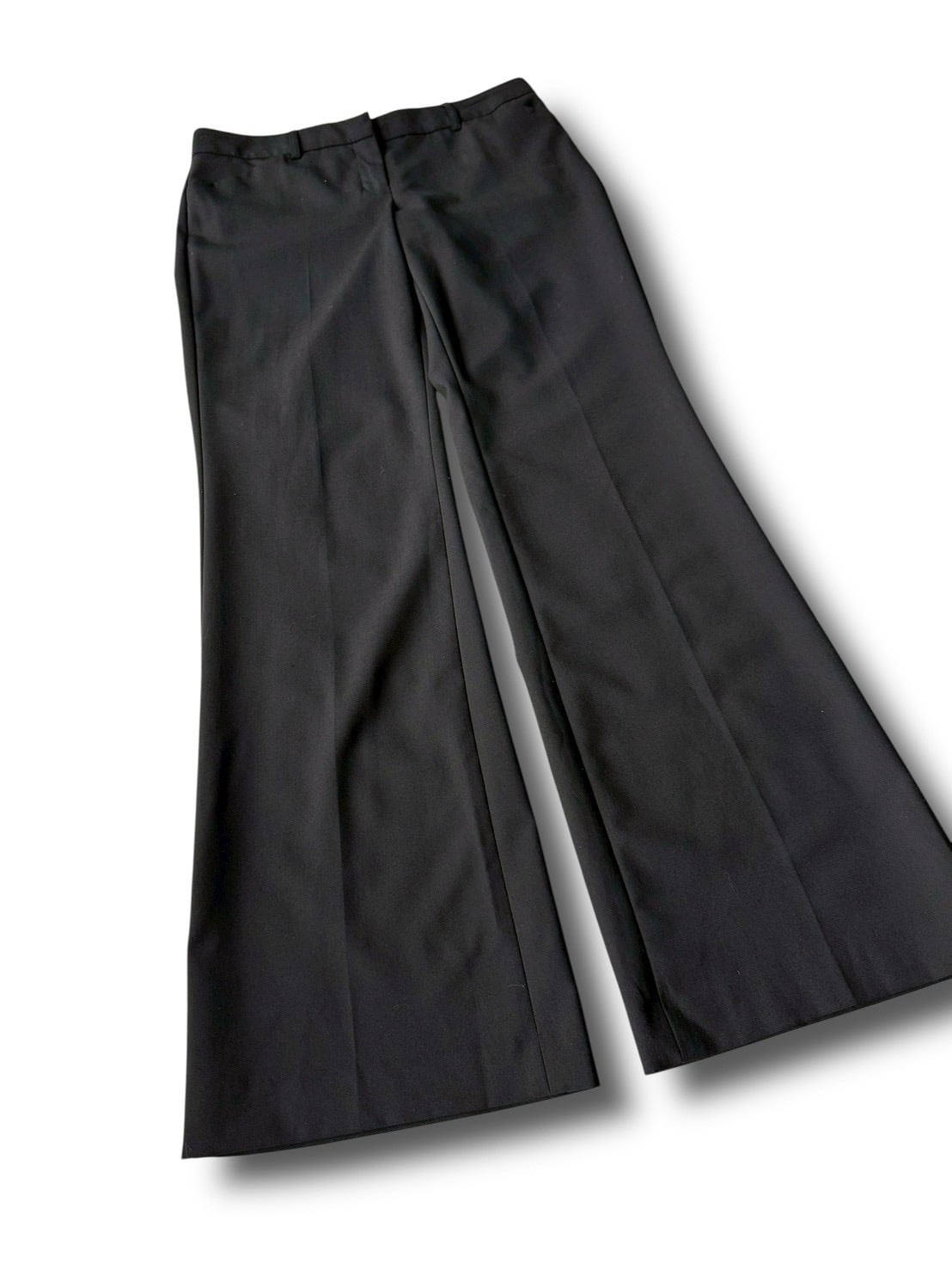 Center tuck black flare slacks