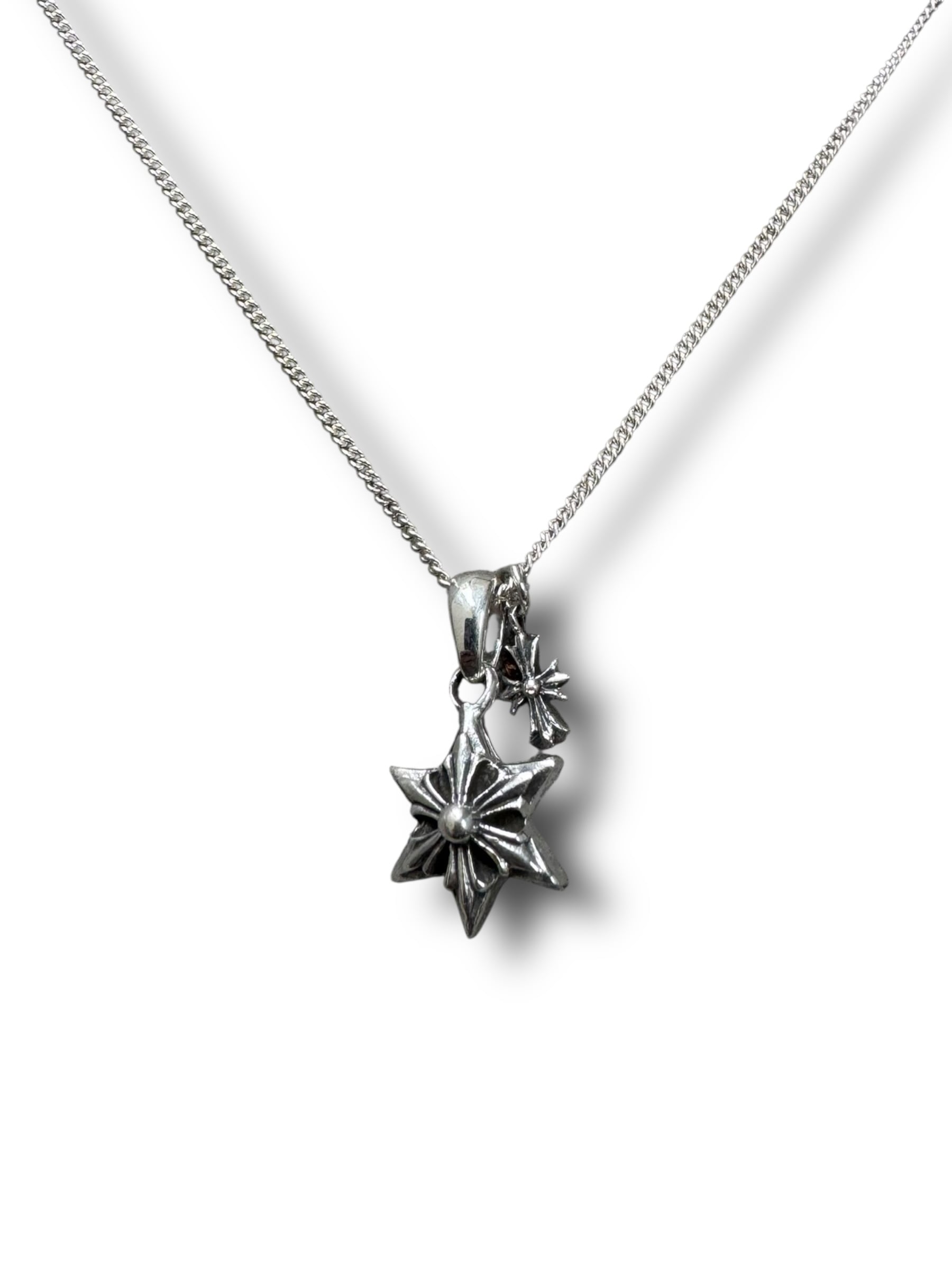 スターチャームにクロスのモチーフがクールなデザインシルバーネックレス✨️