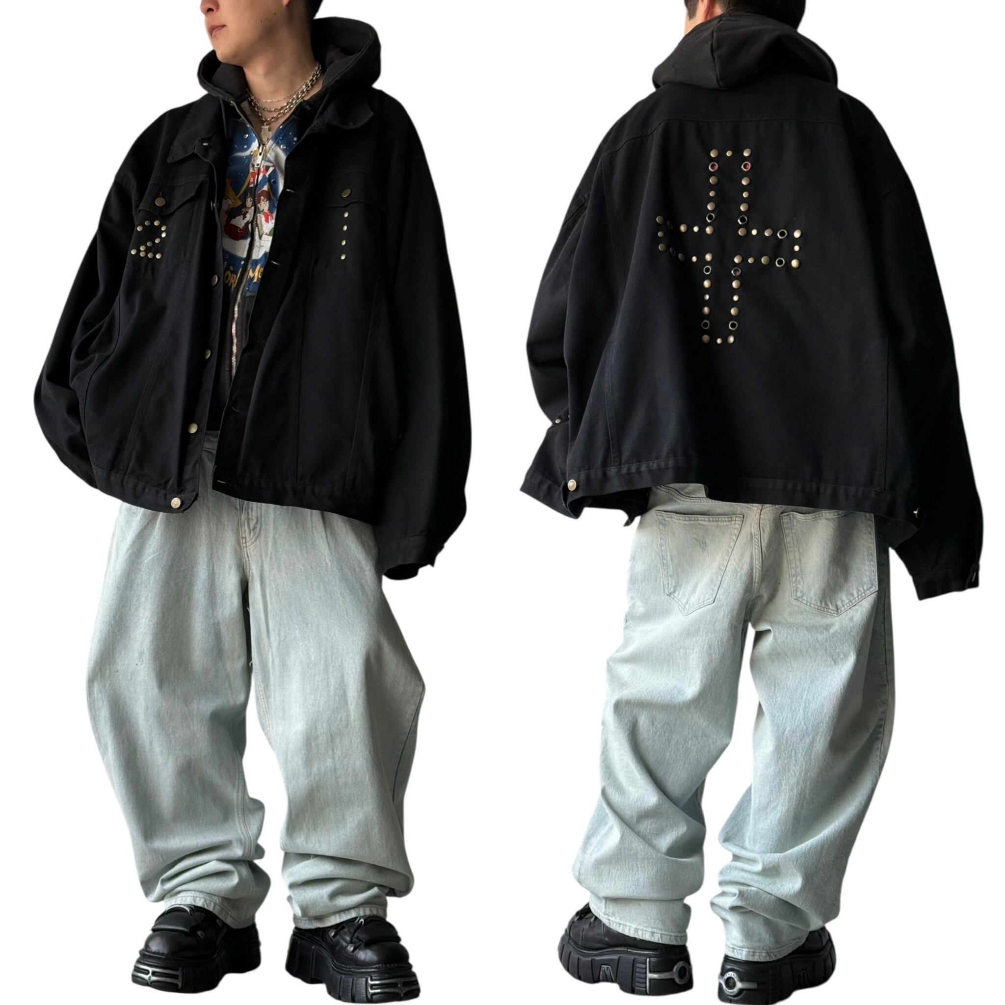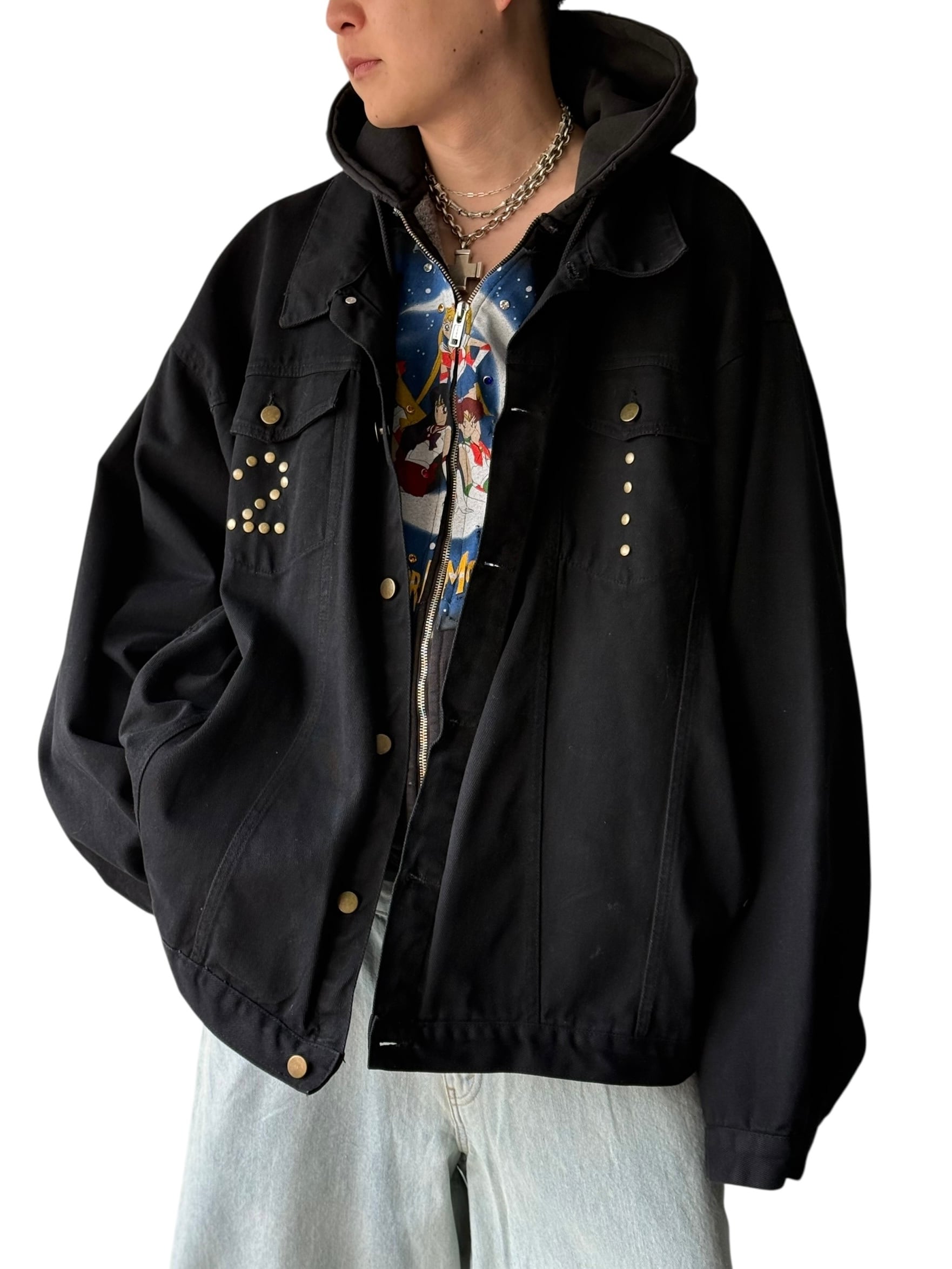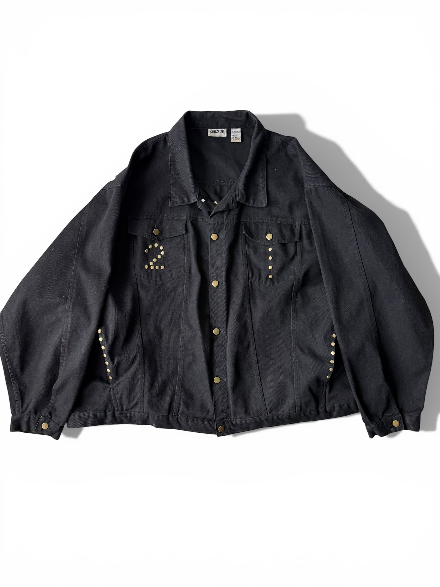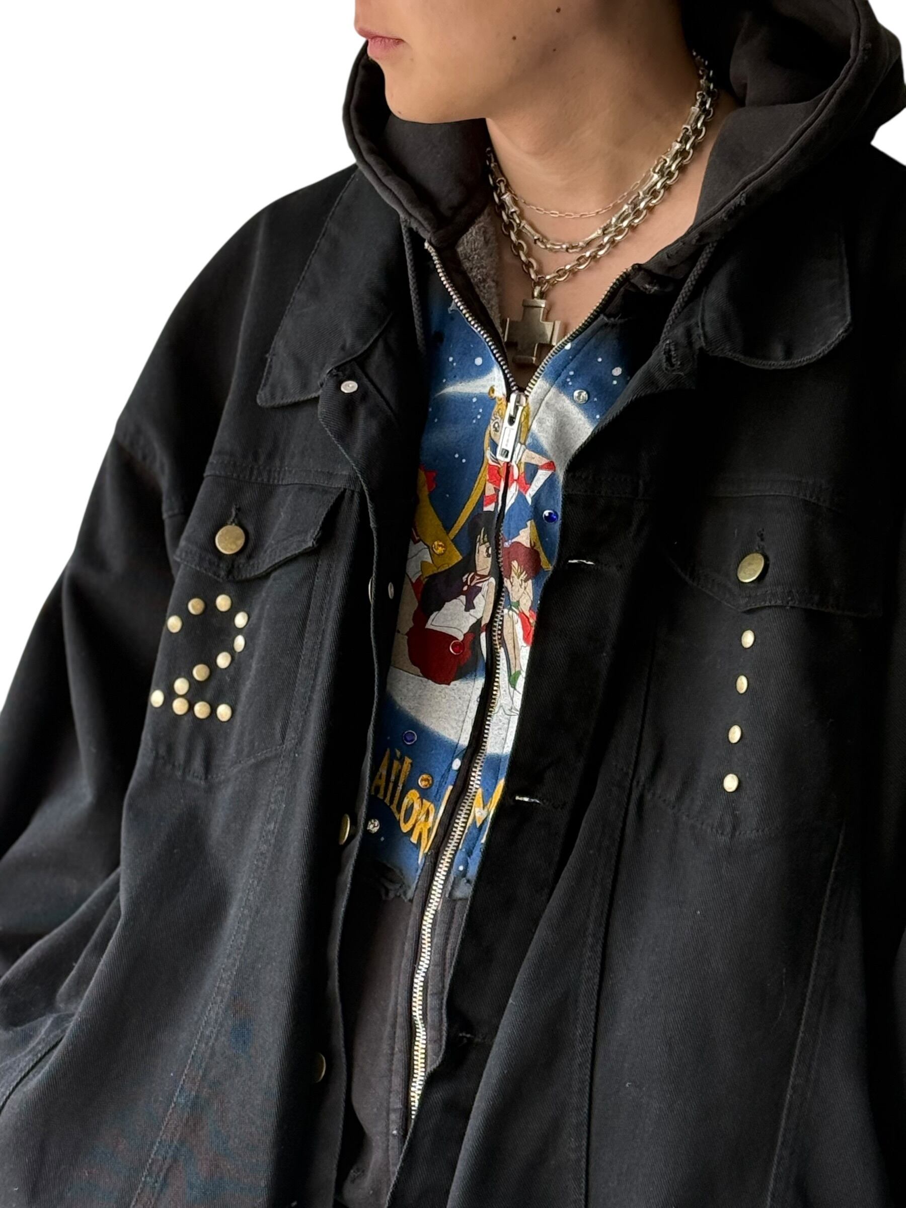 【KING SIZE】 5XL Over size studs design Black denim tracker jacket