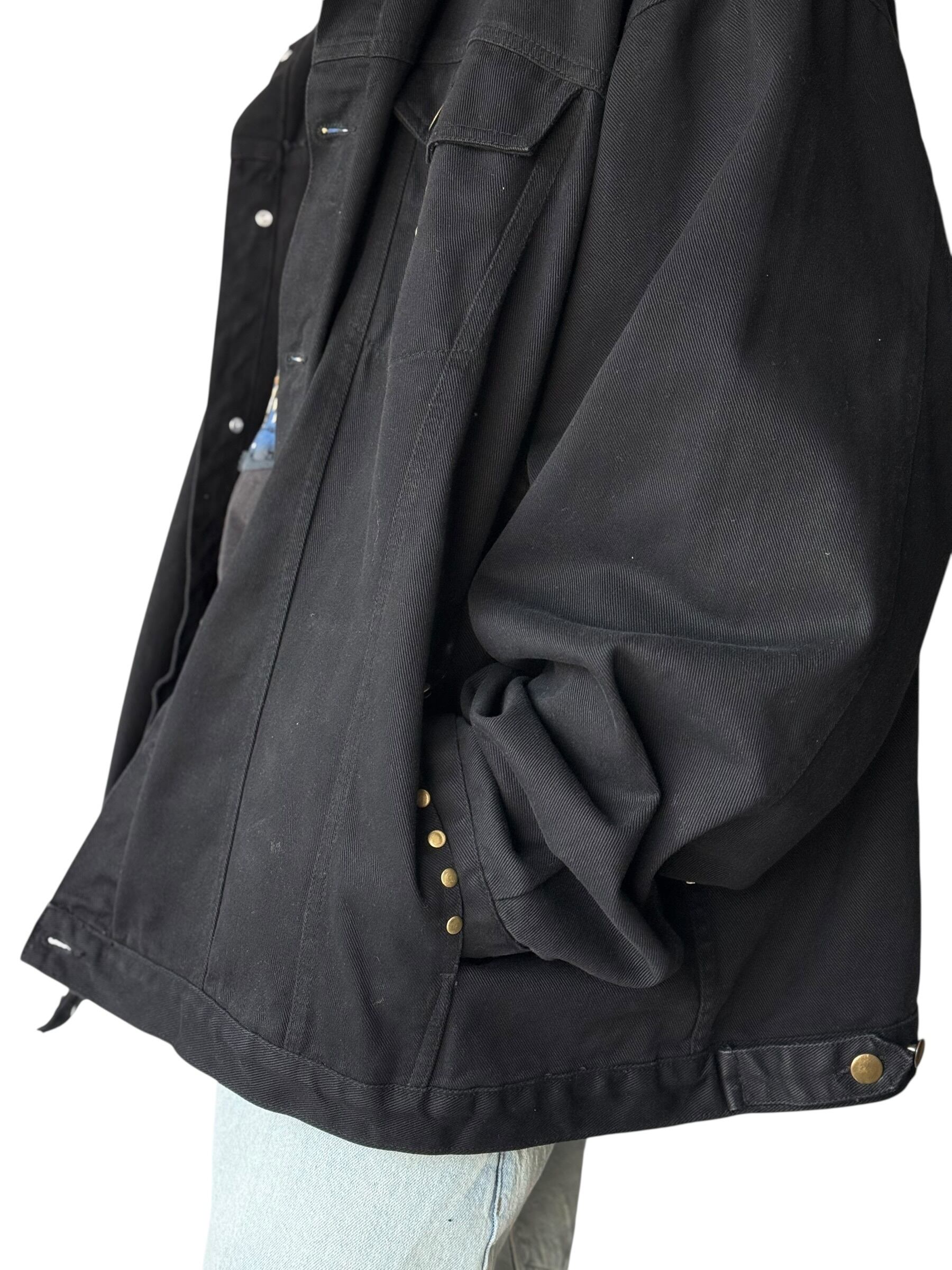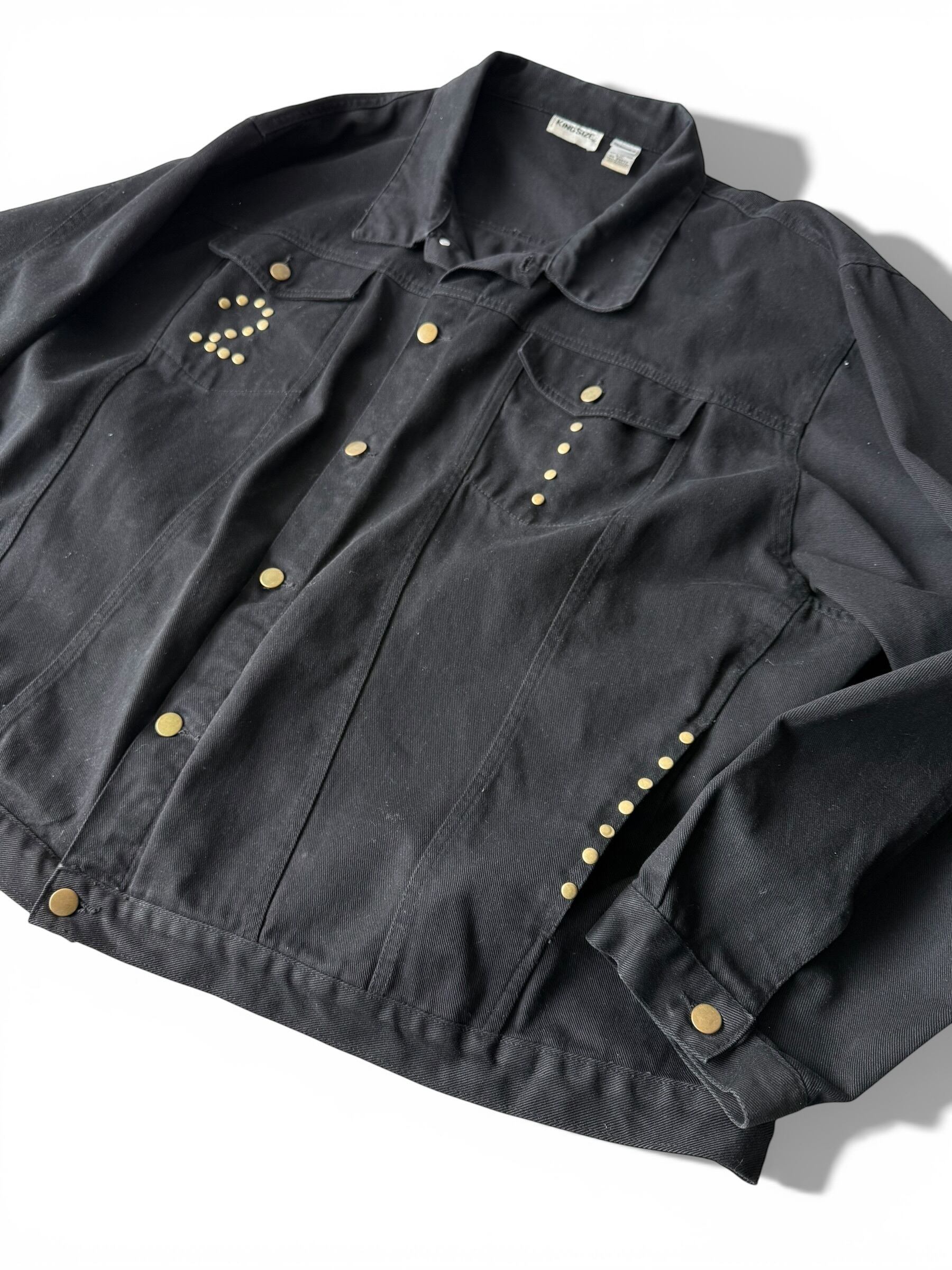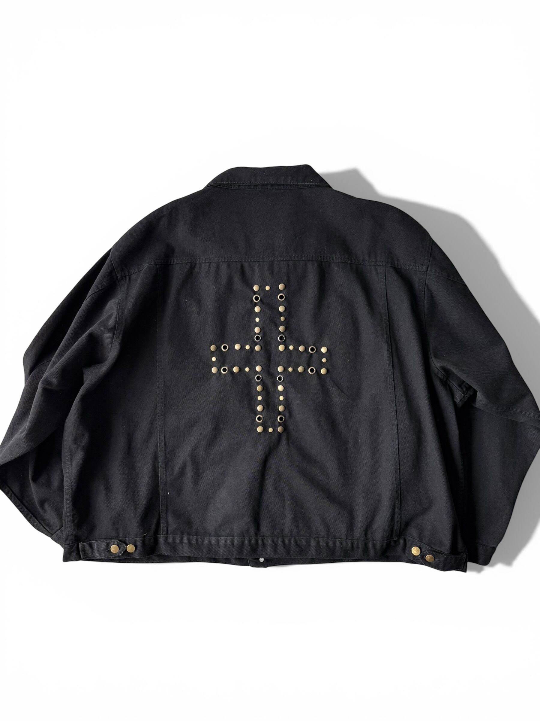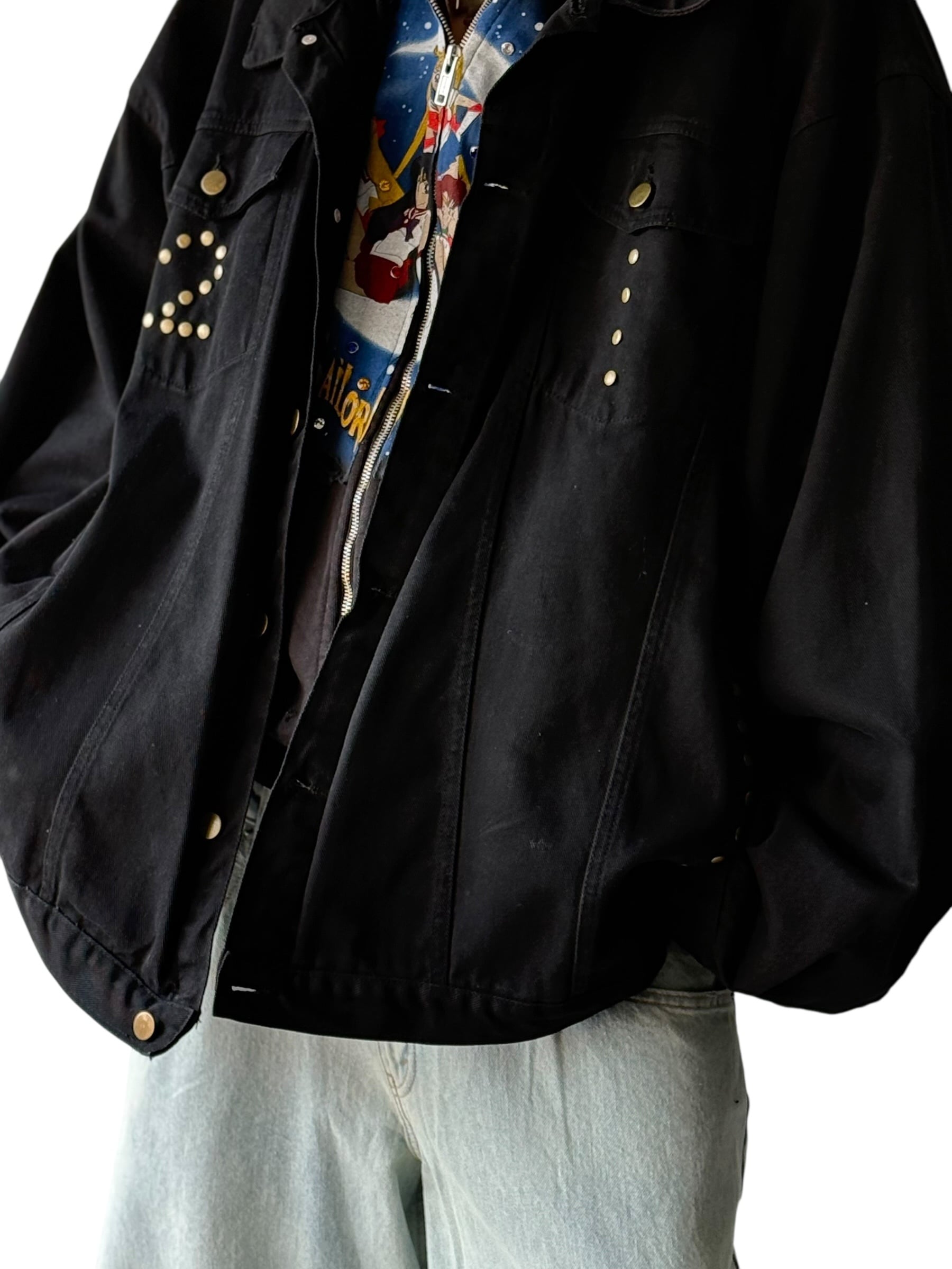 【KING SIZE】 5XL Over size studs design Black denim tracker jacket