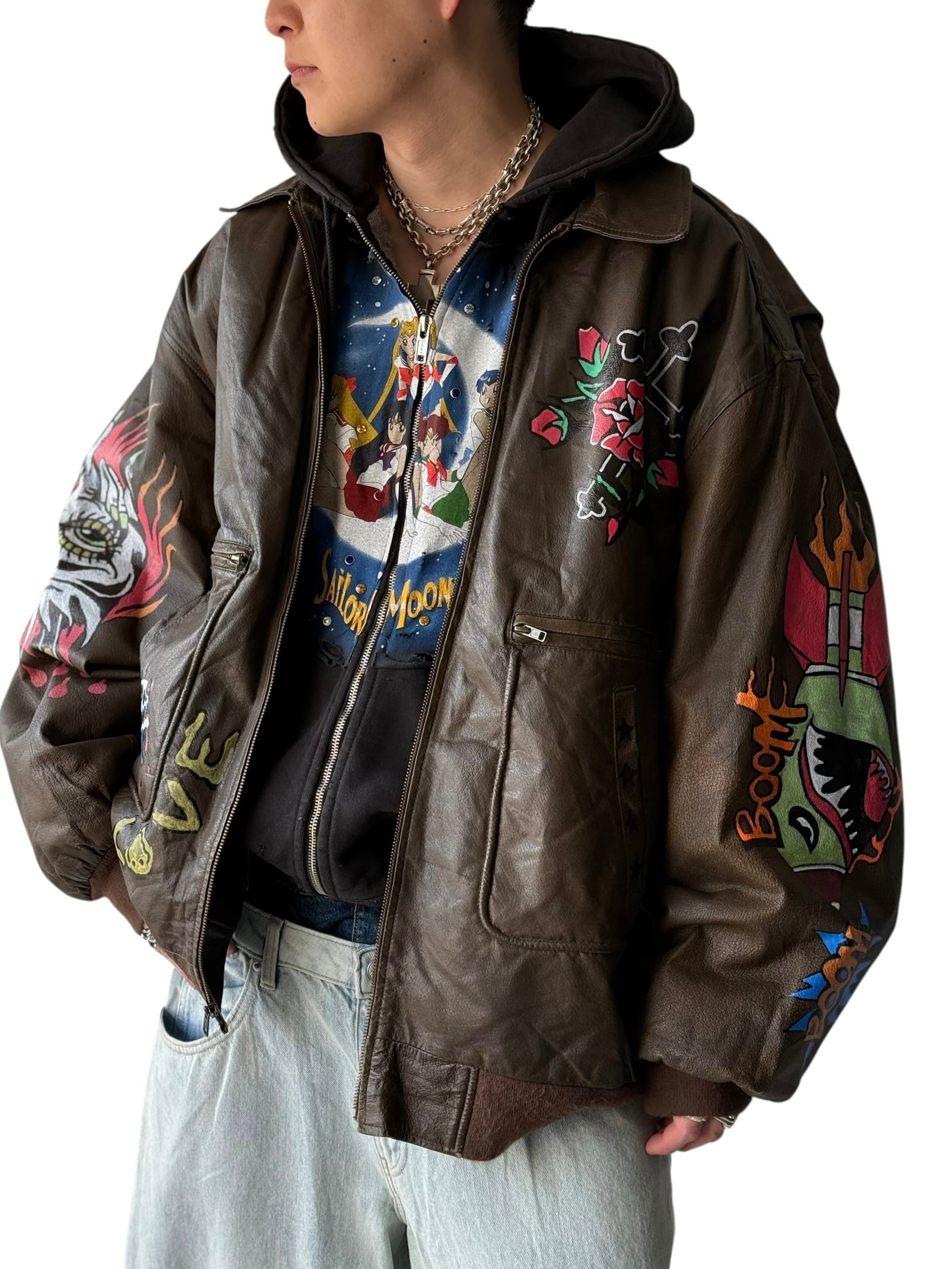 hand painting design Oversize A-2 type leather