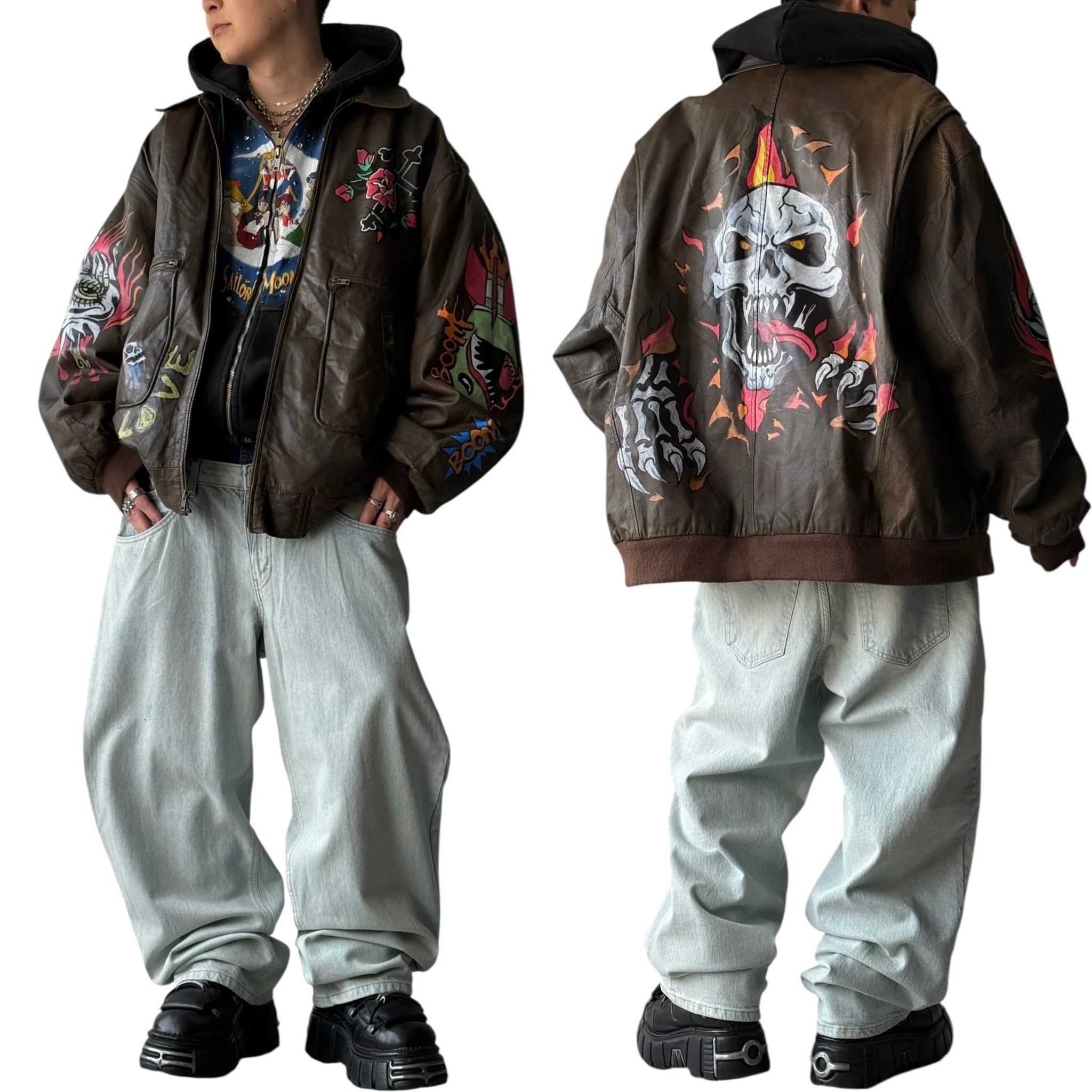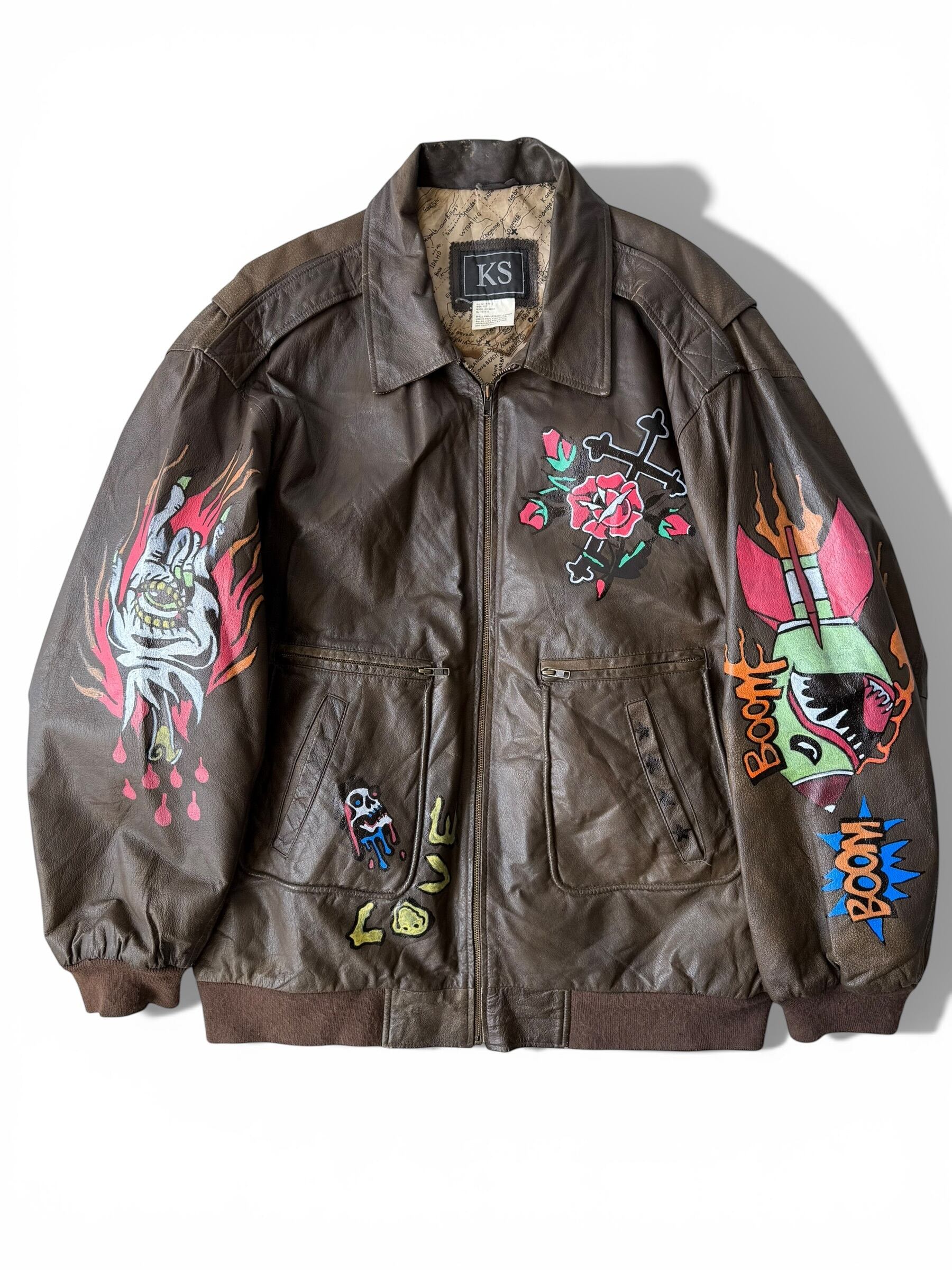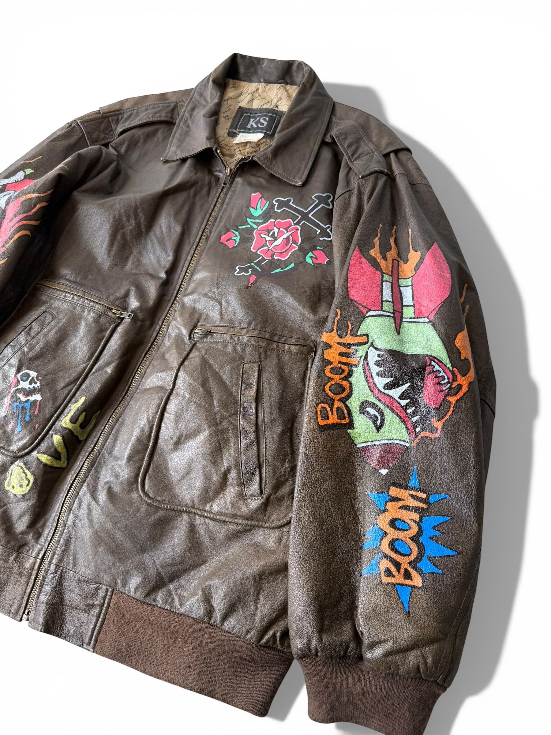 【KINGSIZE】 hand painting design Oversize A-2 type leather jacket