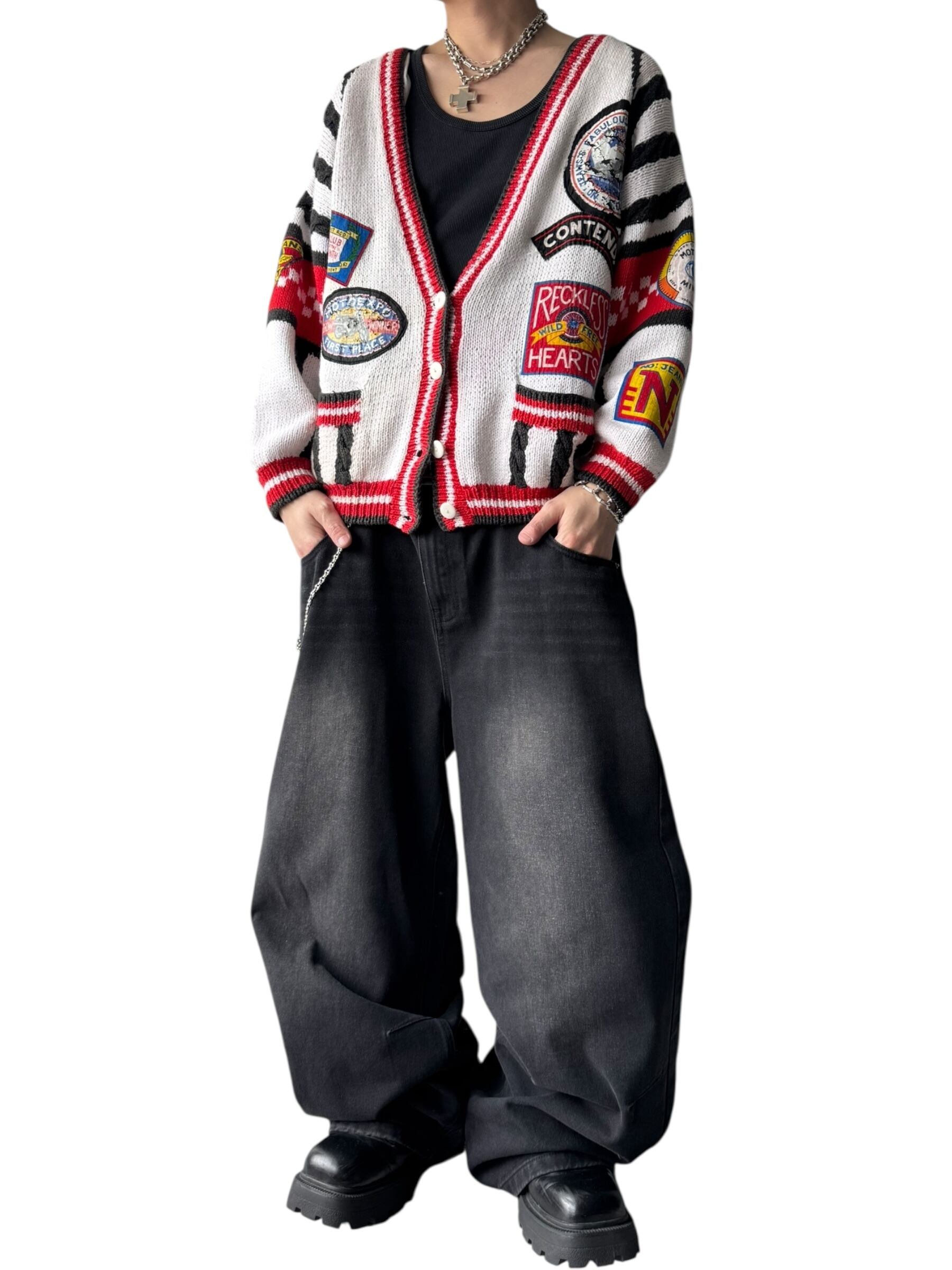 ♾NO! JEANS♾ Patch design cotton knit cardigan