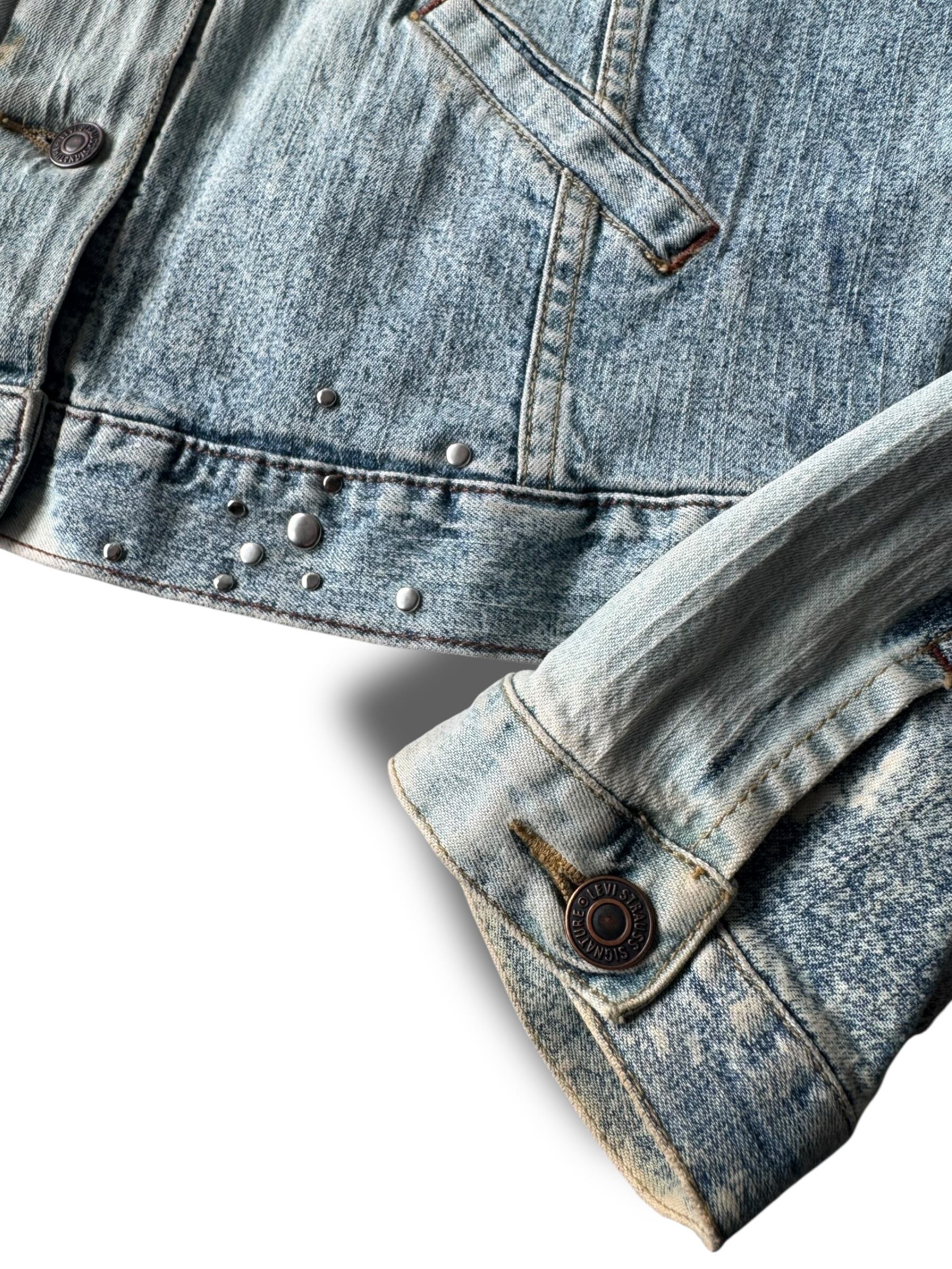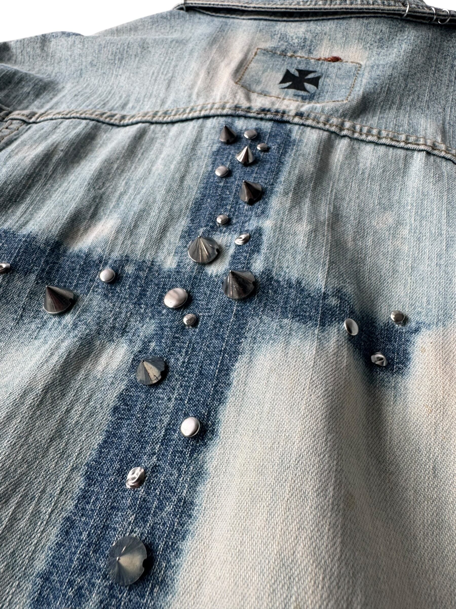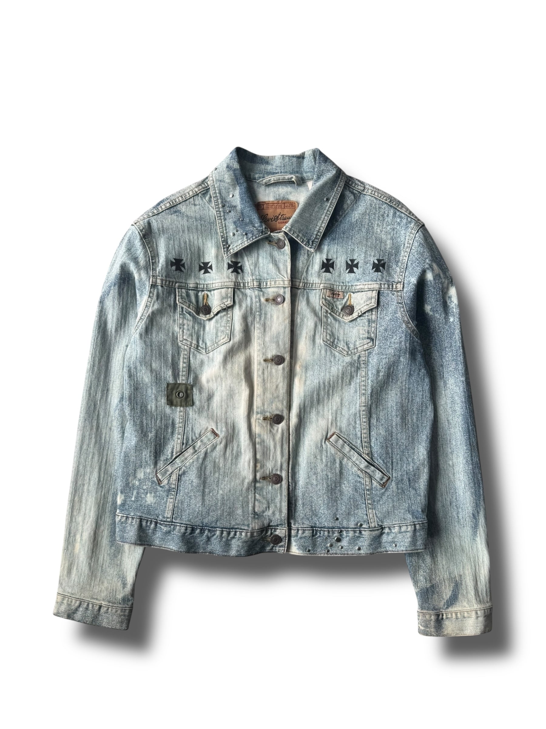 ♾LEVI’S♾ Studded cross design denim jacket size L