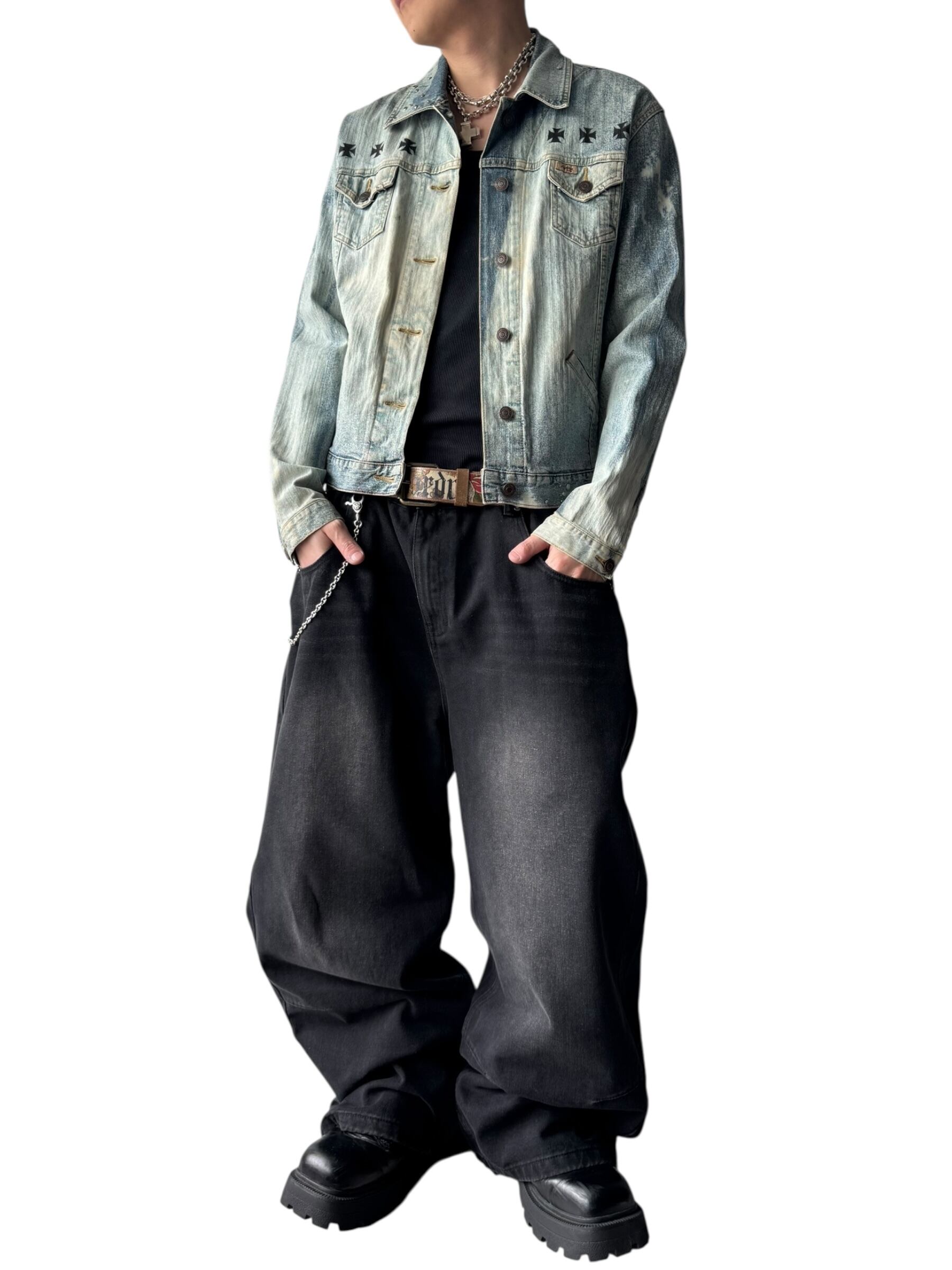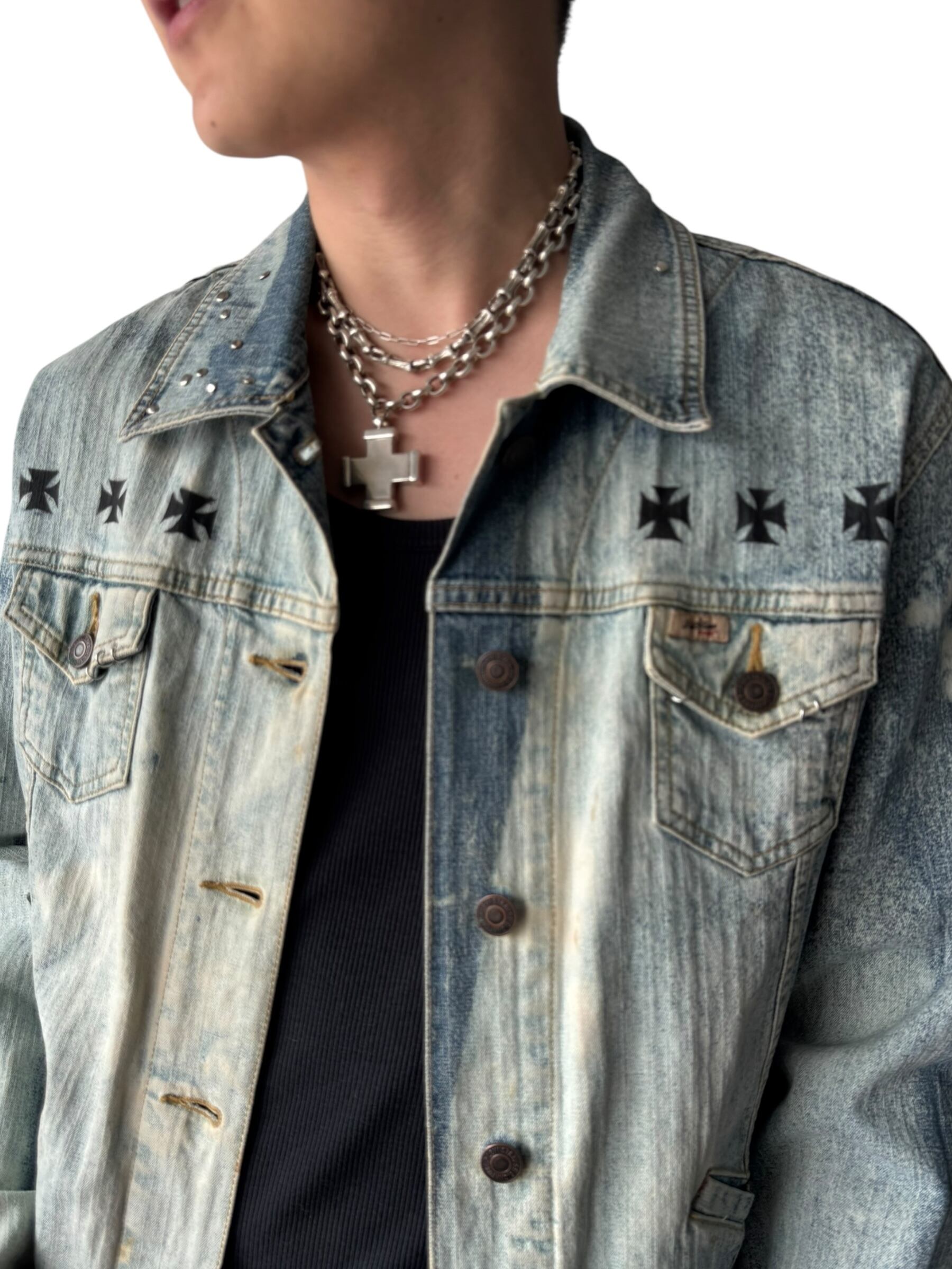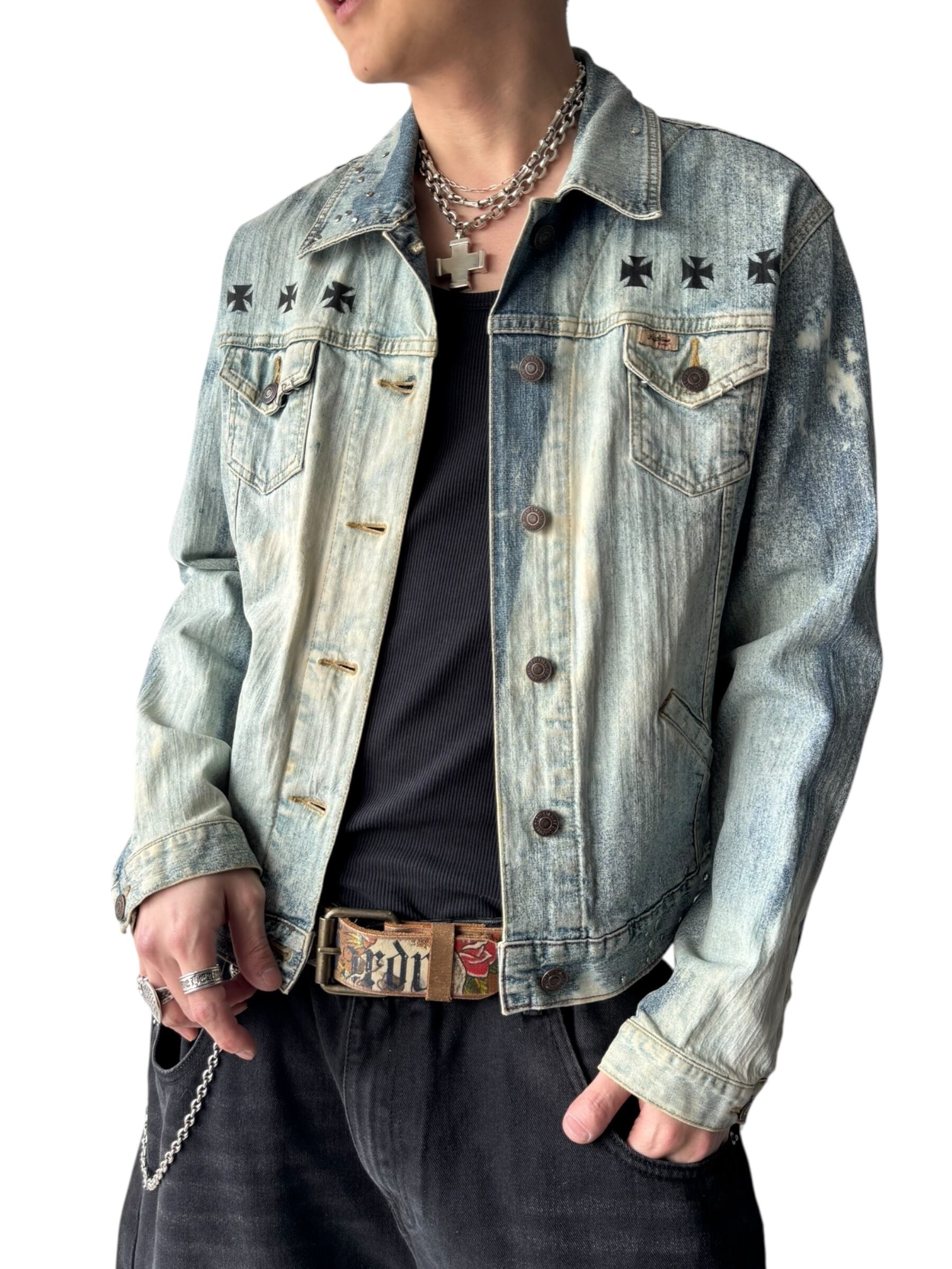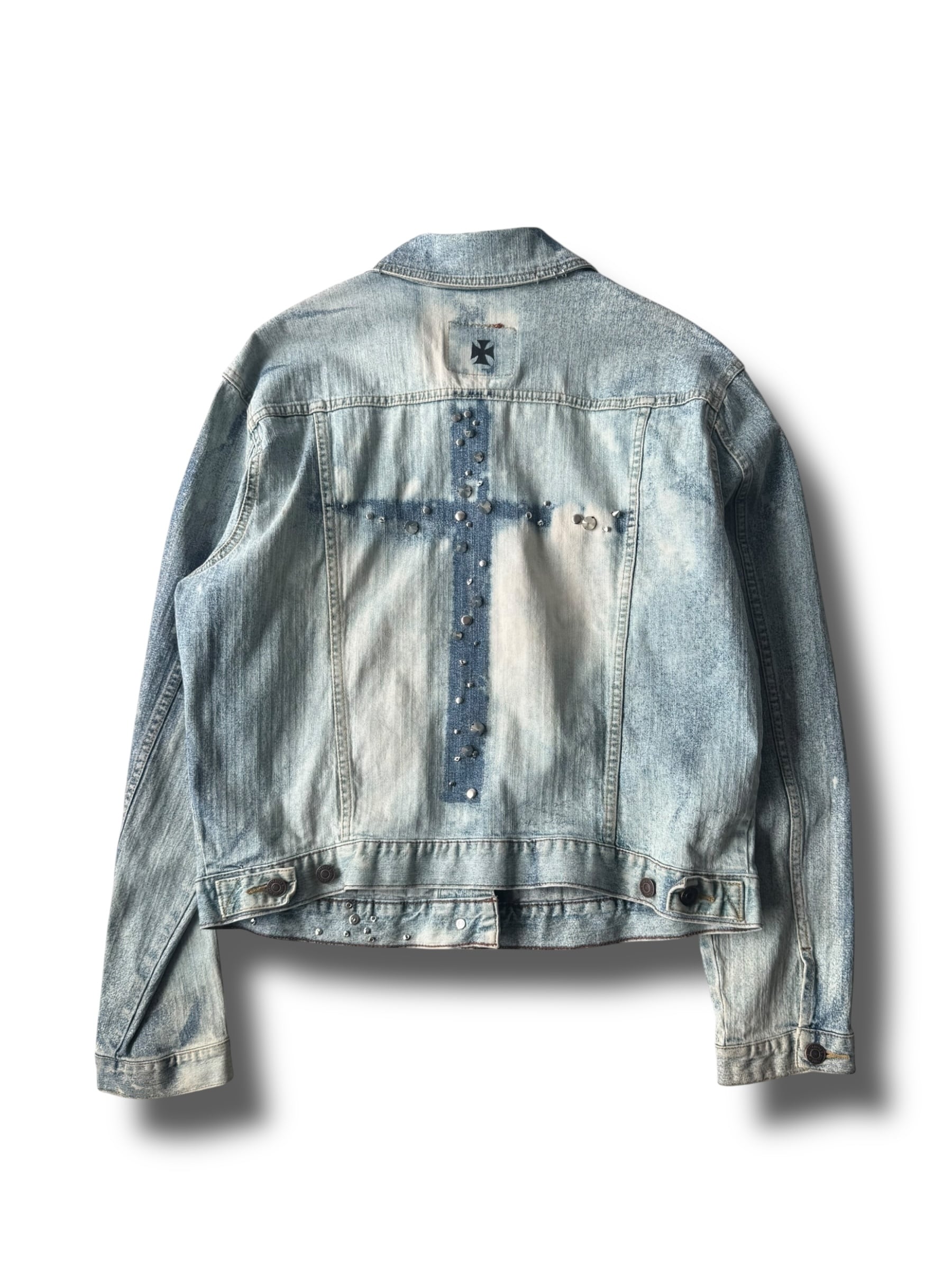 ♾LEVI’S♾ Studded cross design denim jacket size L