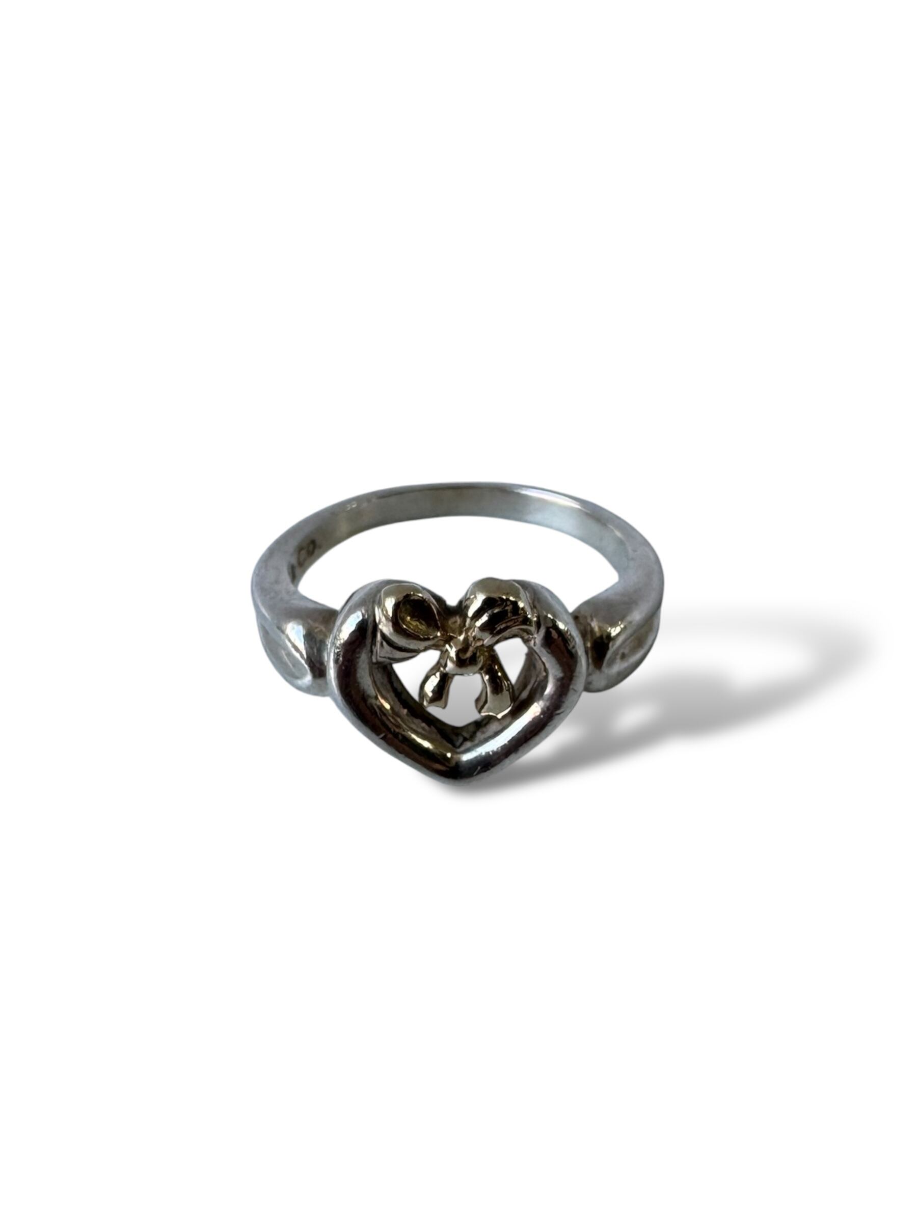 ♾vtg Tiffany&Co.♾ 1991 heart × ribbon motif gold combination design ring size12号 / sv925 / 750