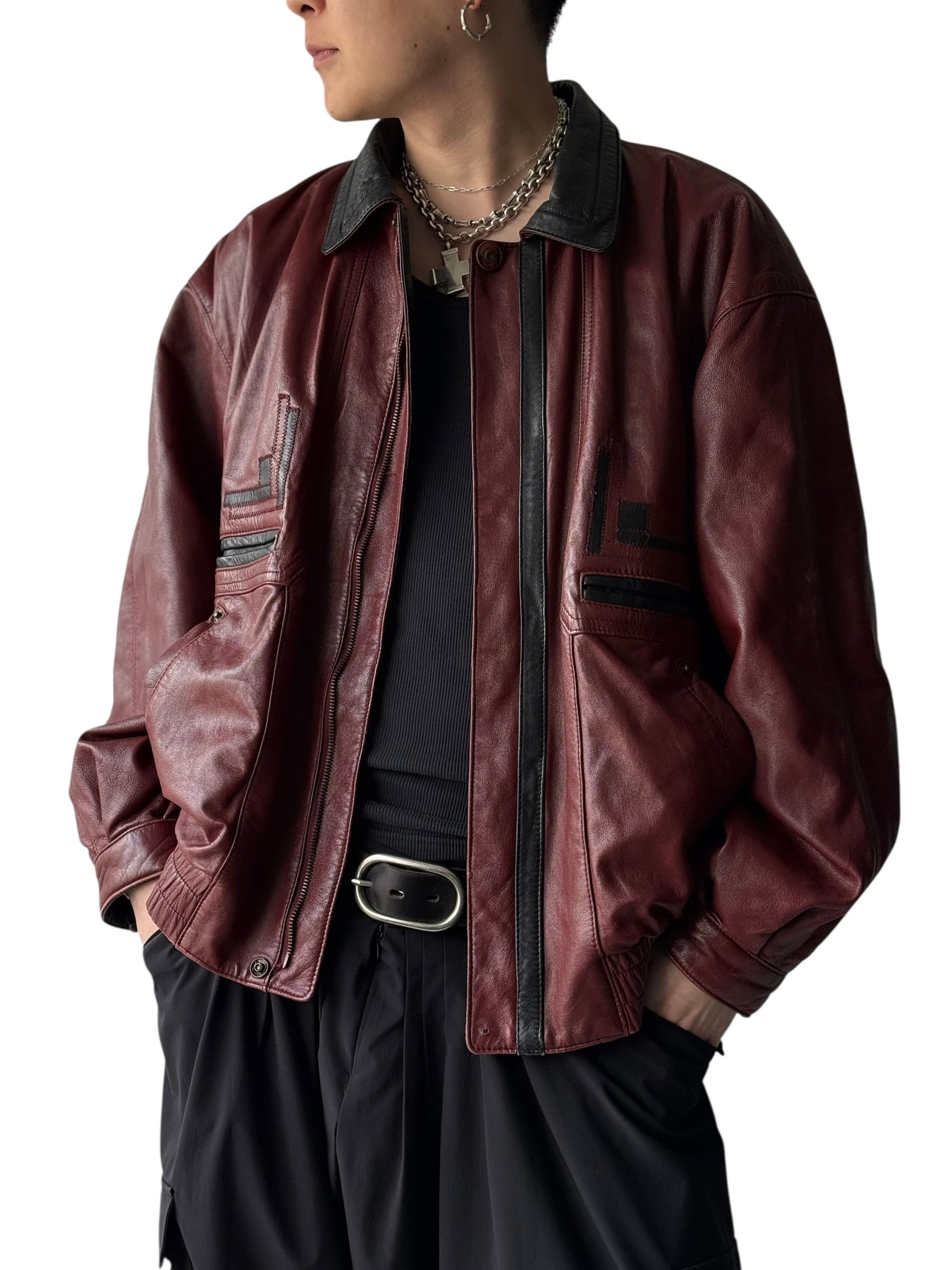 【VIA NUOVA PELLE】"Euro vintage" Color-switched Lambl Leather blouson