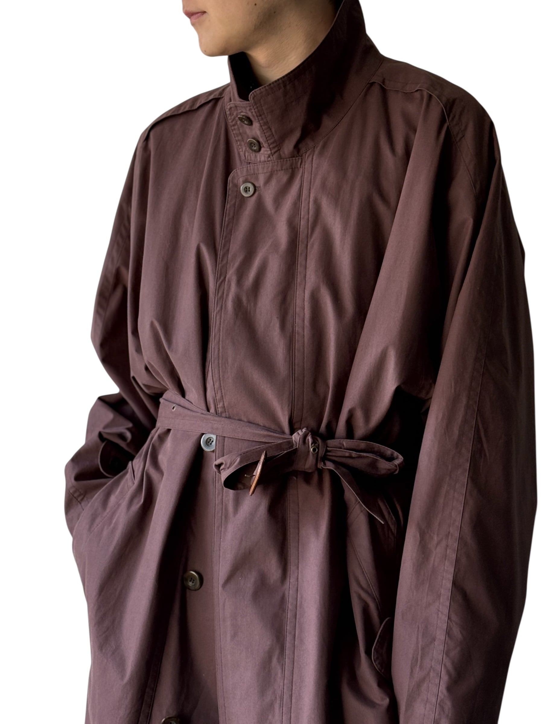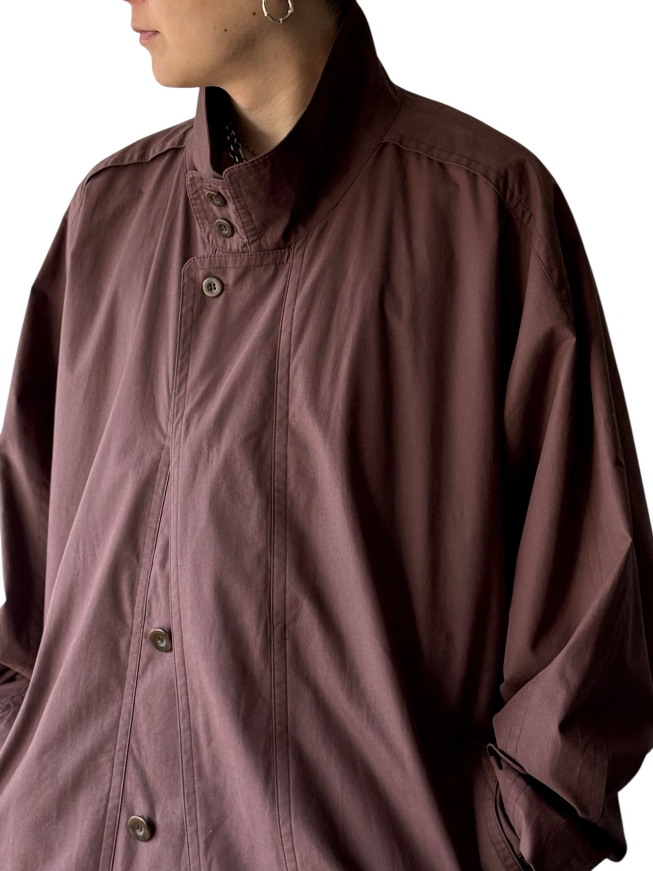 よくあるステンカラーコートでらなく、スタンドネックのディテールまで拘り感じれるオーバーサイズコート。