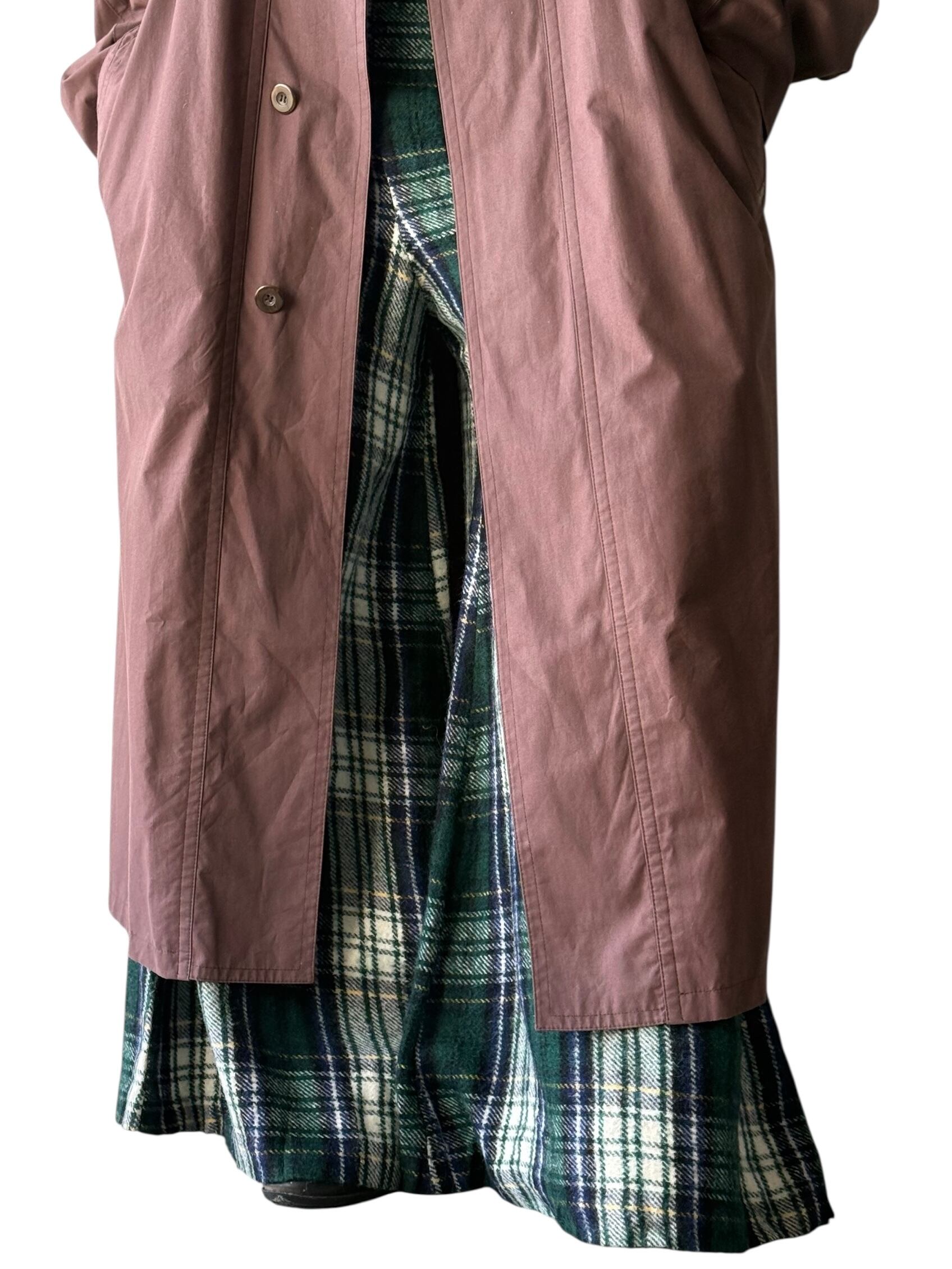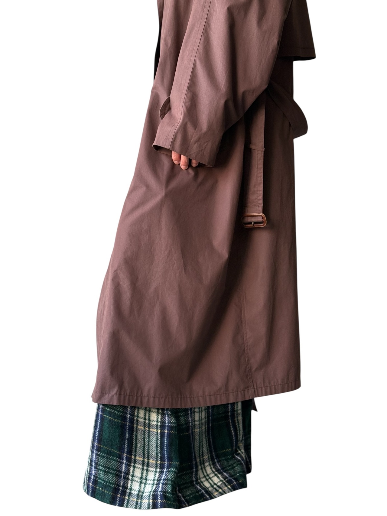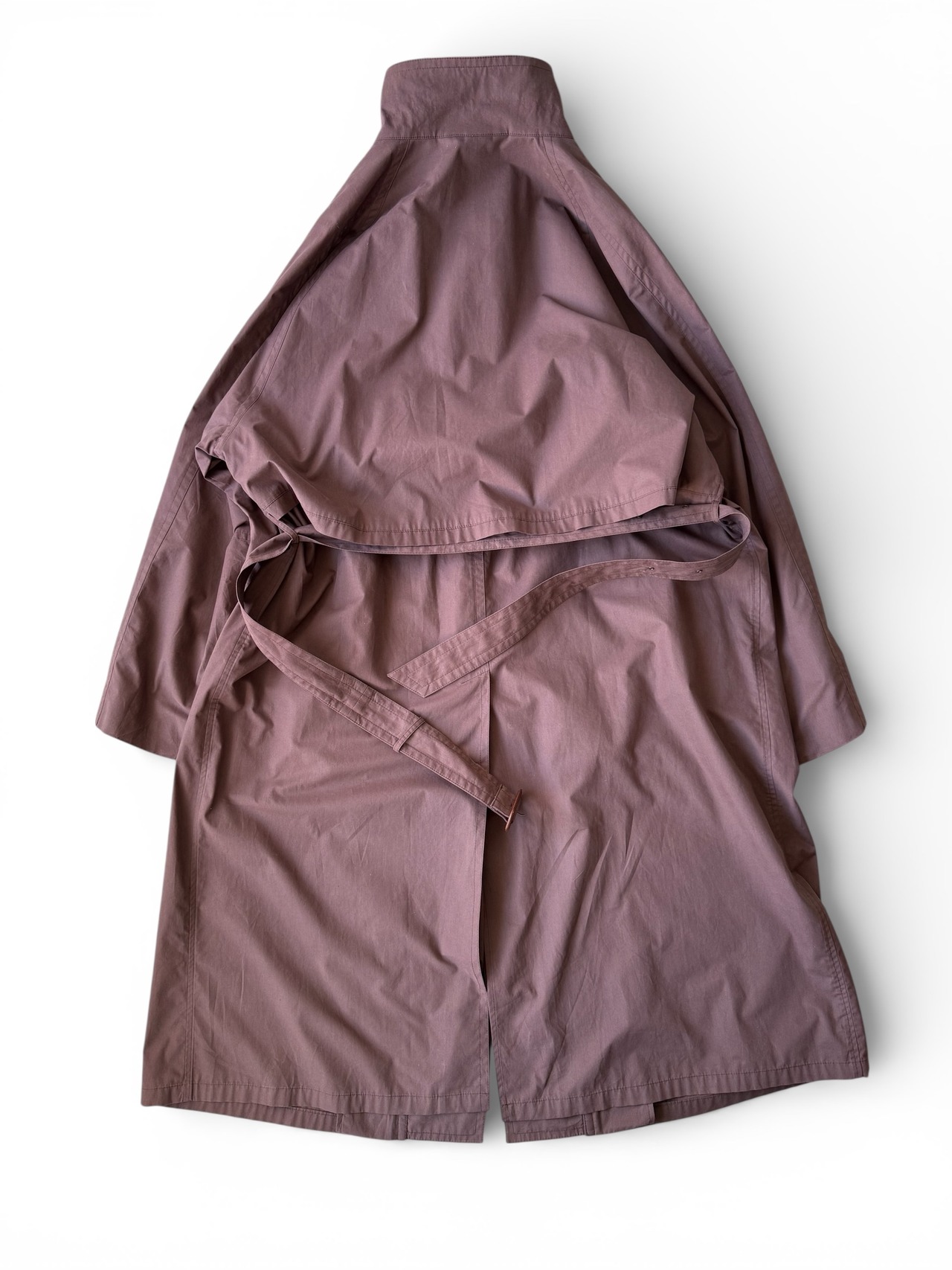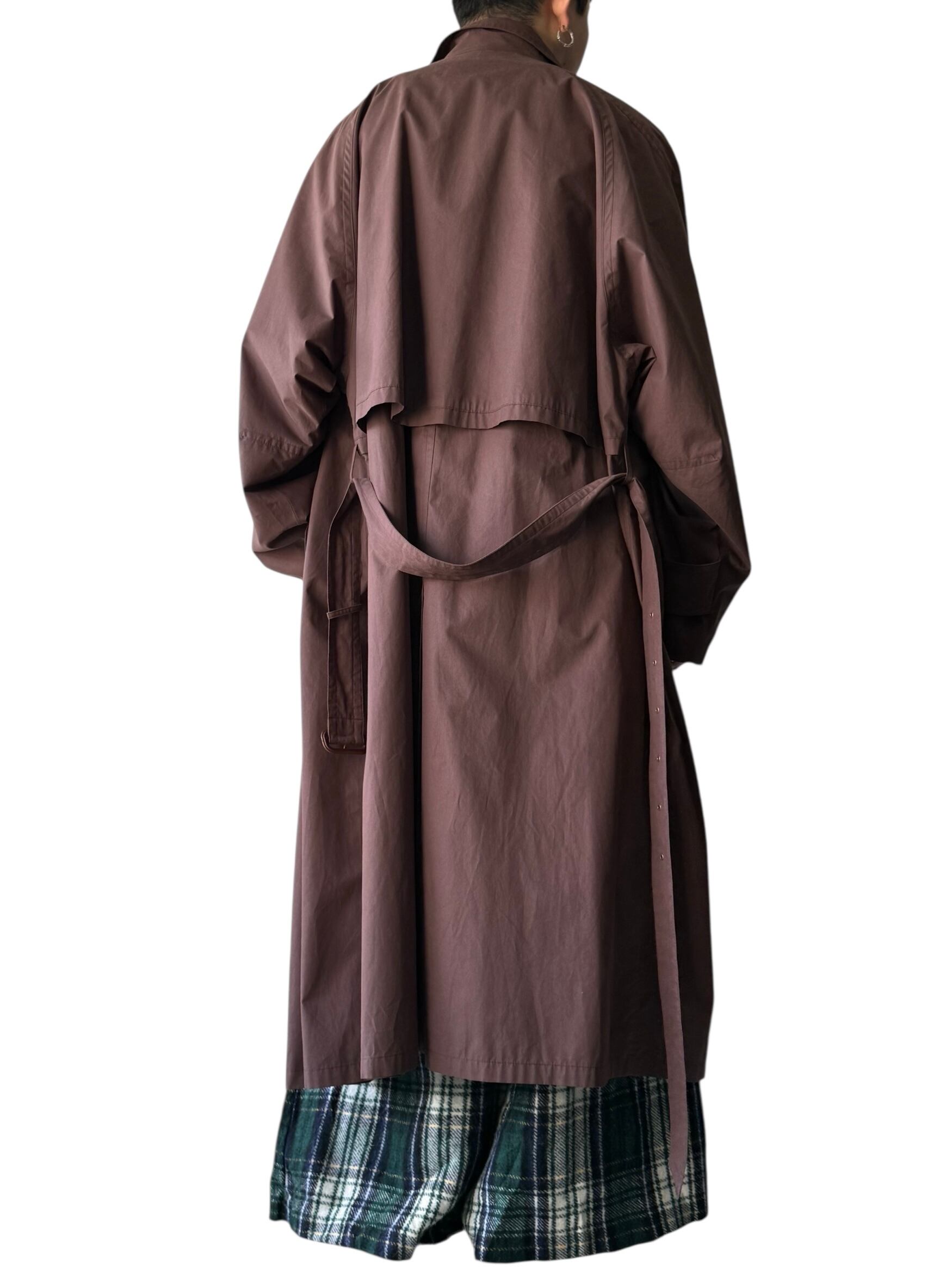 滑らかなコットンポリのオチ感たまらない生地にしっかりとしたロング丈、ベルト付き、裏地は背抜き仕様でほぼ一枚仕立てと既に軽やか✨