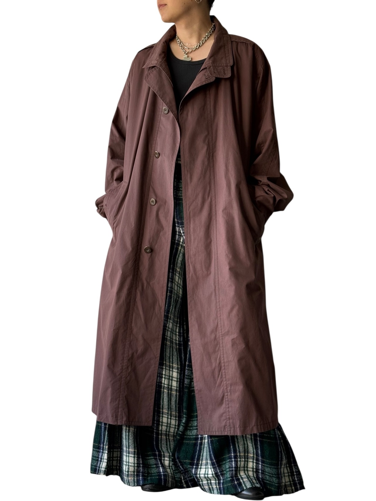 【"Euro vintage" 80〜90s bugatti】Wide Detail Oversized Long Spring Coat