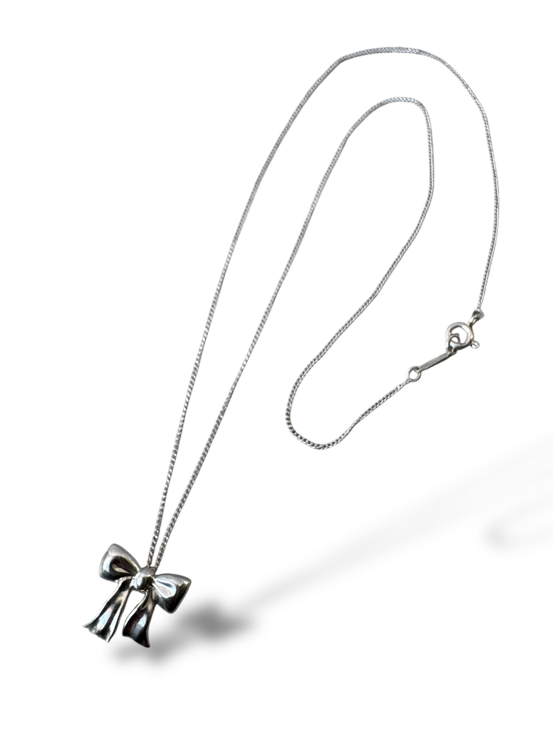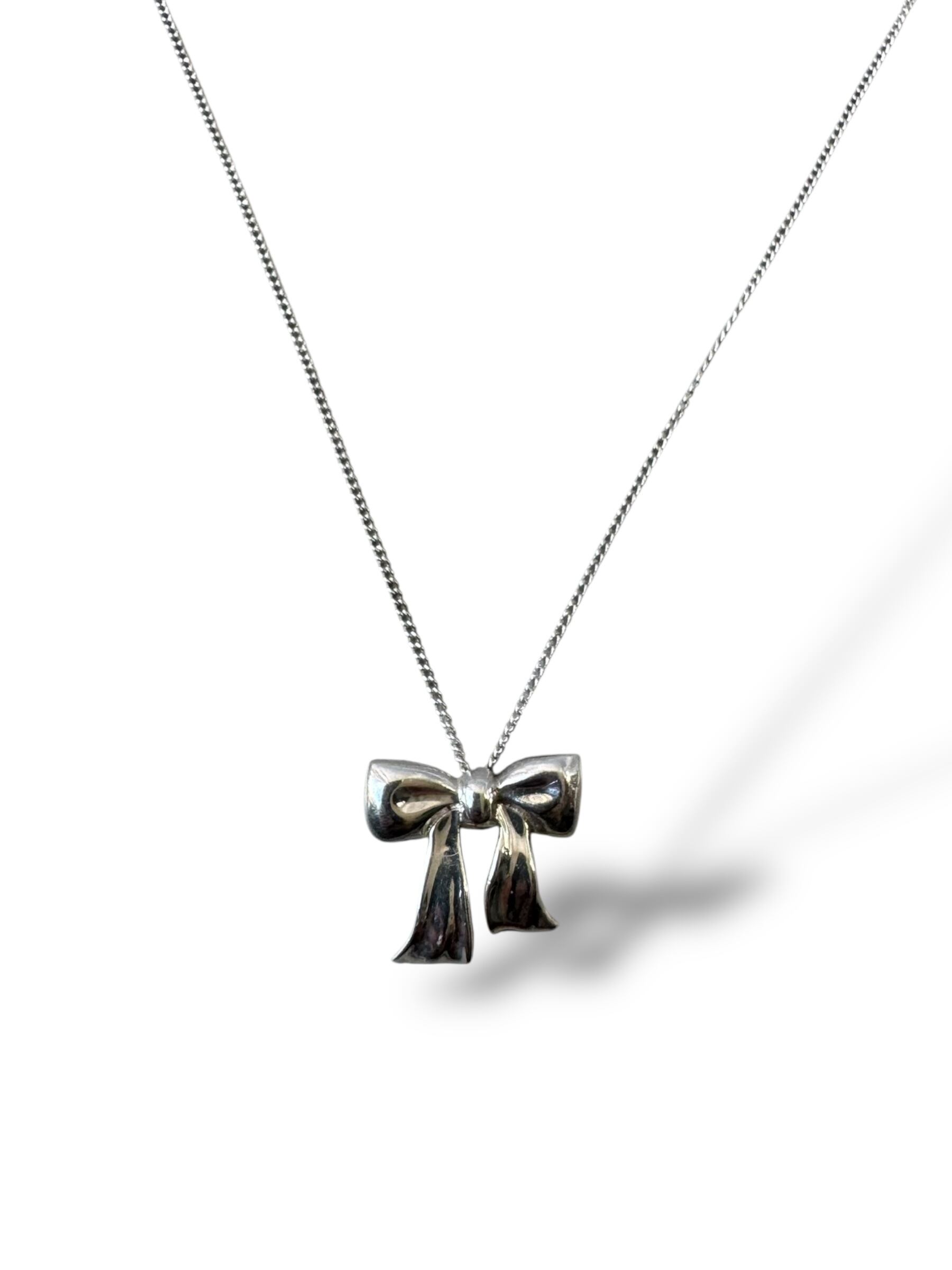 ♾️Tiffany&Co♾️ Vintage Silver Jewelry ribbon motif design necklace sv925