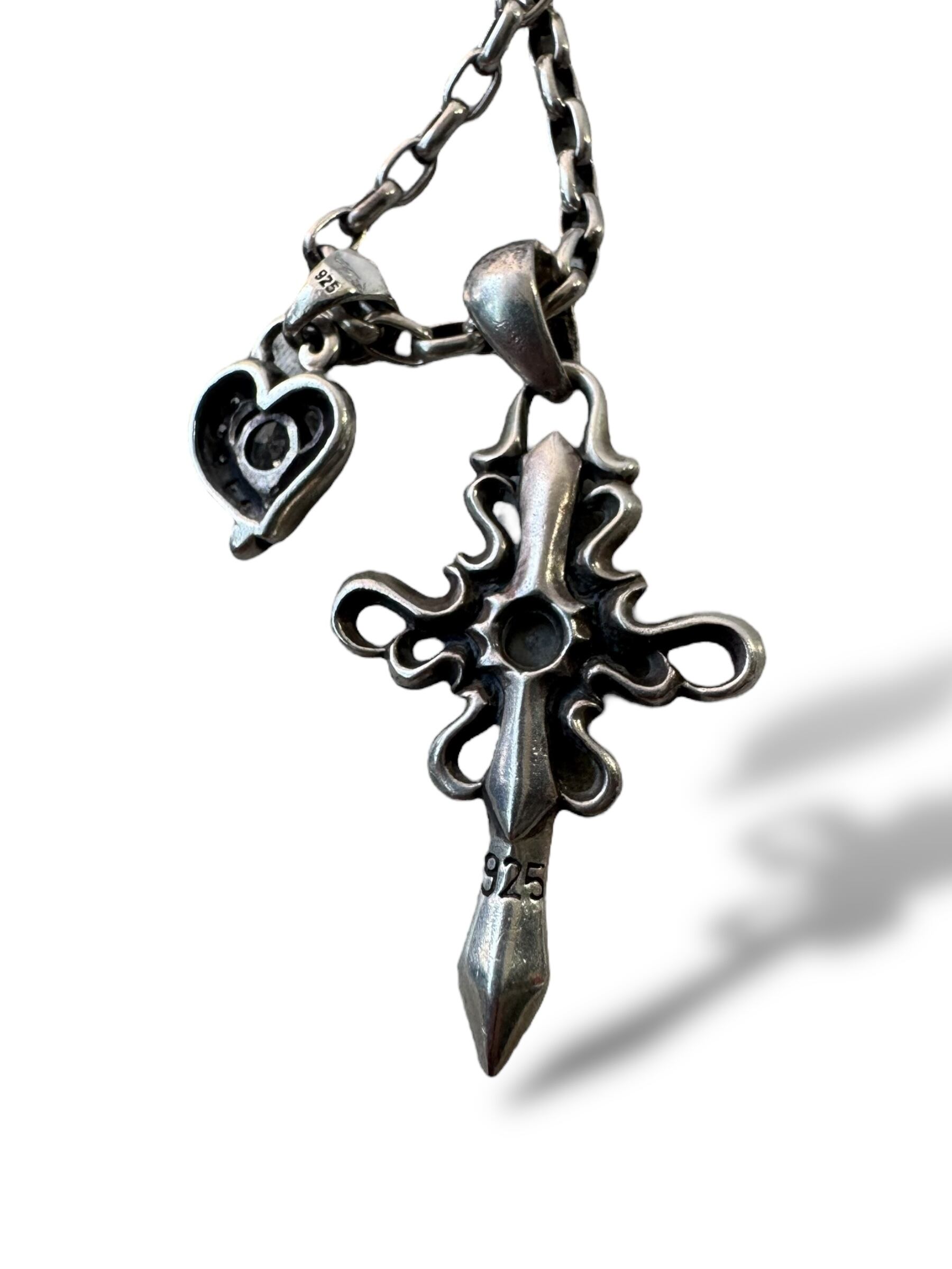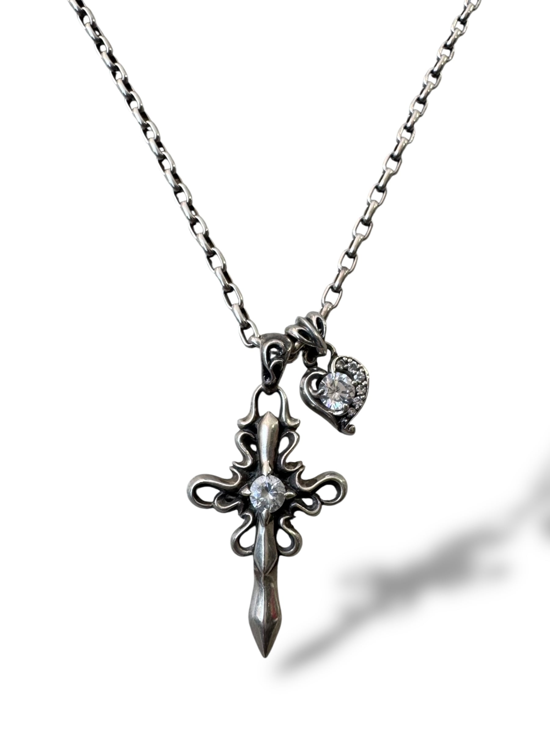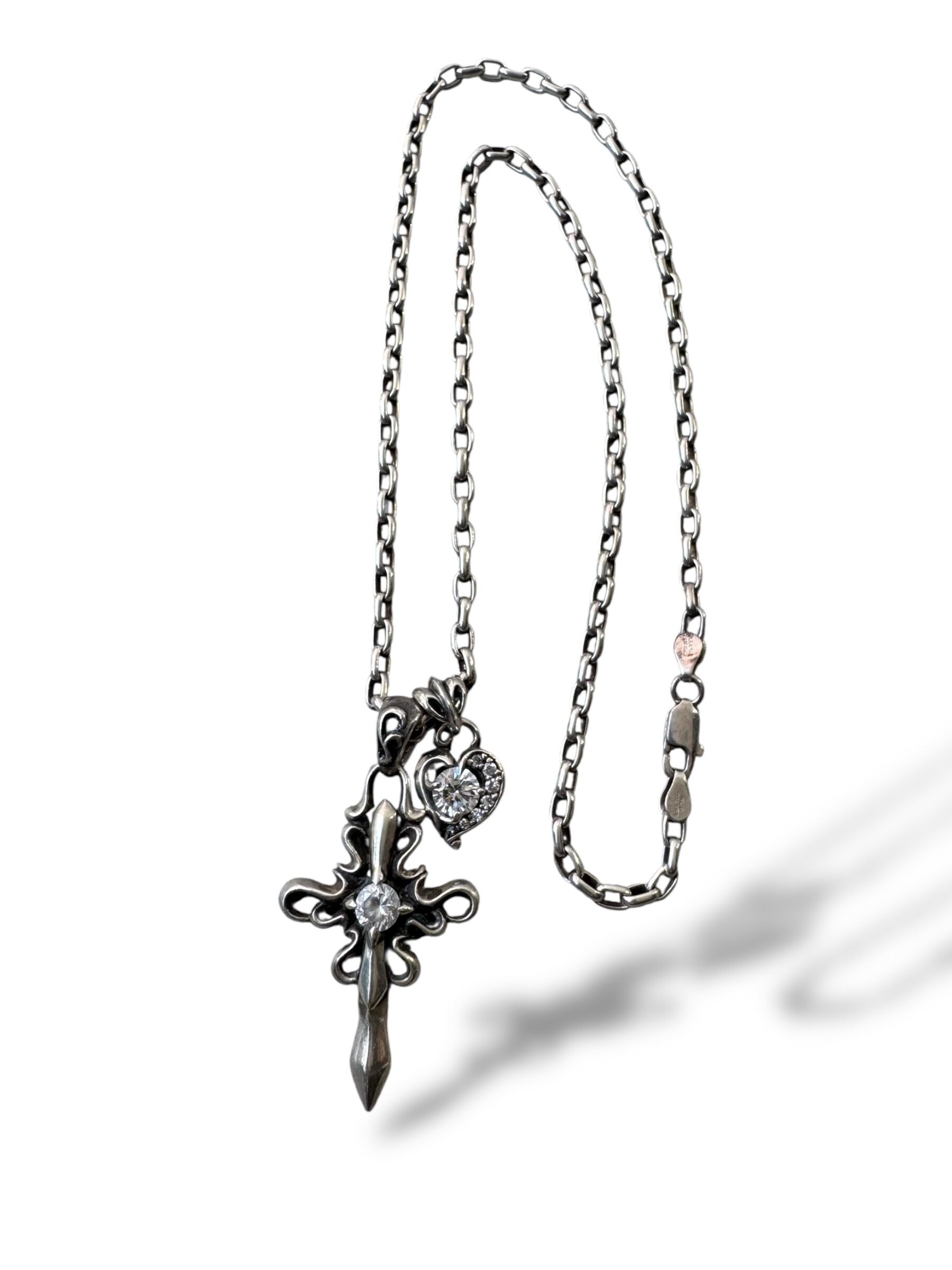 ‼️Special‼️♾vtg sterling collection♾ cross n' heart motif w top design necklace sv925