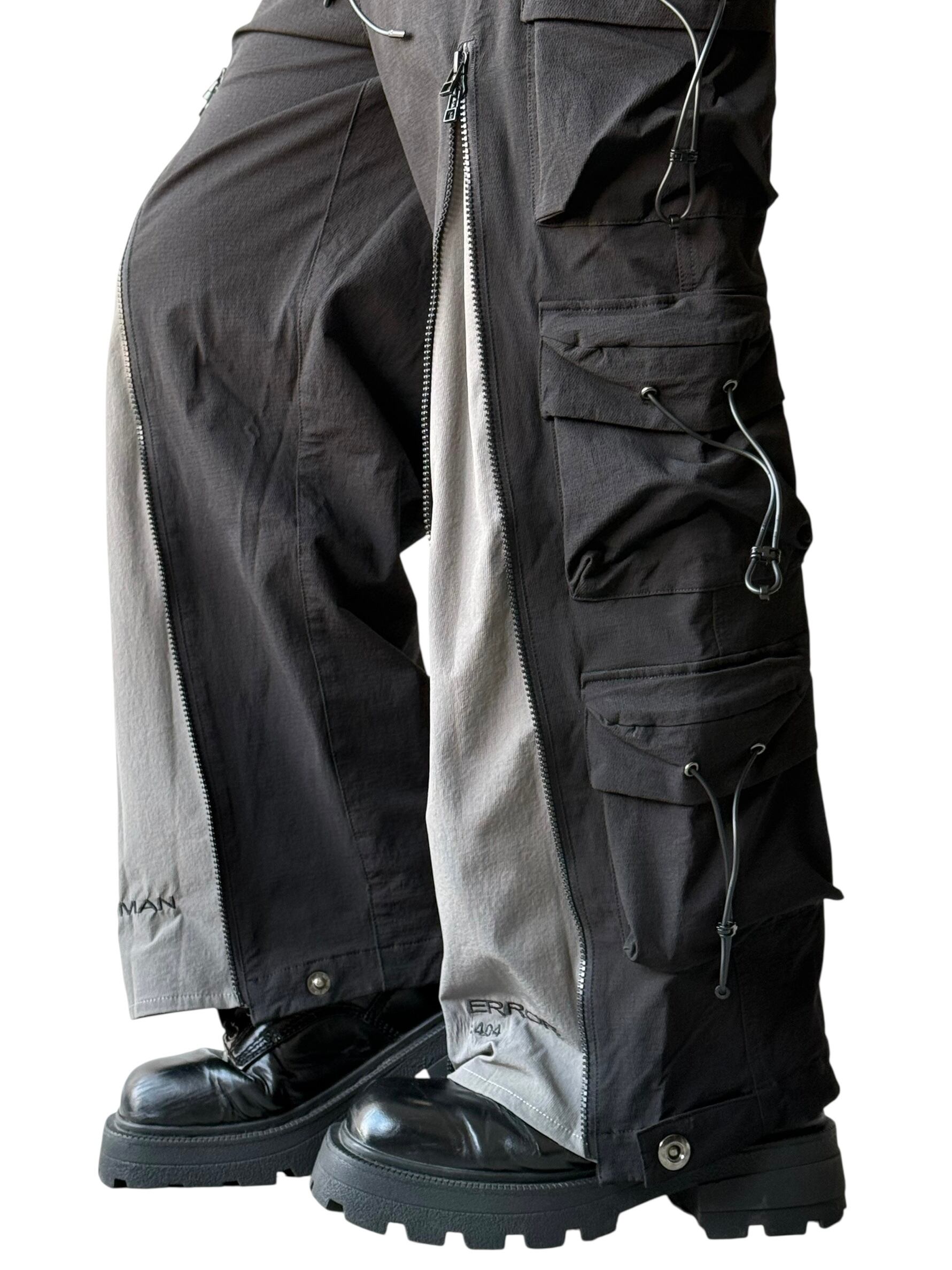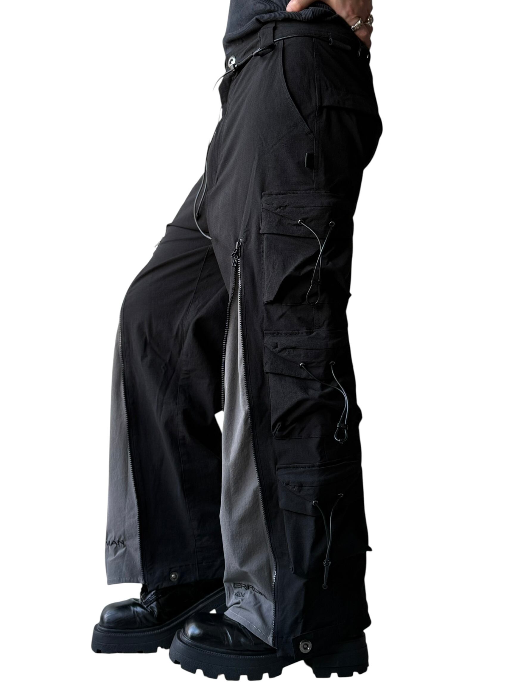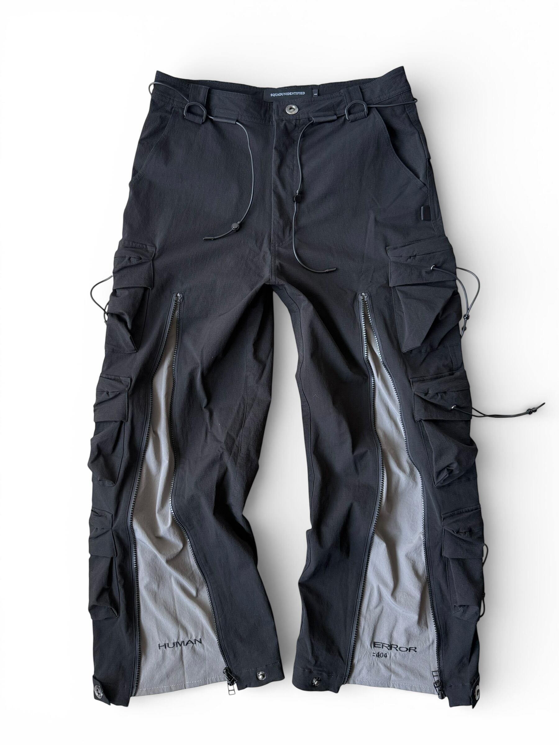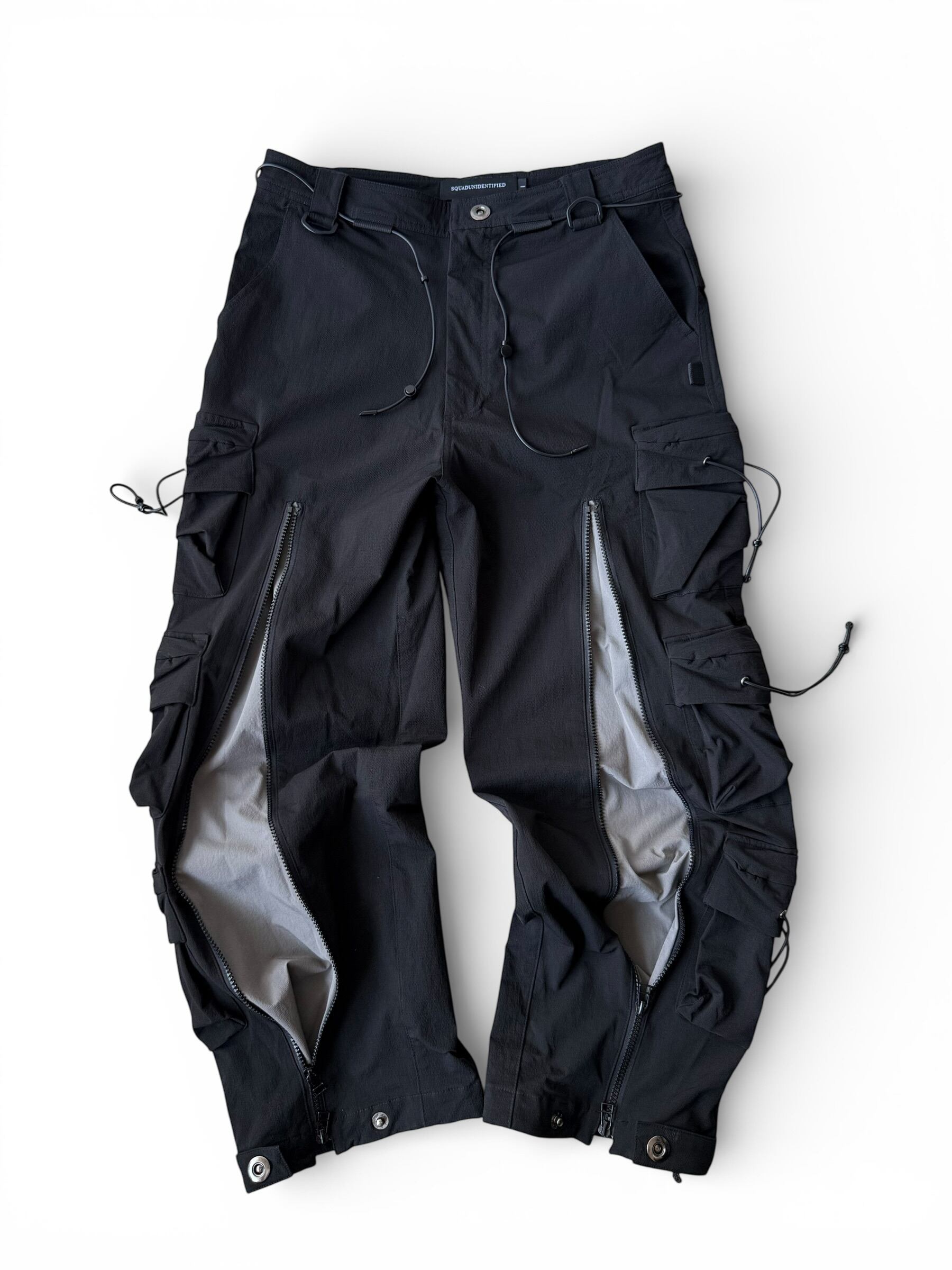【SQUADUNIDENTIFIED】3D Pattern Double Zipper Wide Leg Cargo Pants