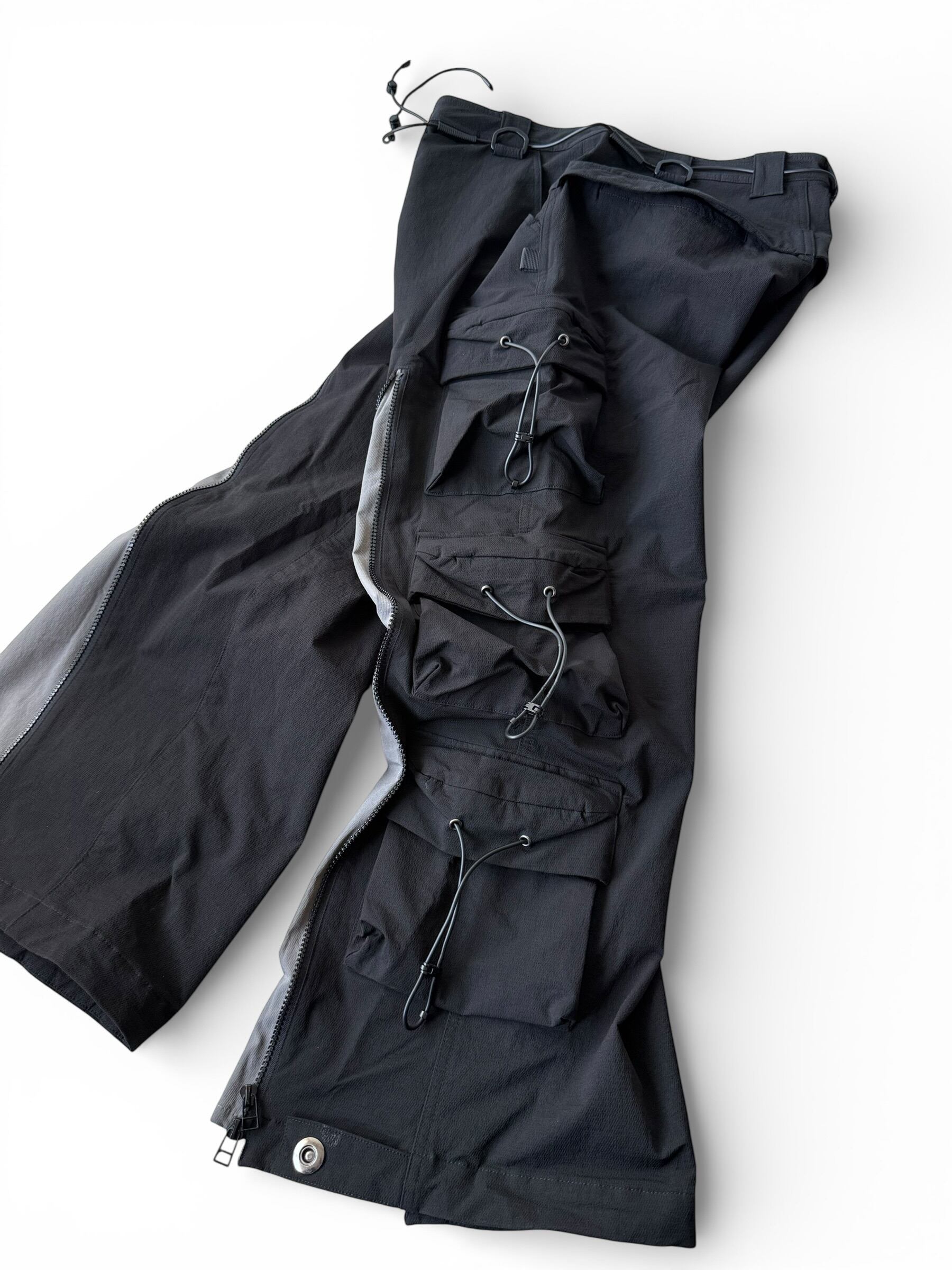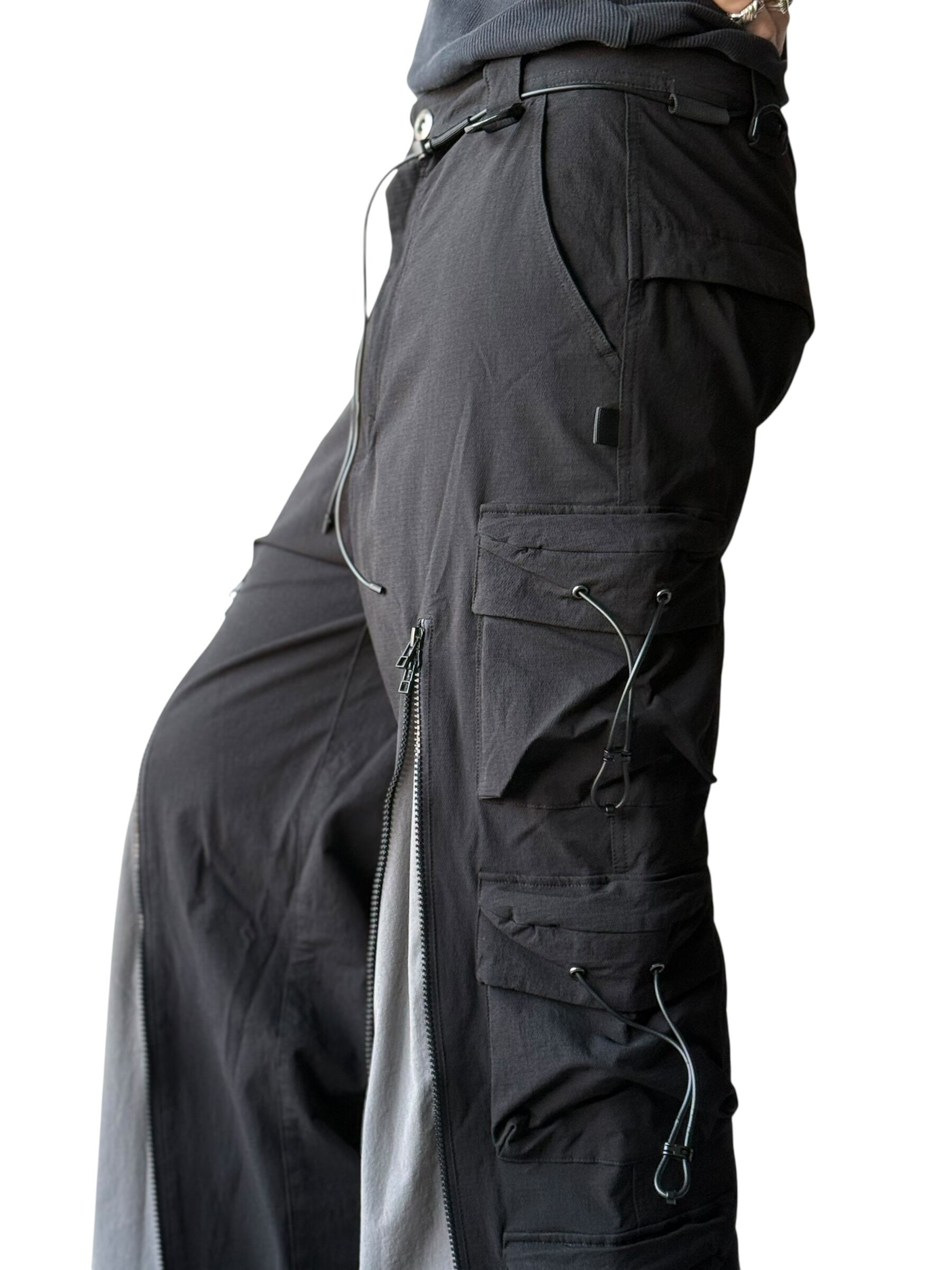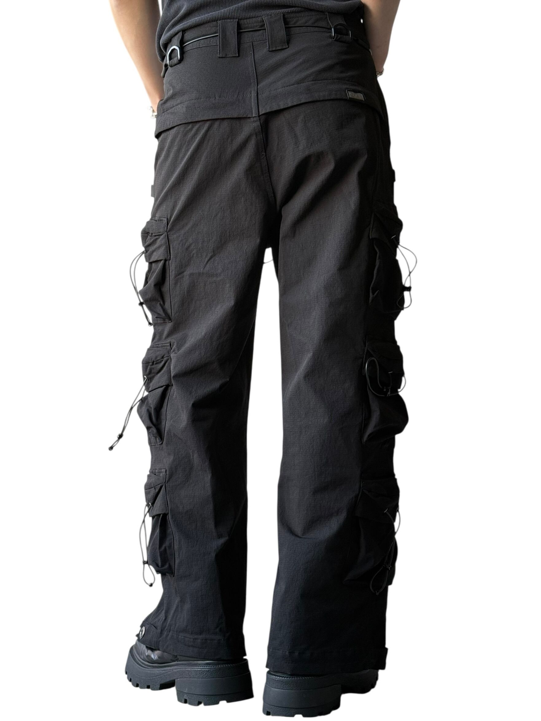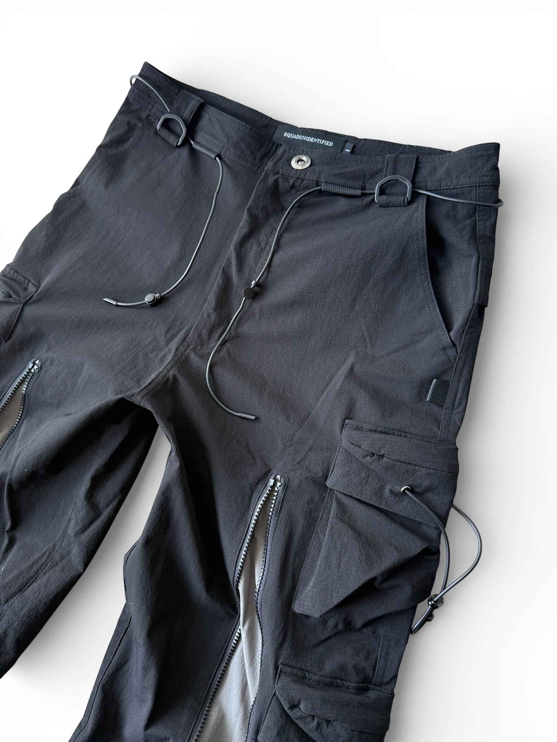 【SQUADUNIDENTIFIED】3D Pattern Double Zipper Wide Leg Cargo Pants