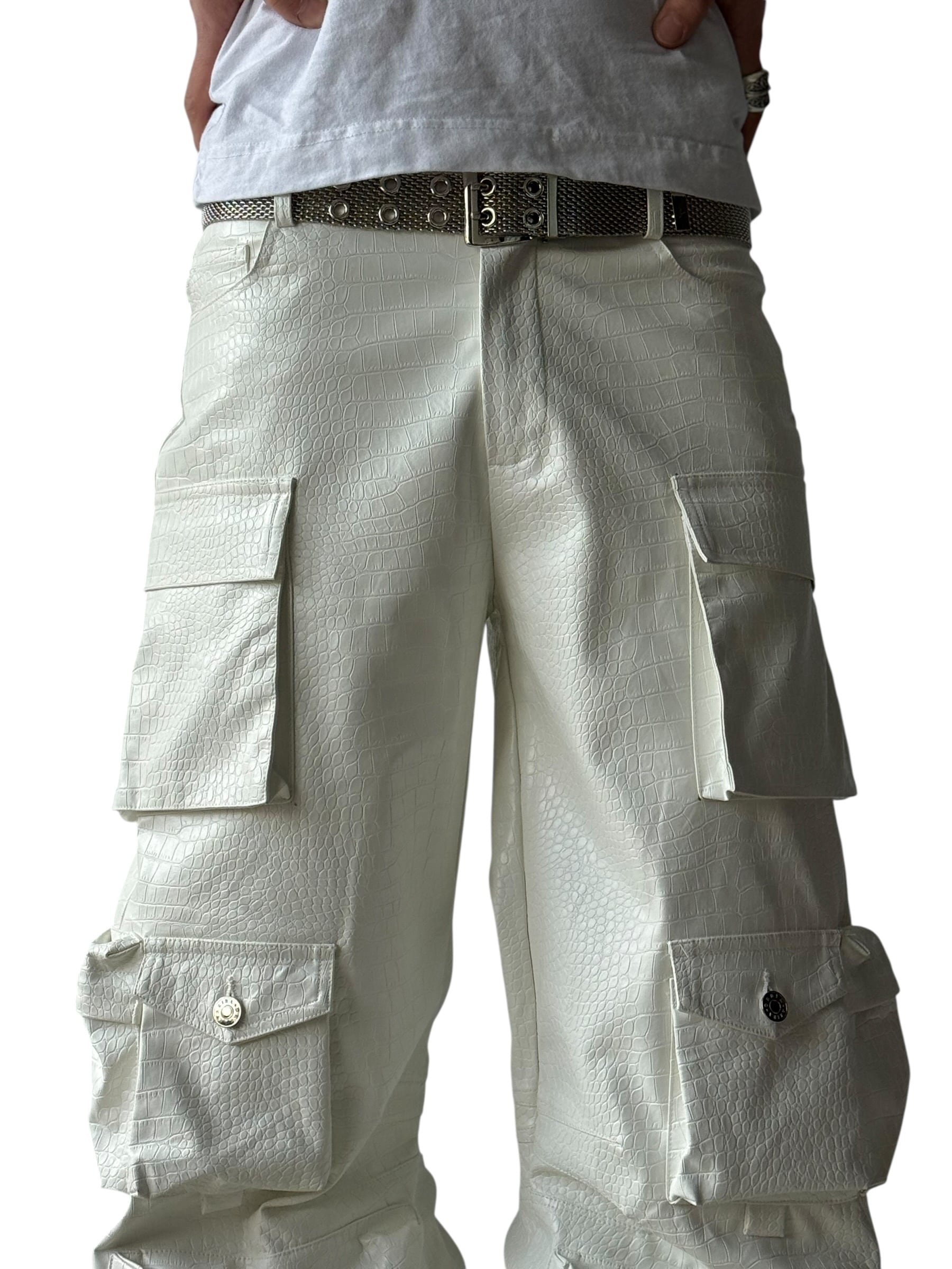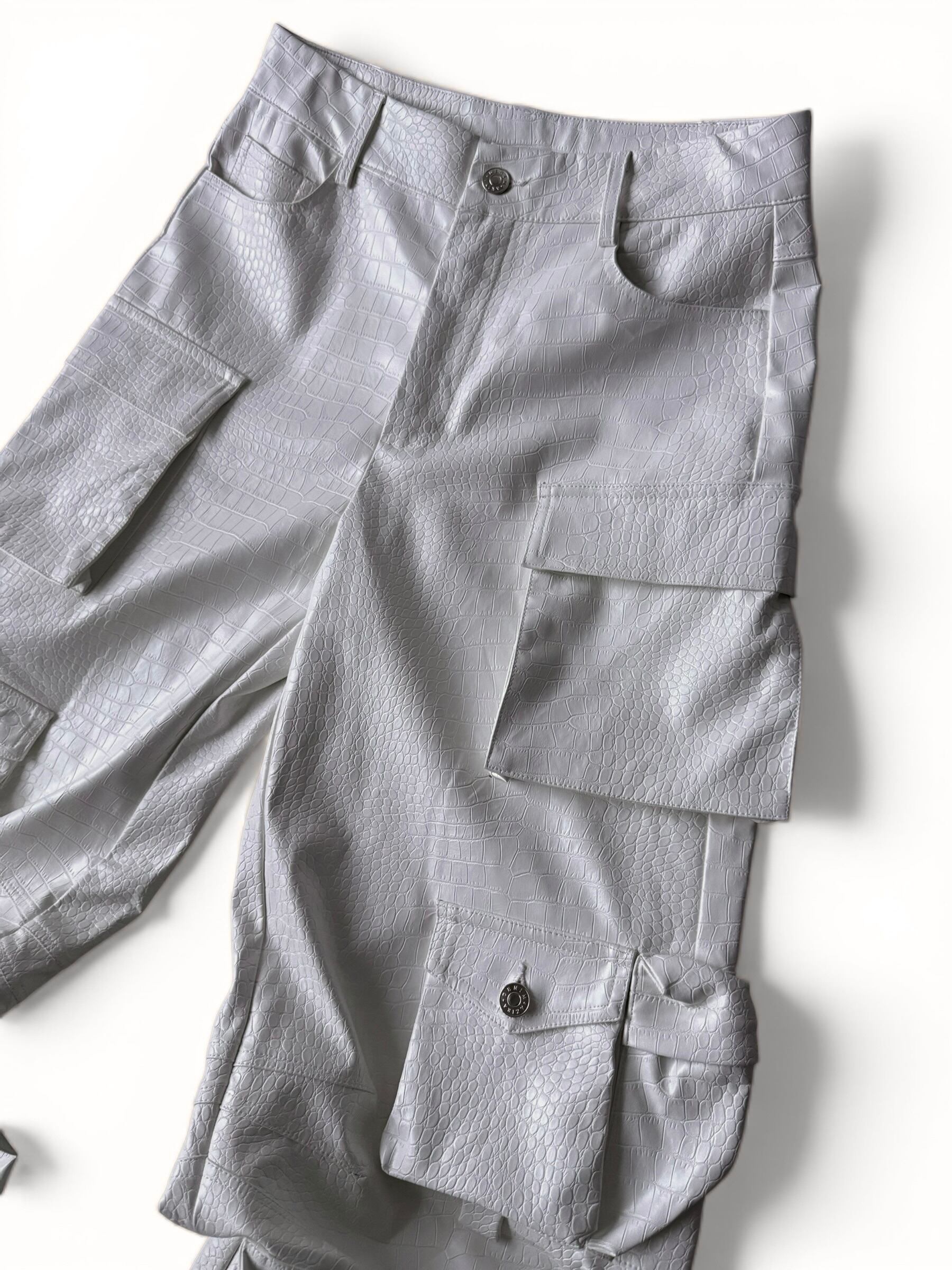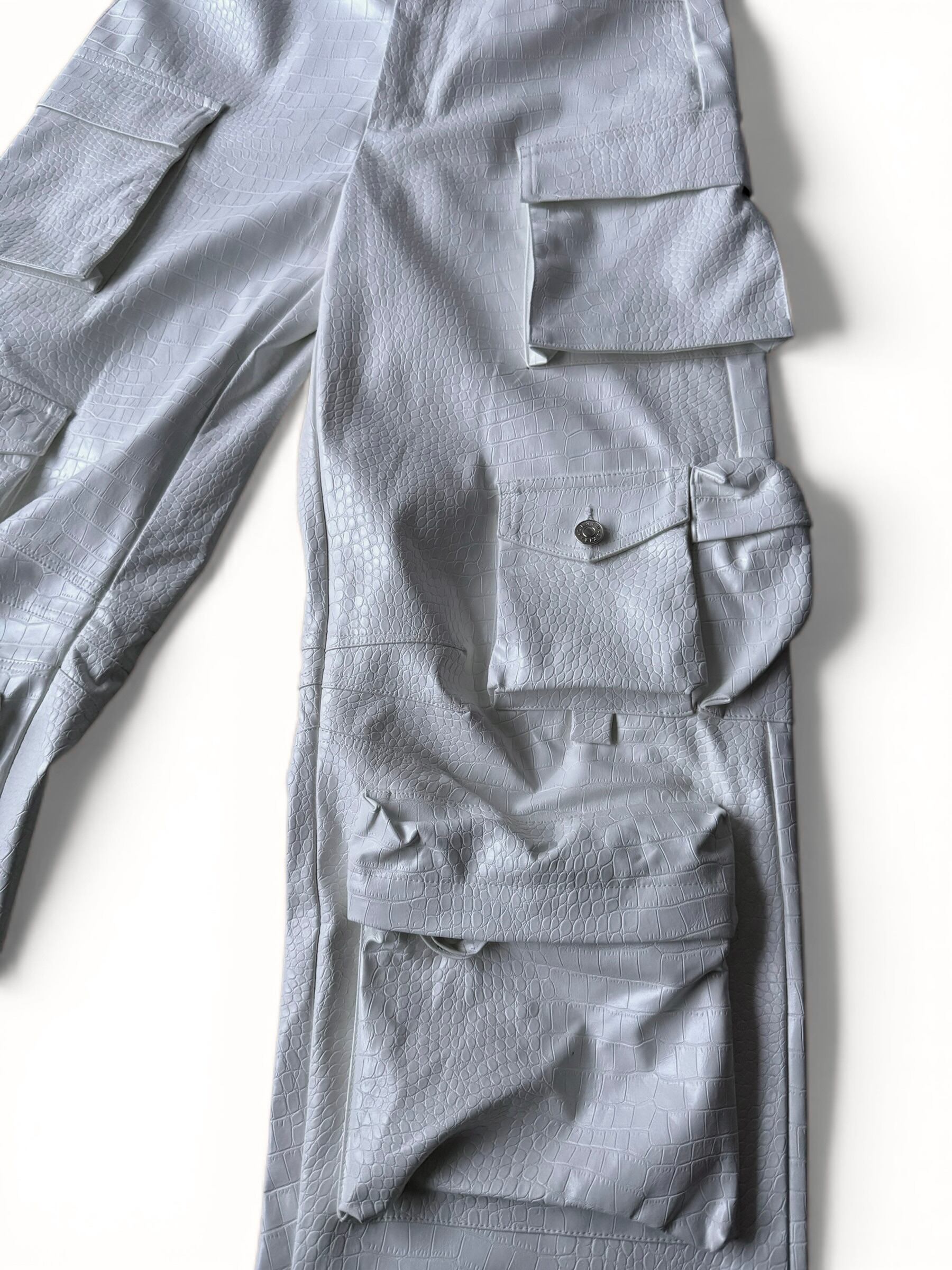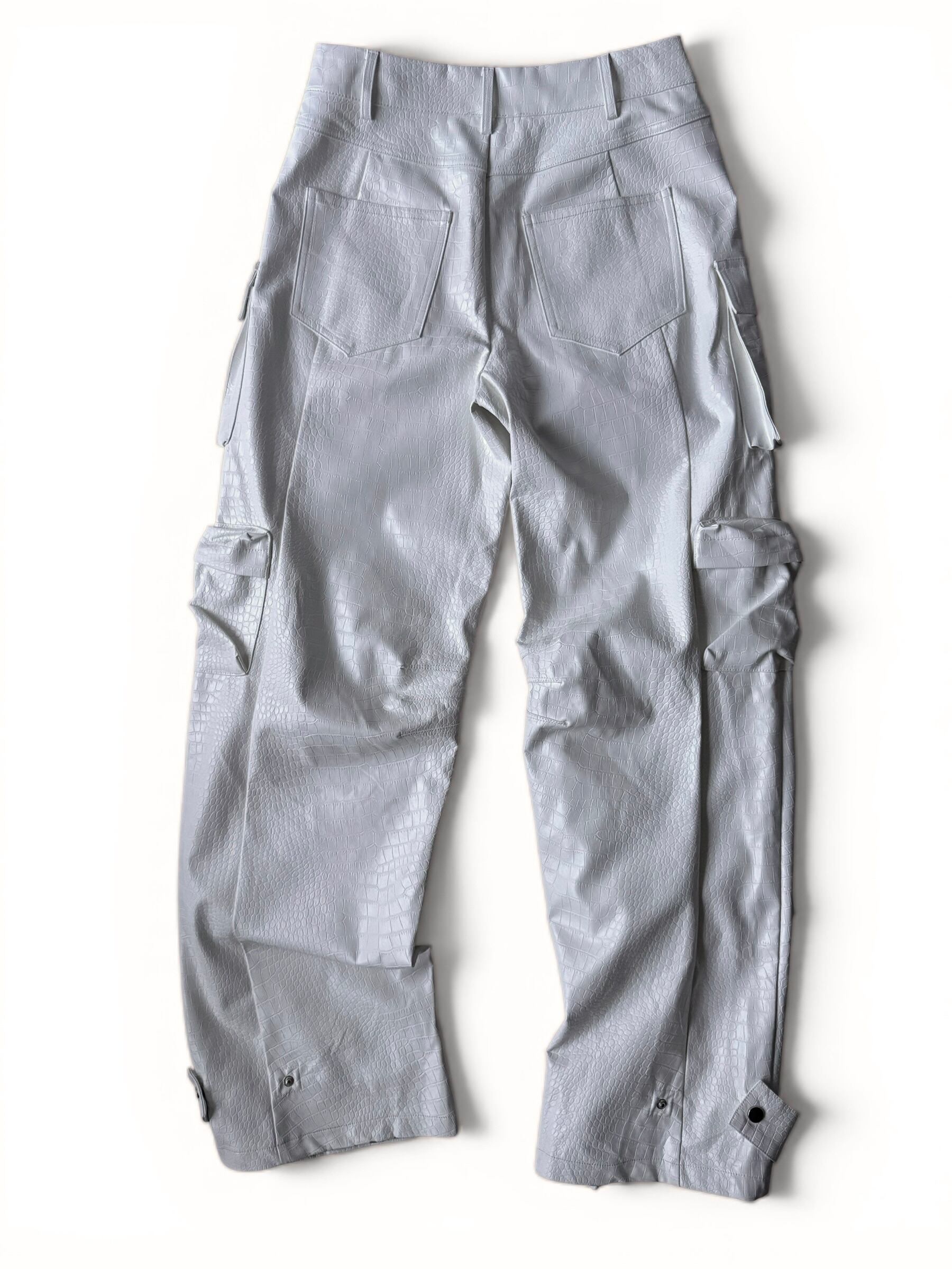 Crocodile print PVC cargo pants