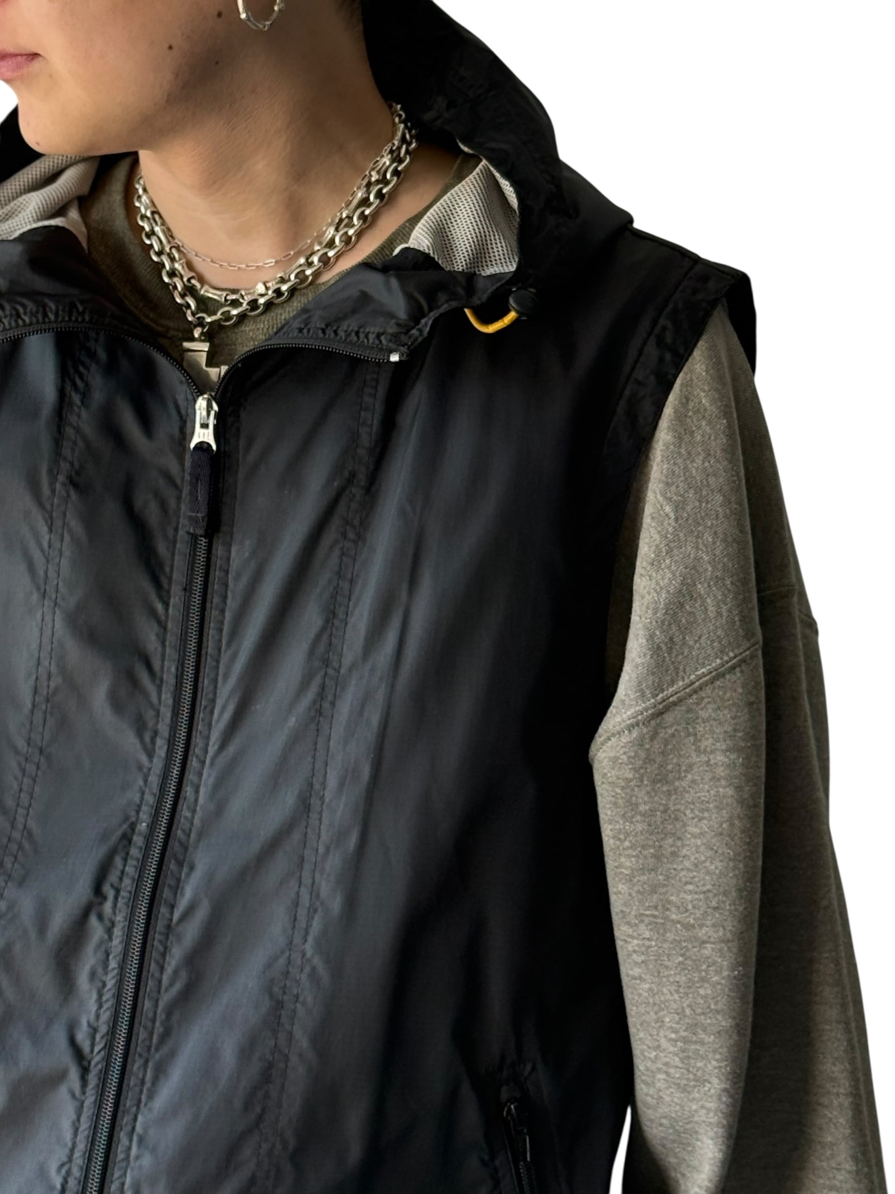 【old GAP】 PU Rip-stop vest with hoodie