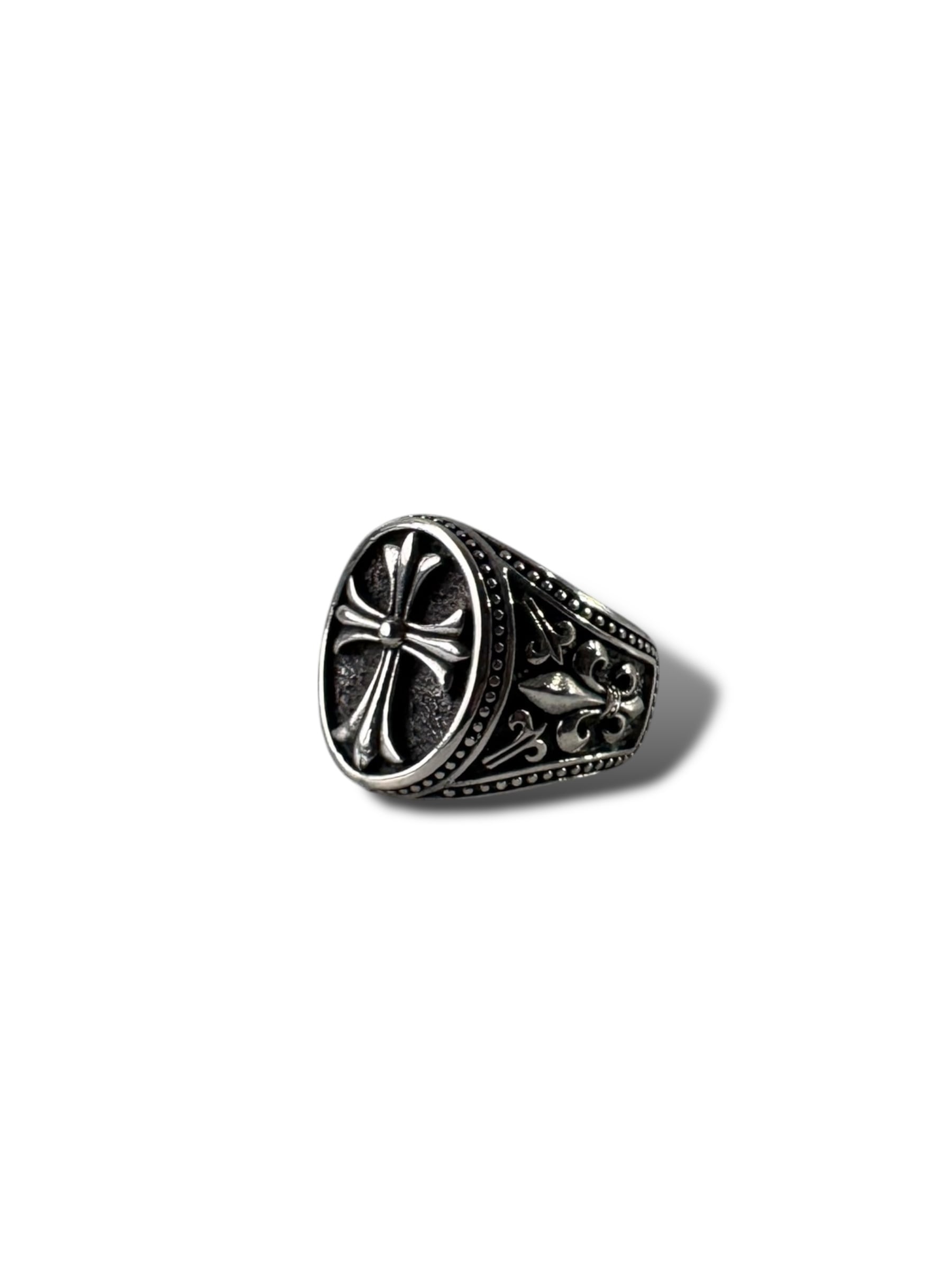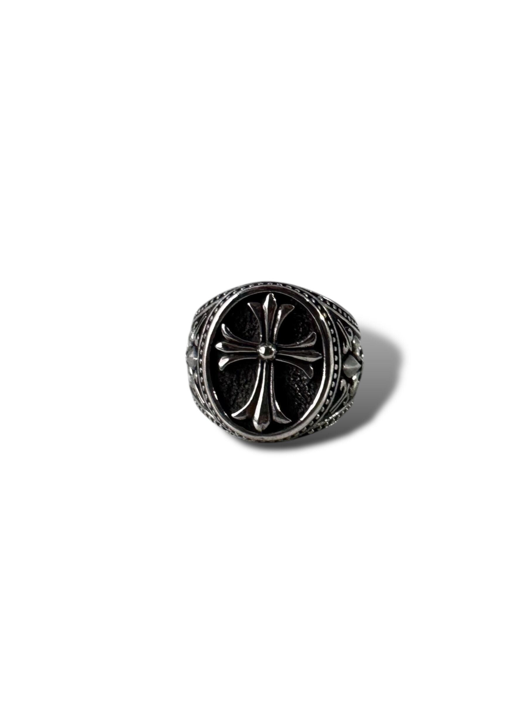 楕円形の台座フォルムが超しっくりくるシグネットタイプでメインにクロス、サイド部分にフレアのモチーフをあしらった文句なしの納得のいくパーフェクトなデザイン‼️⭕️