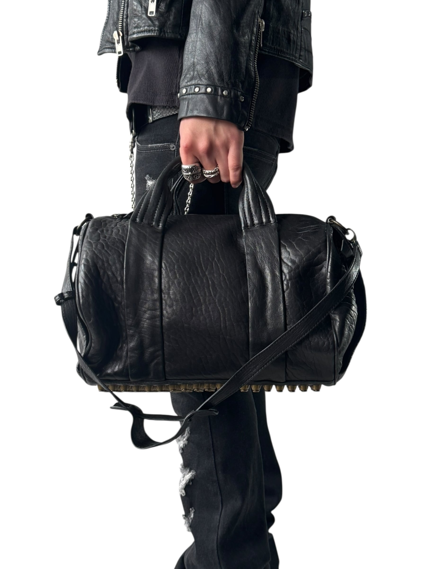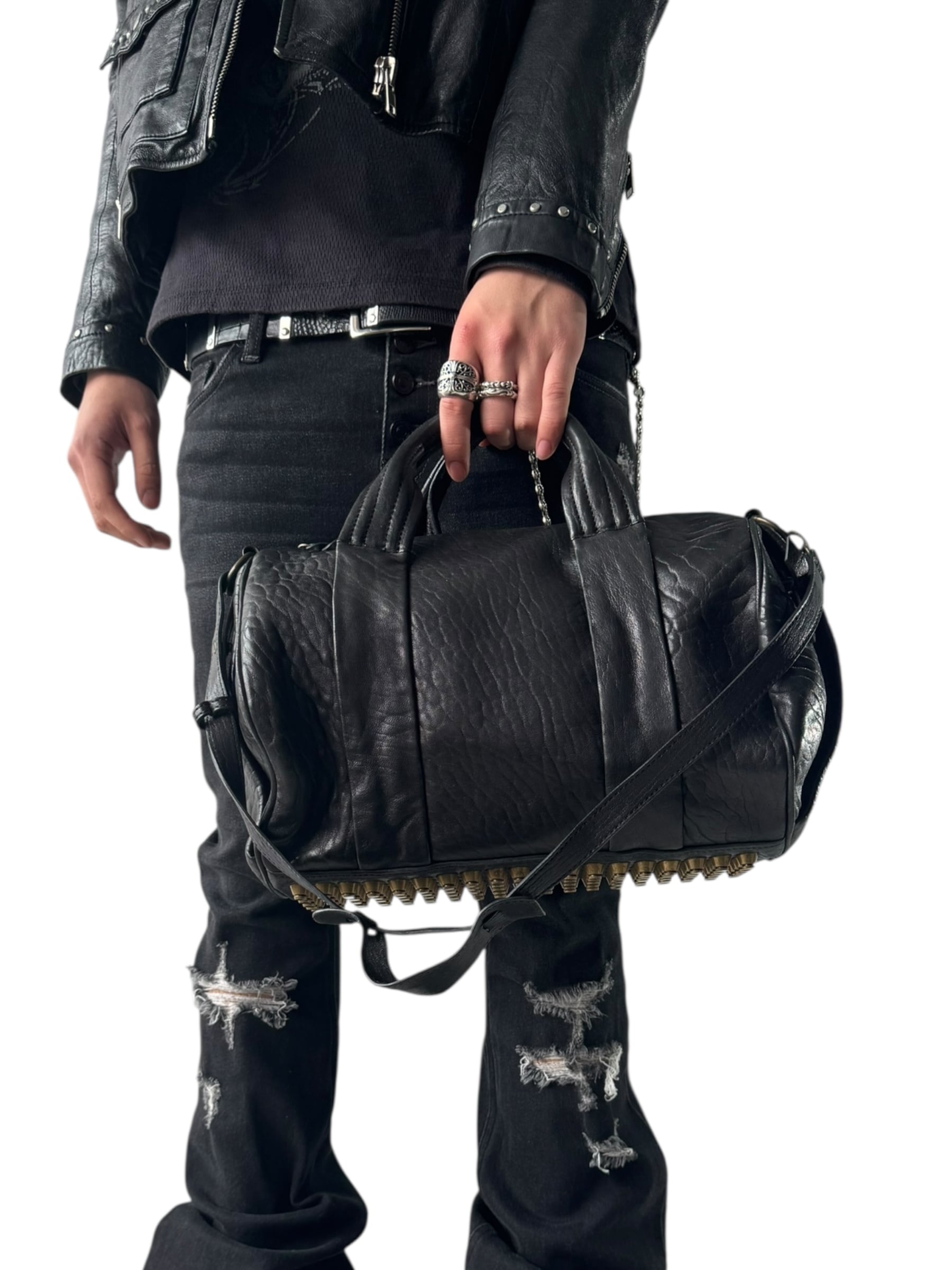 ♾design used♾ studs design shoulder leather hand bag