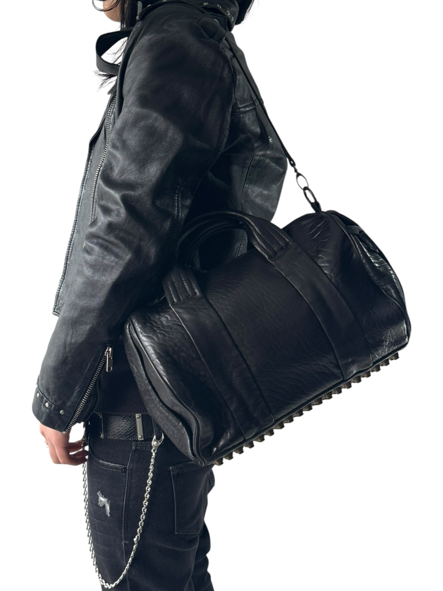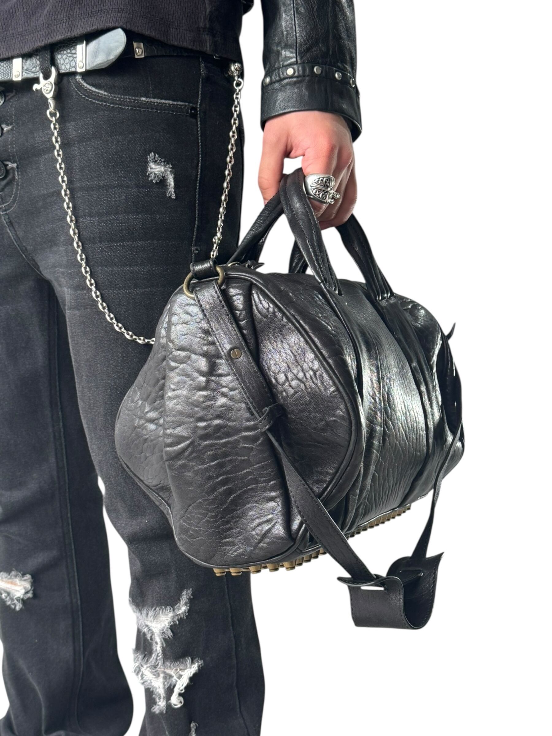 studs design shoulder leather hand bag
